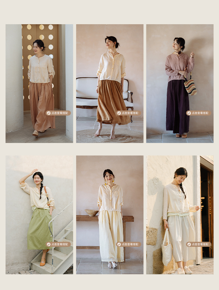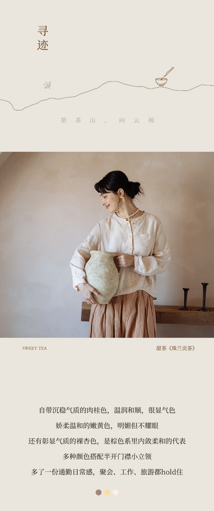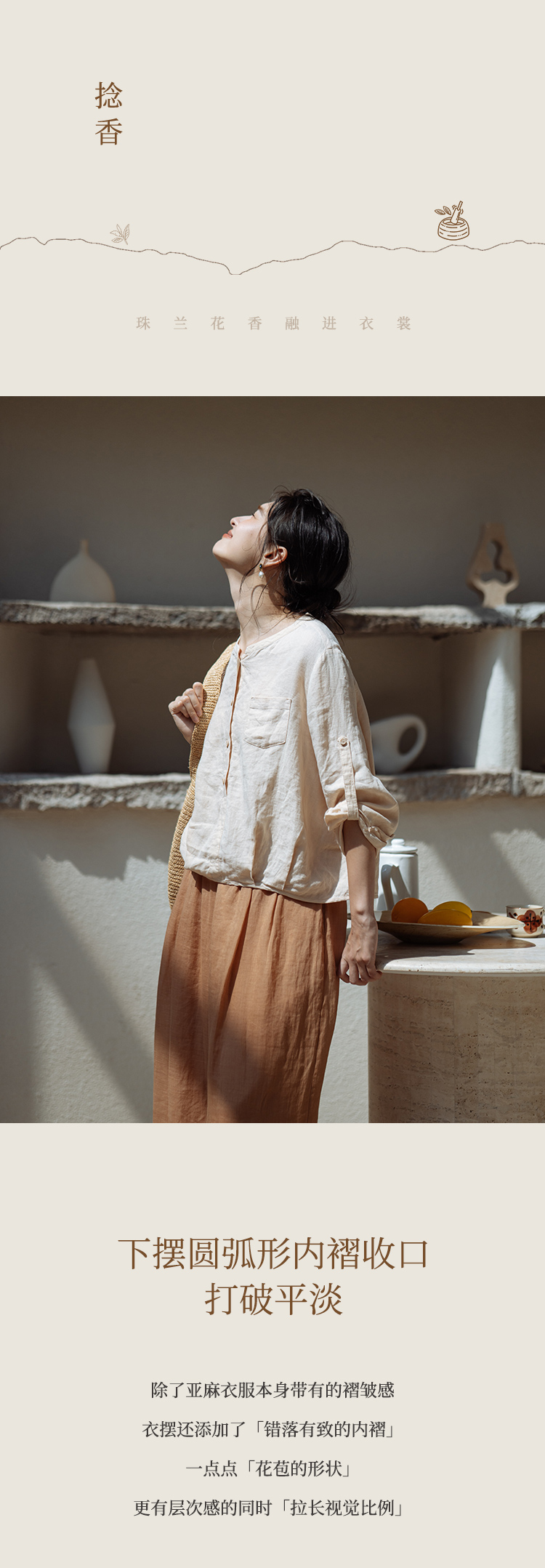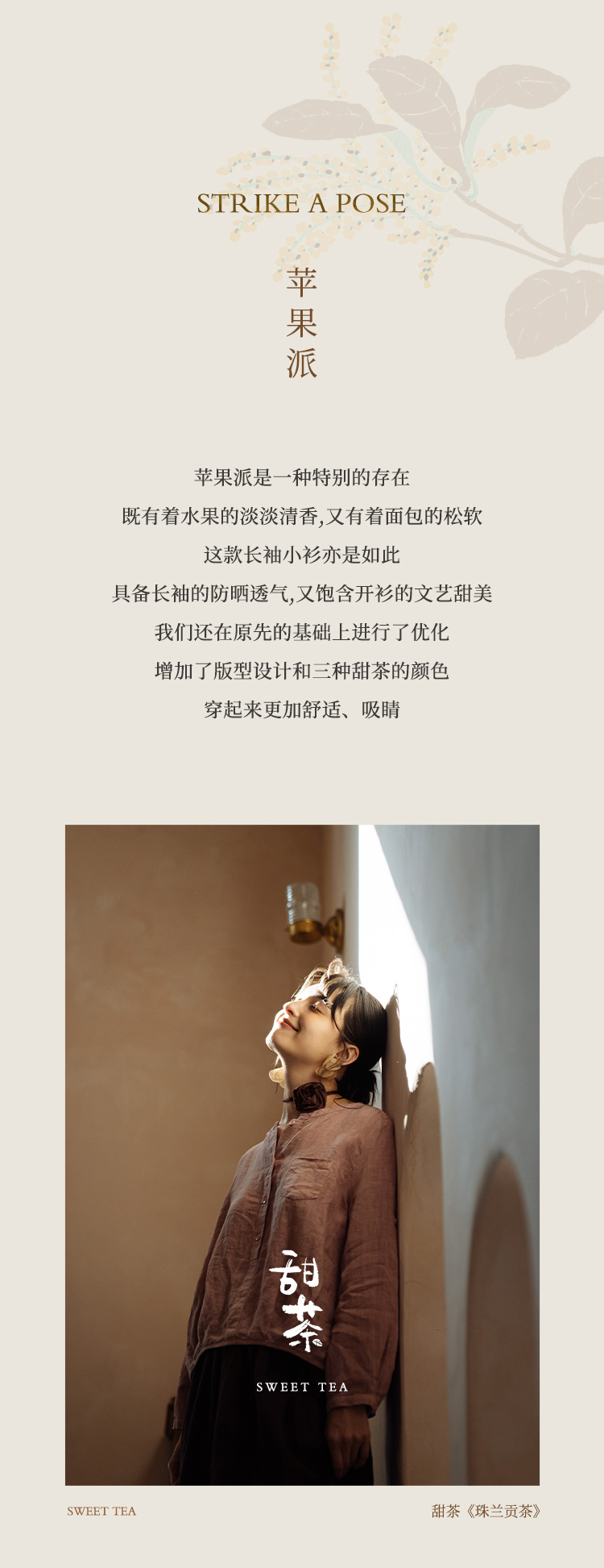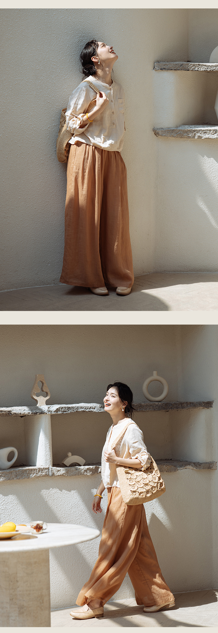 绽放632朵【甜茶系列】肉桂色干洗亚麻夏季长袖衬衣小衫