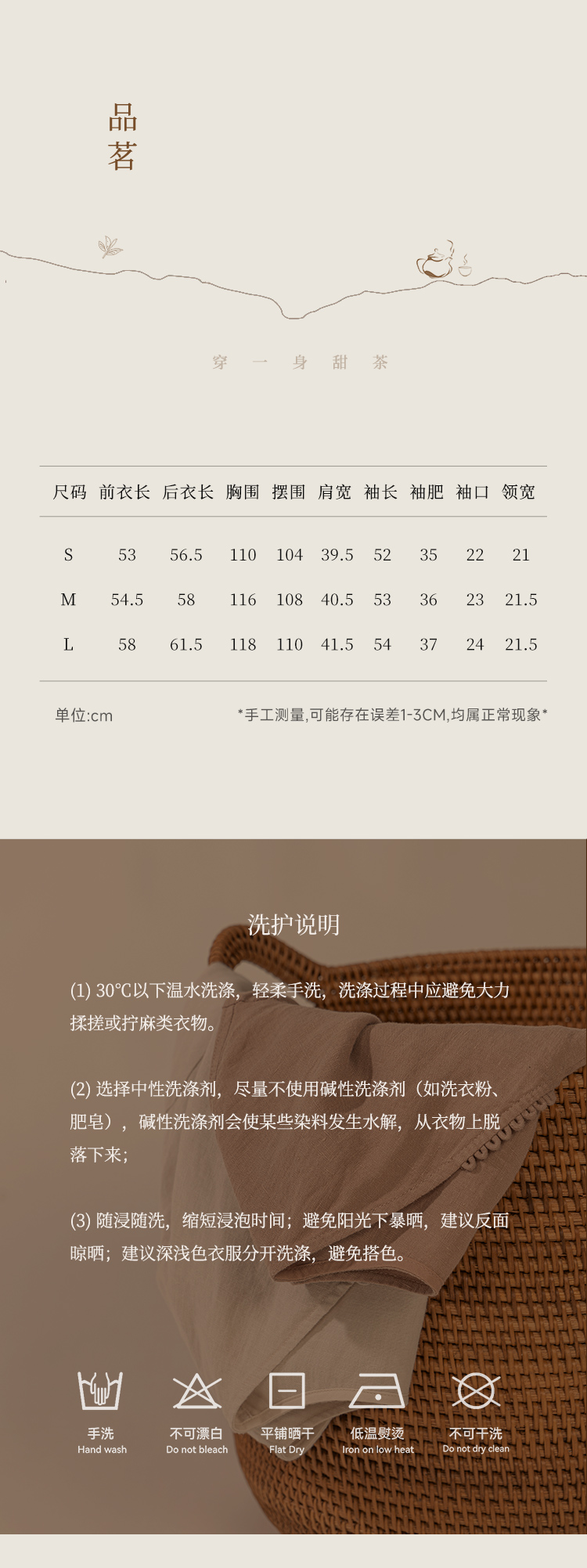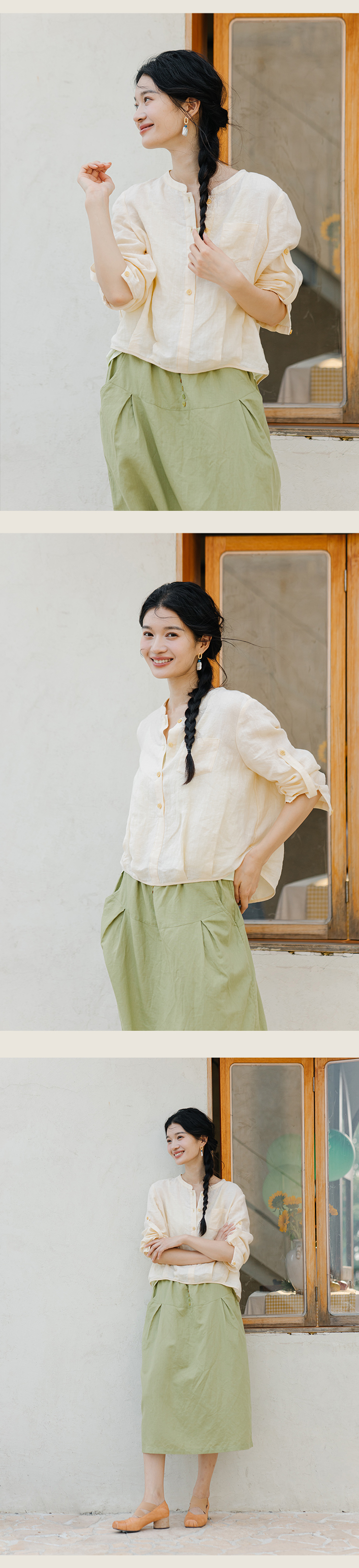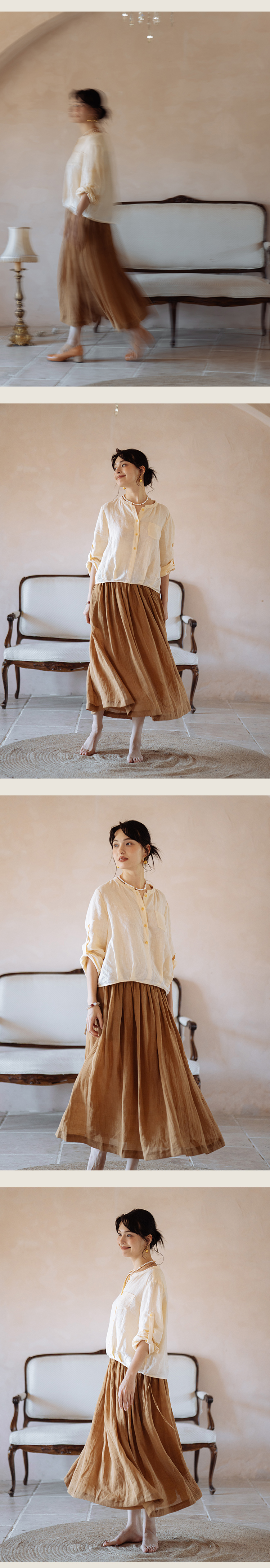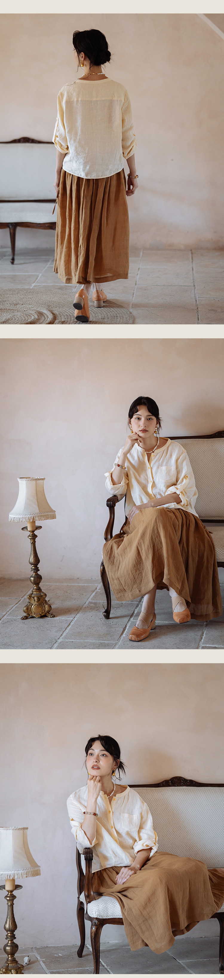 绽放632朵【甜茶系列】肉桂色干洗亚麻夏季长袖衬衣小衫