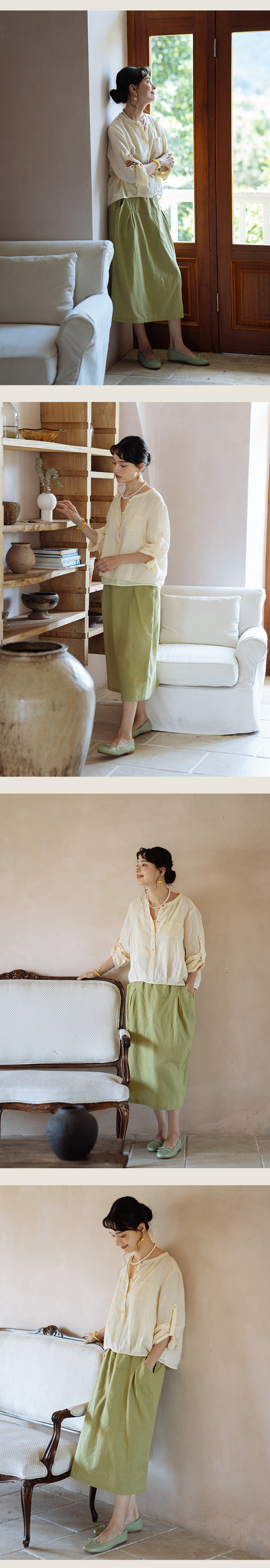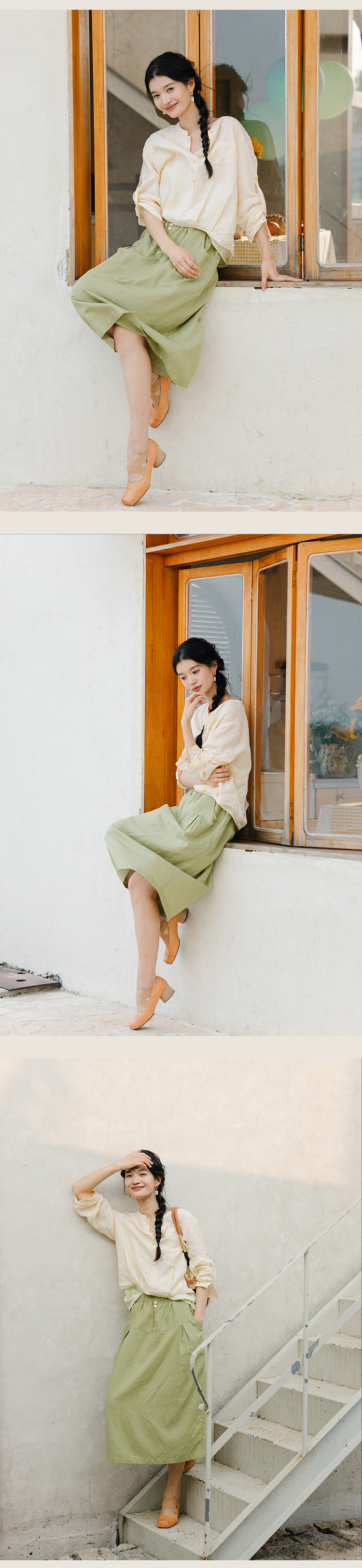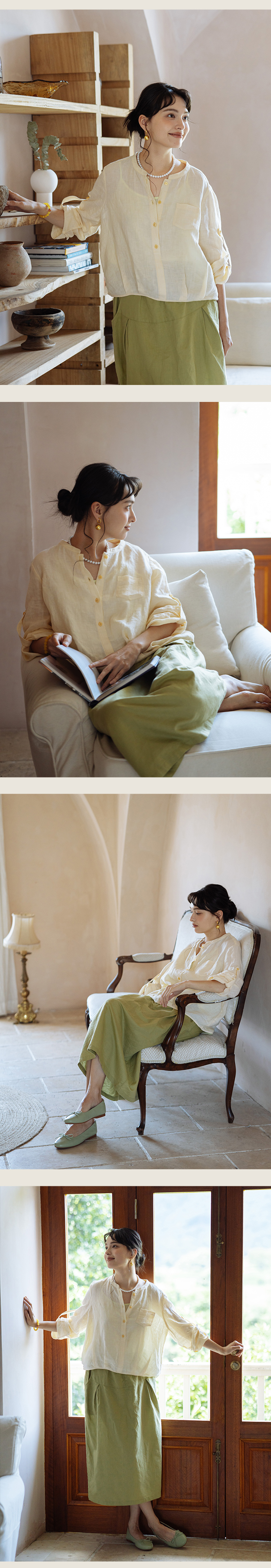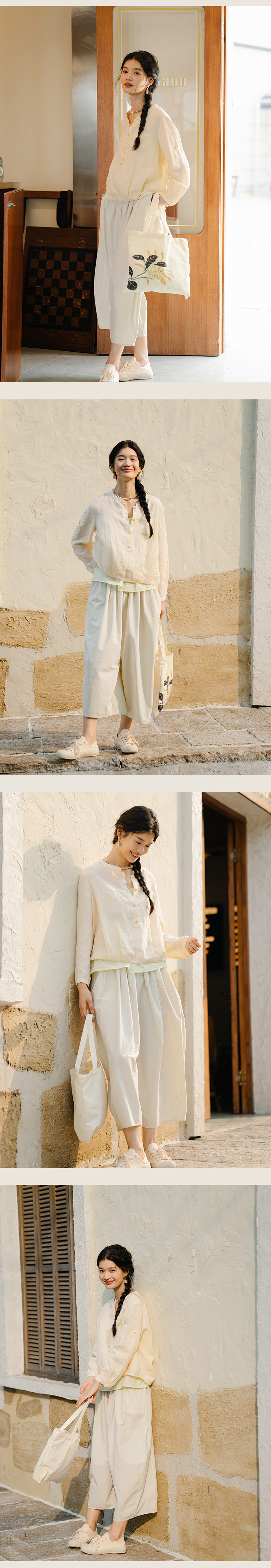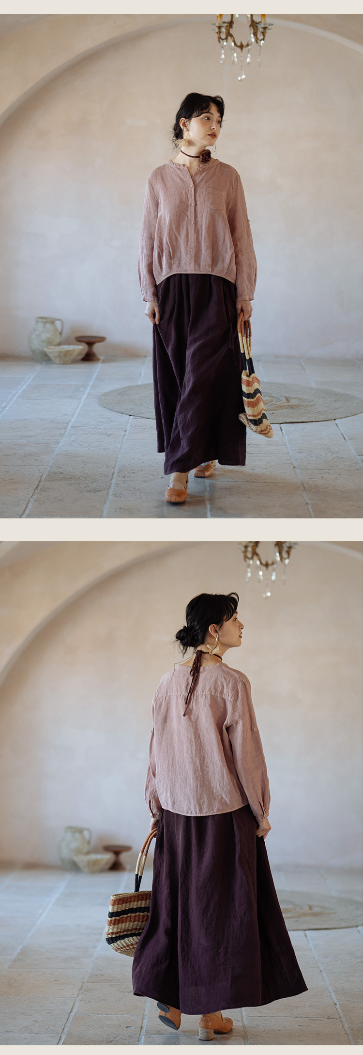 绽放632朵【甜茶系列】肉桂色干洗亚麻夏季长袖衬衣小衫