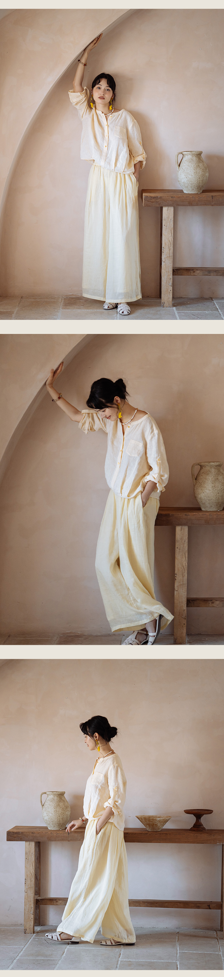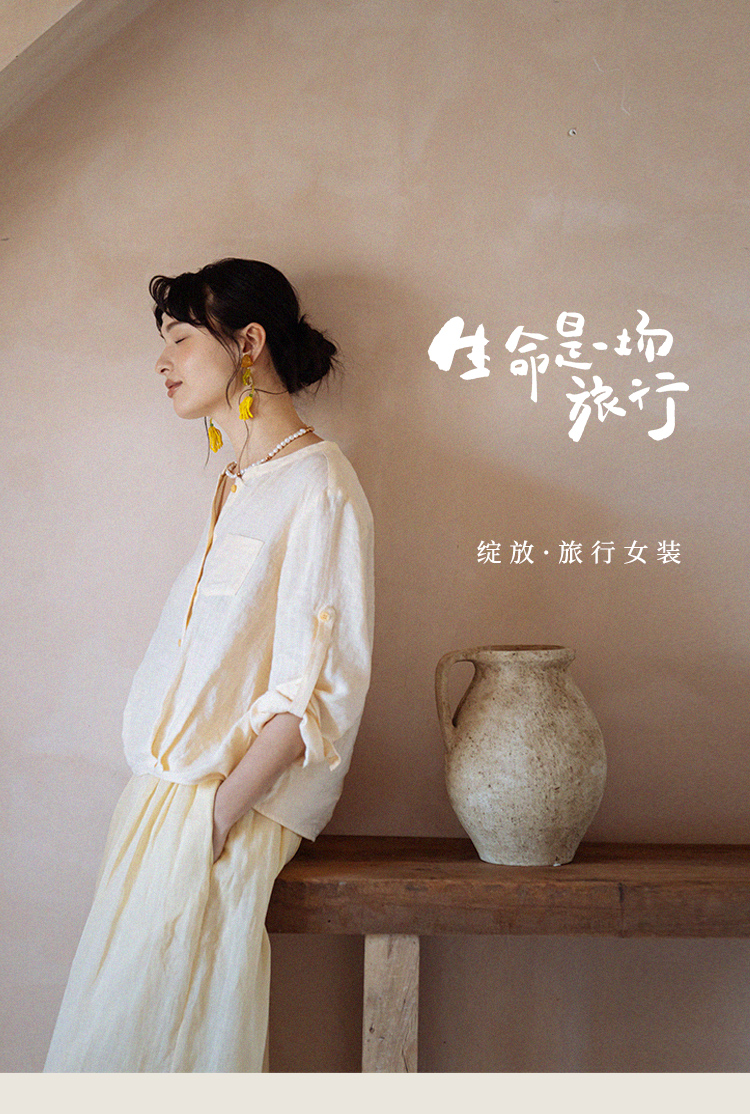 以天然亚麻为载体,融合热烈色彩与自在剪裁为身在城市、心怀远方的女性提供兼具美学与舒适的旅行着装