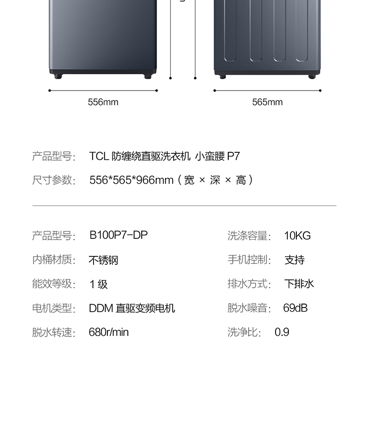 【TCL洗衣机】TCL 10公斤防缠绕直驱波轮洗衣机 B100P7-DP
