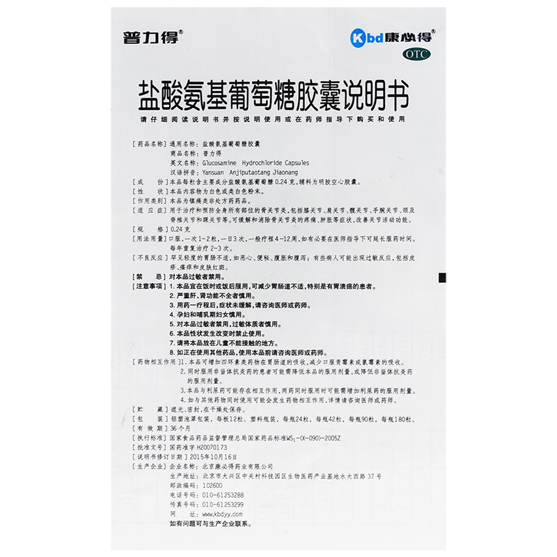 康必得 普力得 盐酸氨基葡萄糖胶囊 24粒/盒 关节炎疼痛 骨关节炎