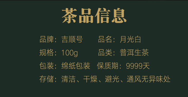 【非卖品勿拍】吉顺号云南月光白茶饼100g/饼