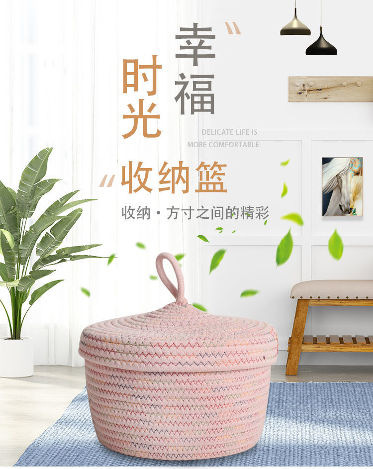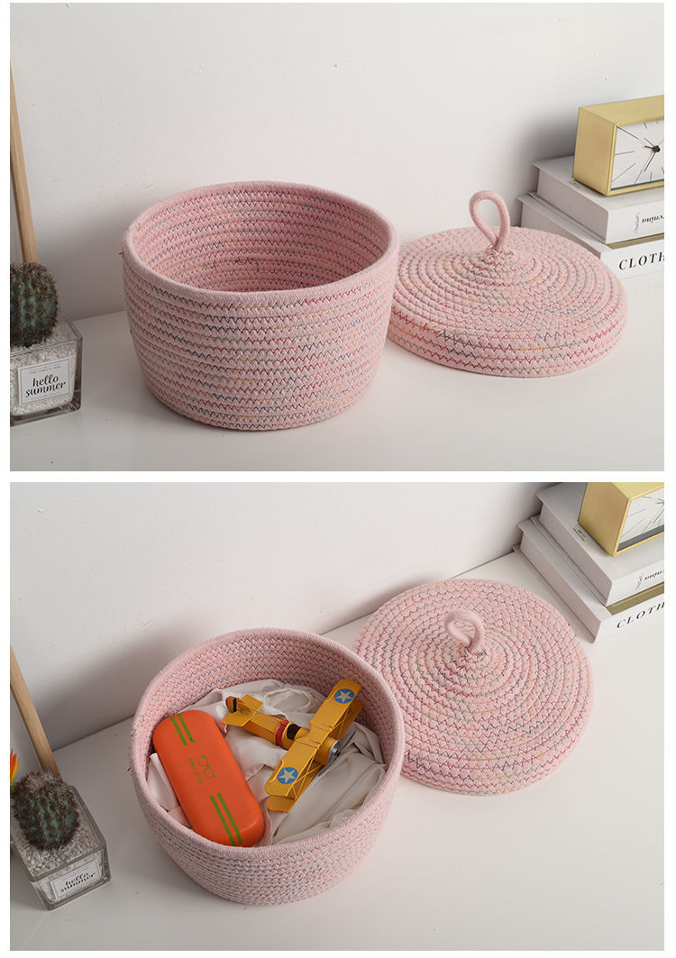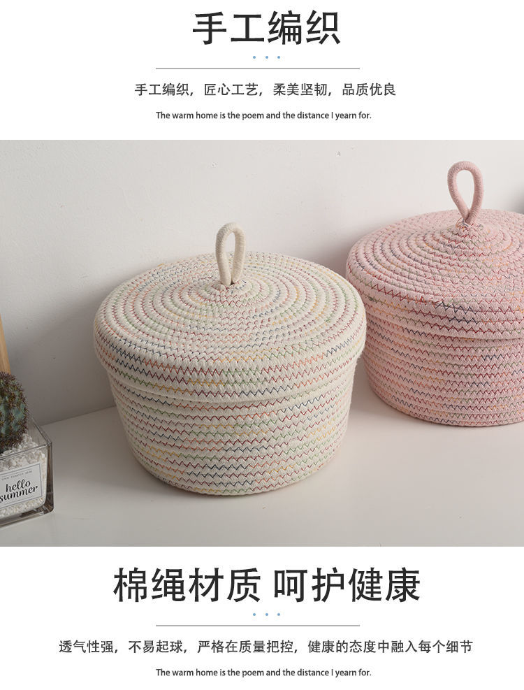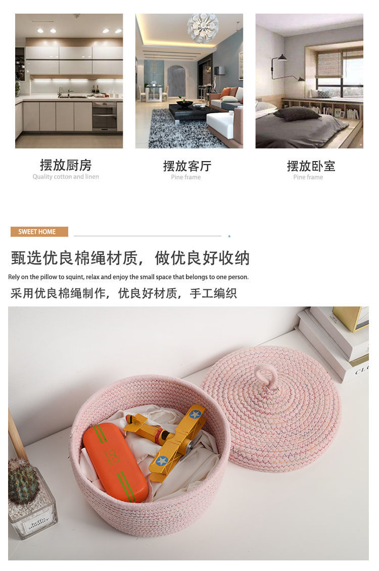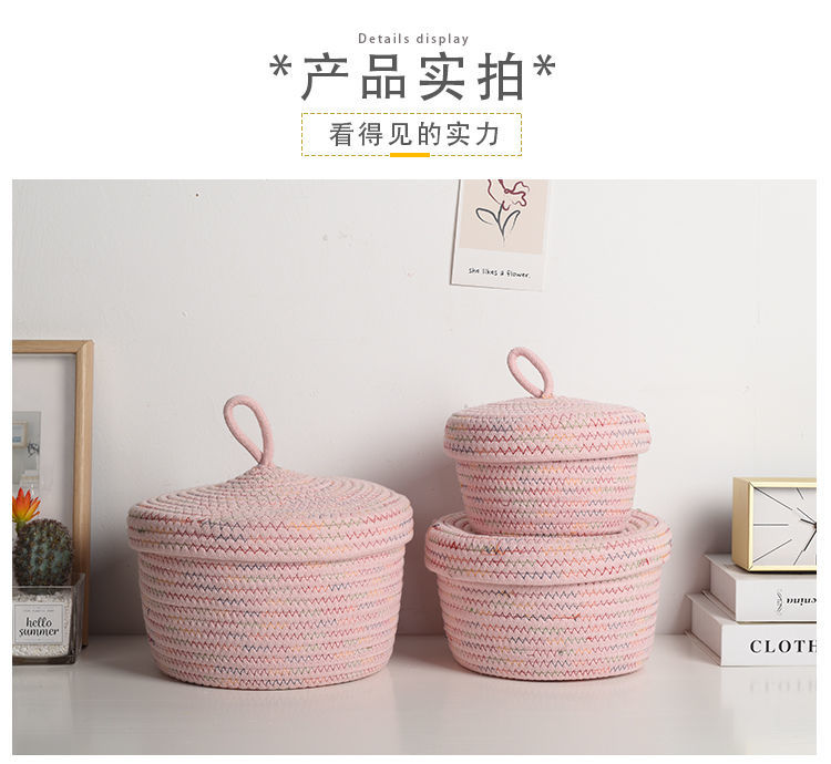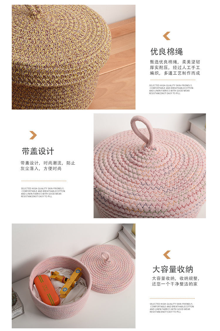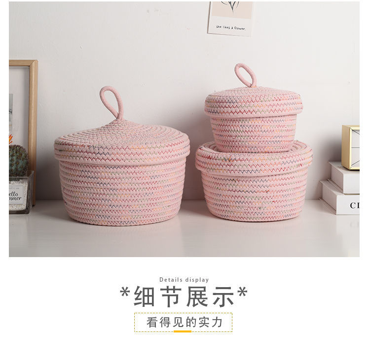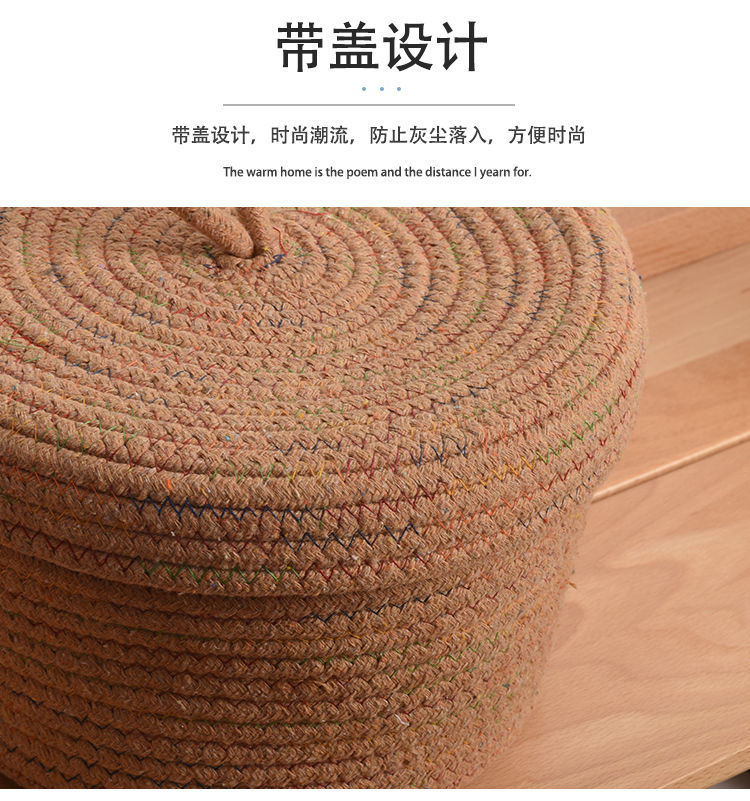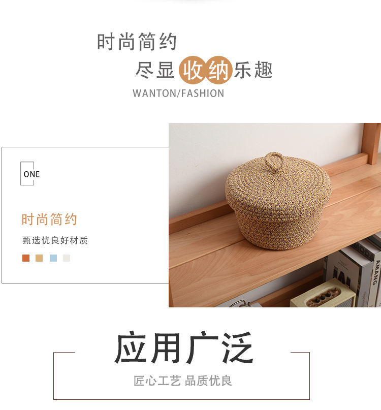 手工编织桌面收纳篮遥控器化妆品钥匙带盖收纳筐环保零食置物篮,