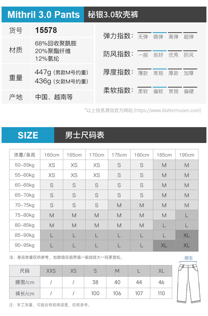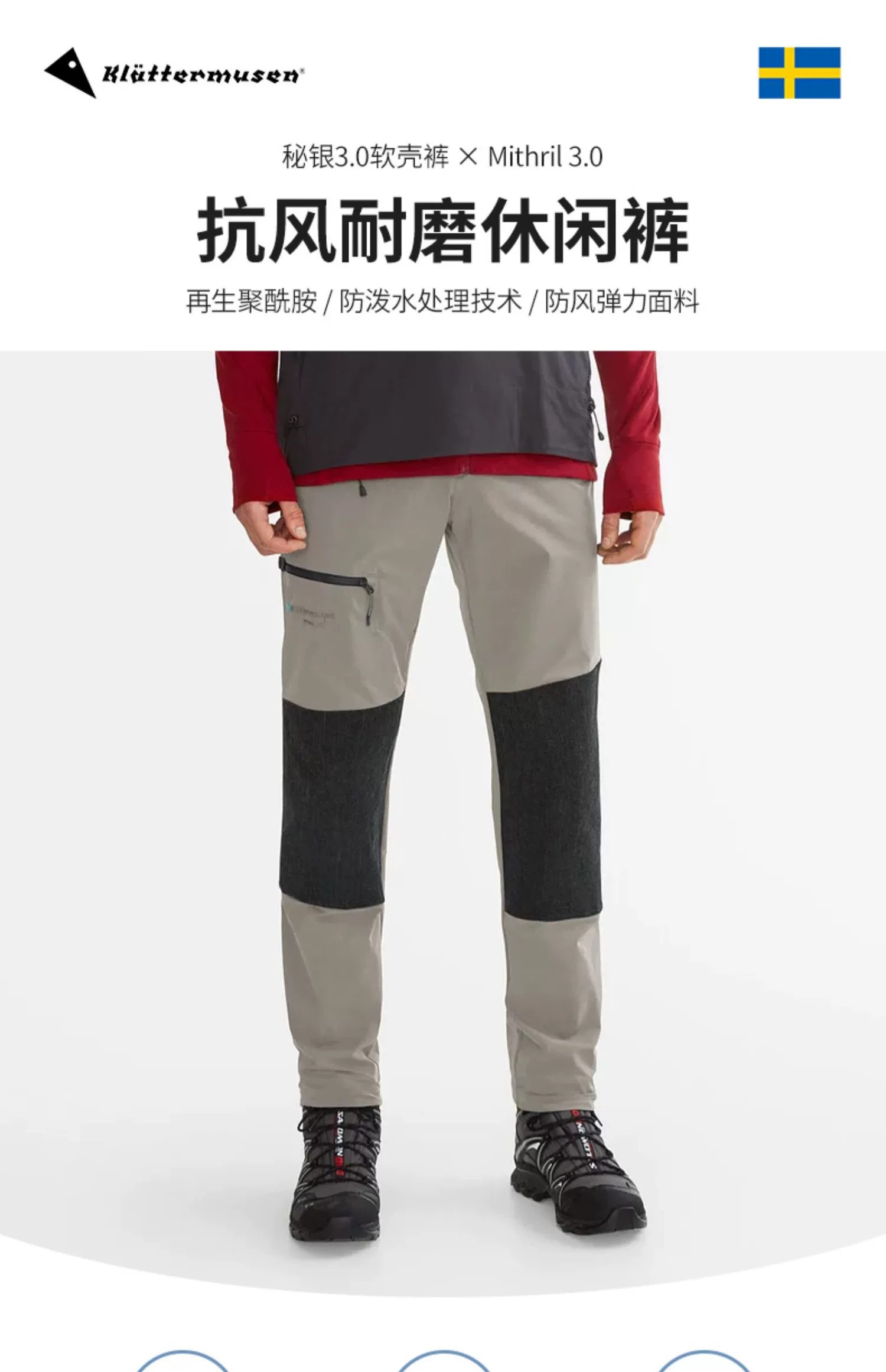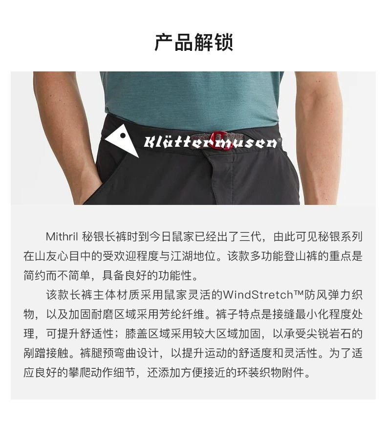 KLATTERMUSEN/攀山鼠户外攀岩秘银软壳长裤抗风耐磨休闲裤15578M
