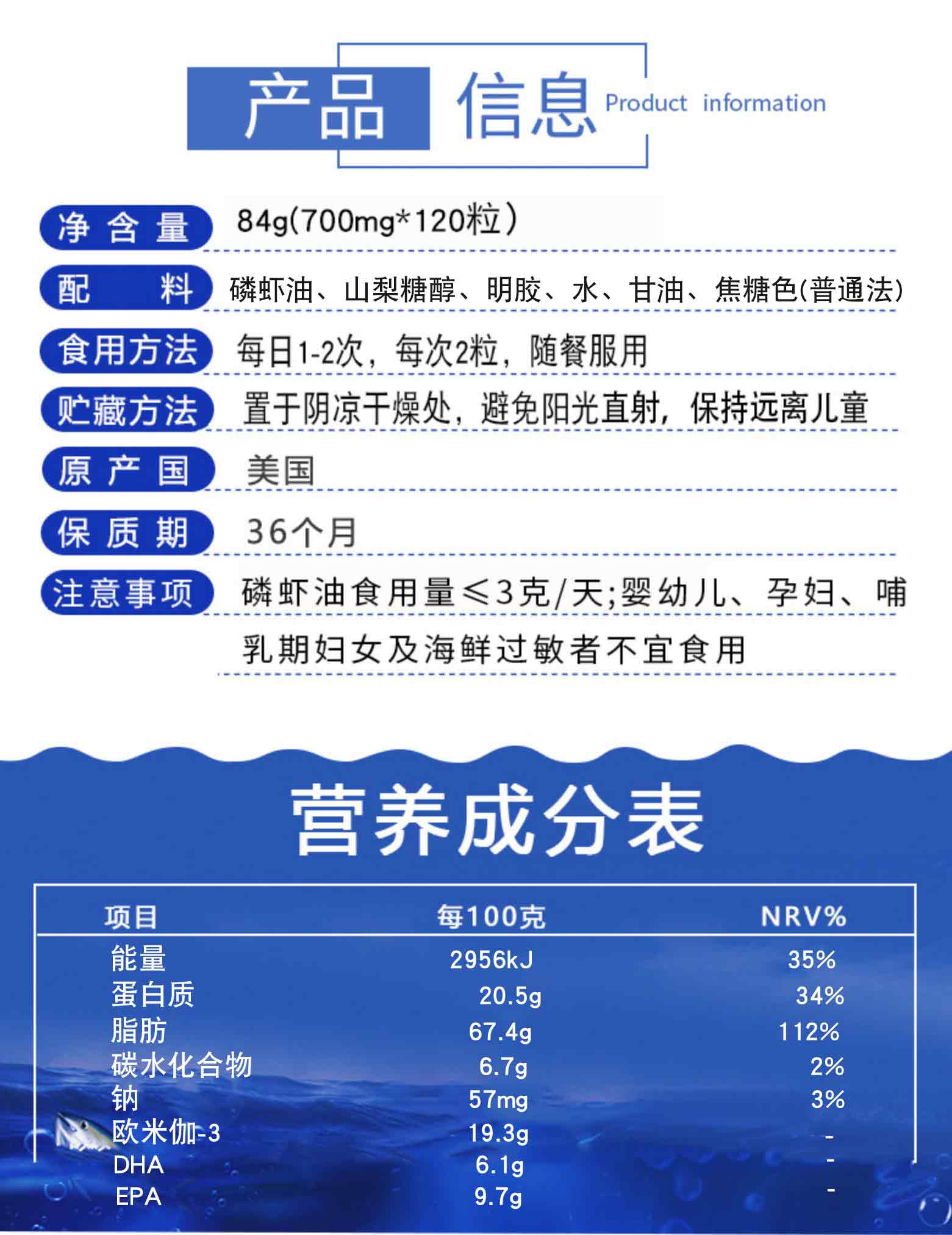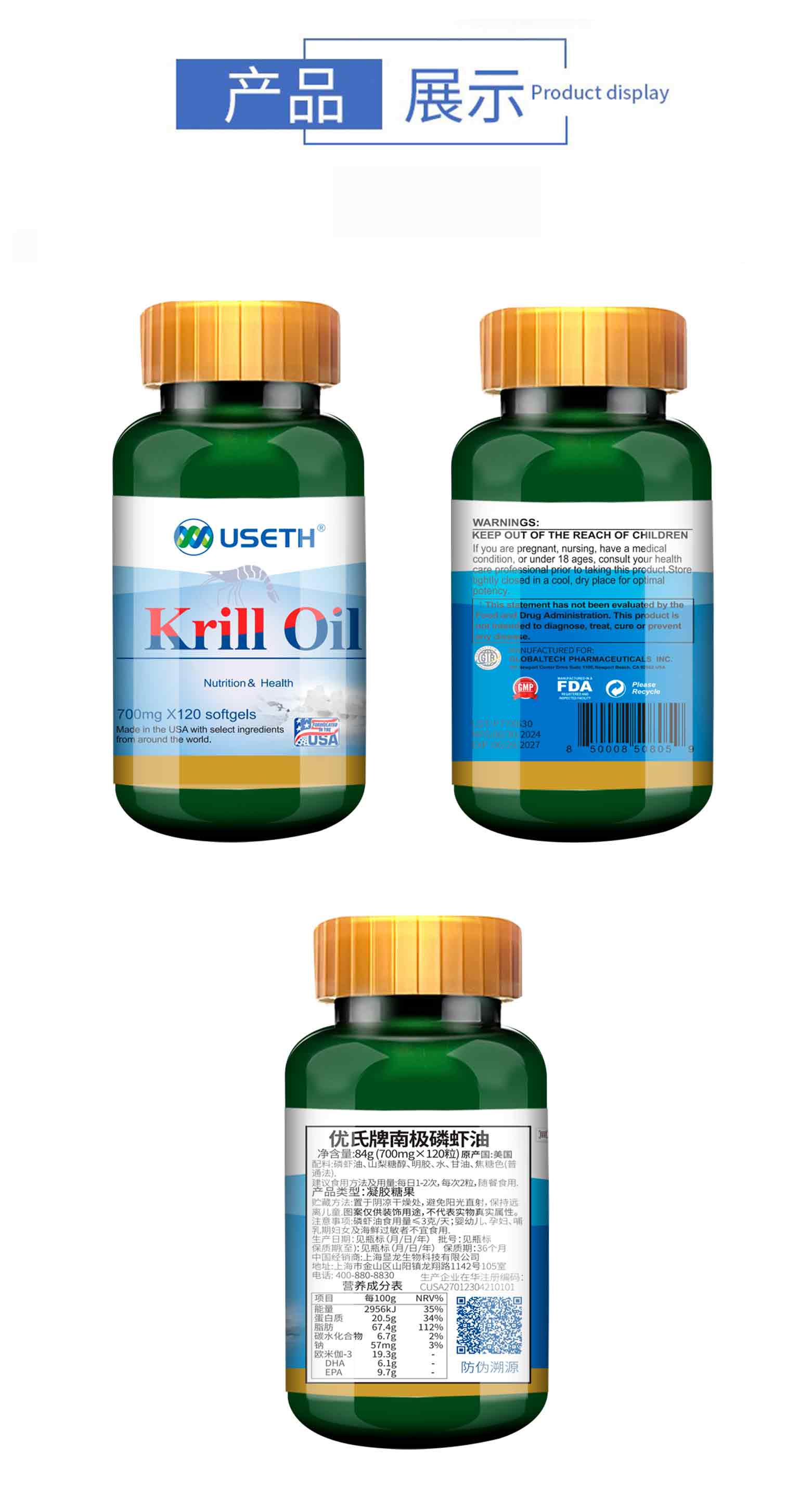 优氏 美国原装进口 南极磷虾油Omega3中老年高端磷虾油120粒/瓶