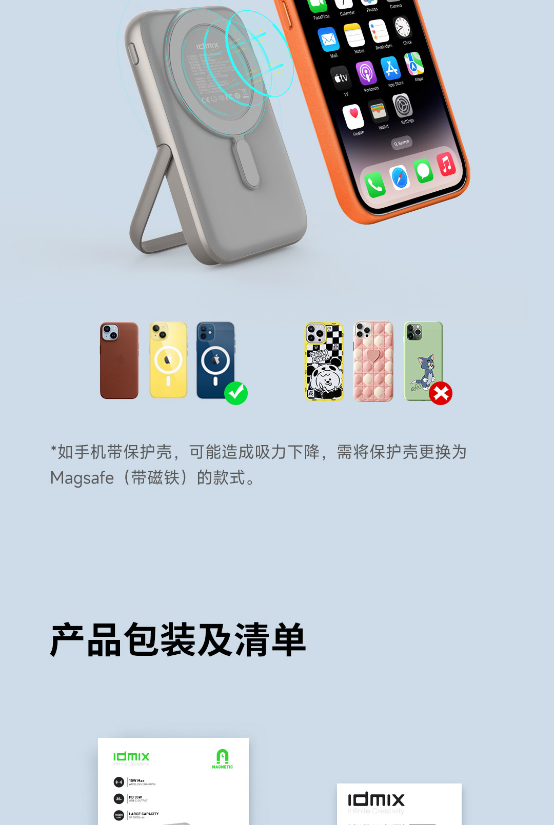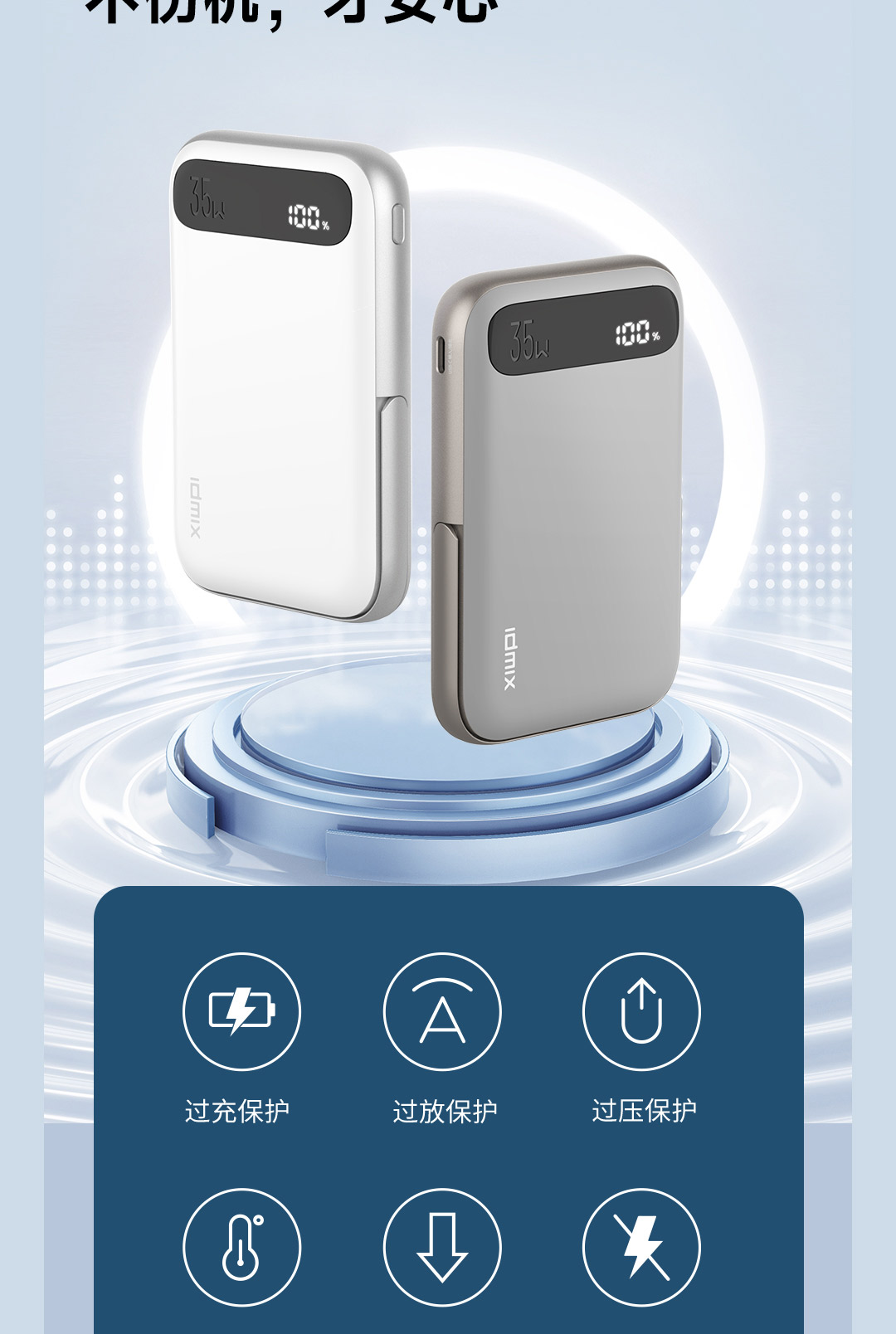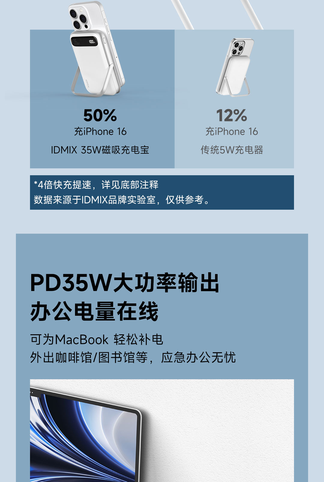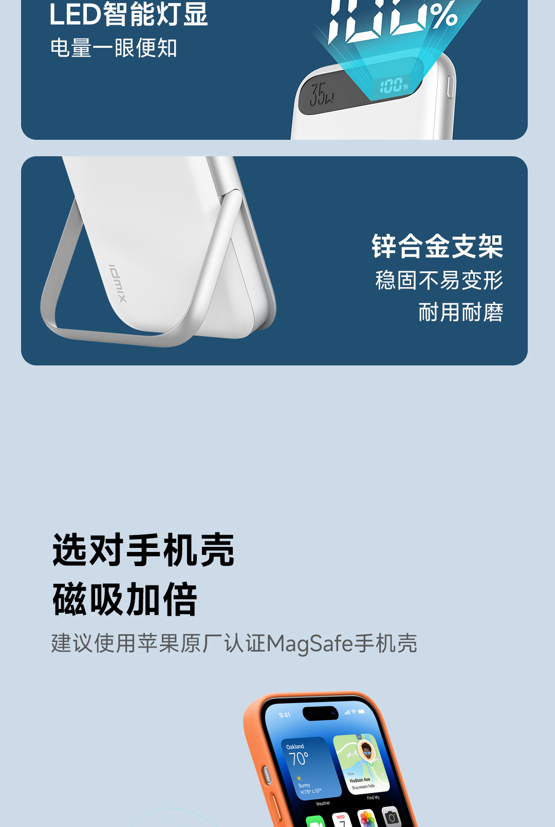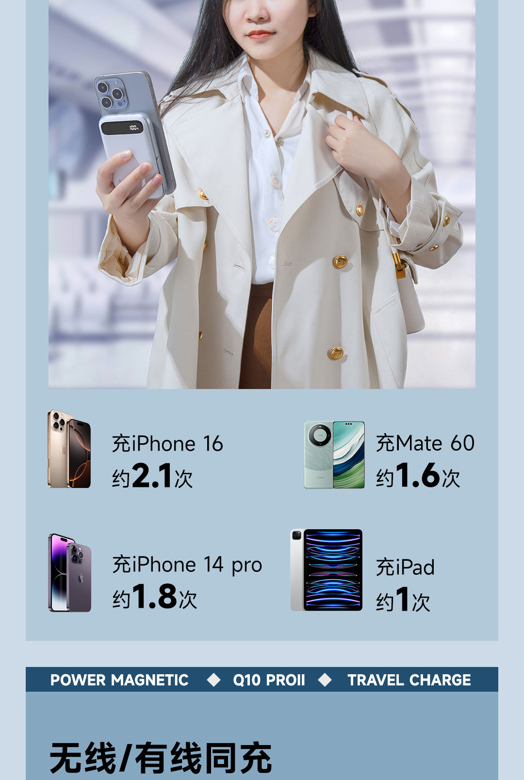 本详情页已于2025年5月28日起更新为“idmix Q10 PRO2 磁吸充电宝”第二代产品的详情介绍内容。idmix Q10 一代产品仅剩下银白色可以购买。下单时情注意选择正确规格。