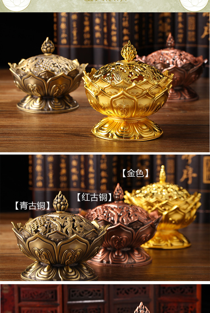 【装饰品】家居摆件莲花薰香炉创意礼品装饰工艺品合金香炉