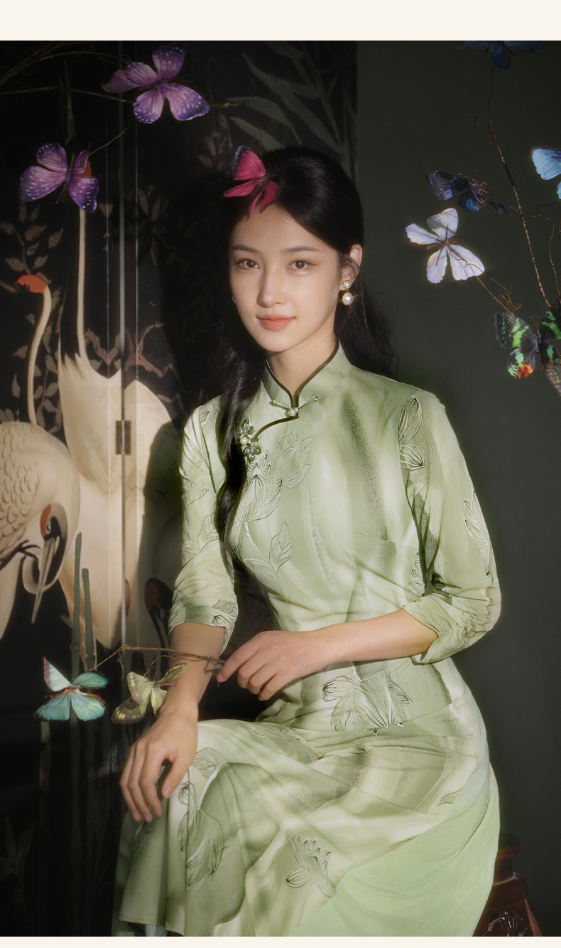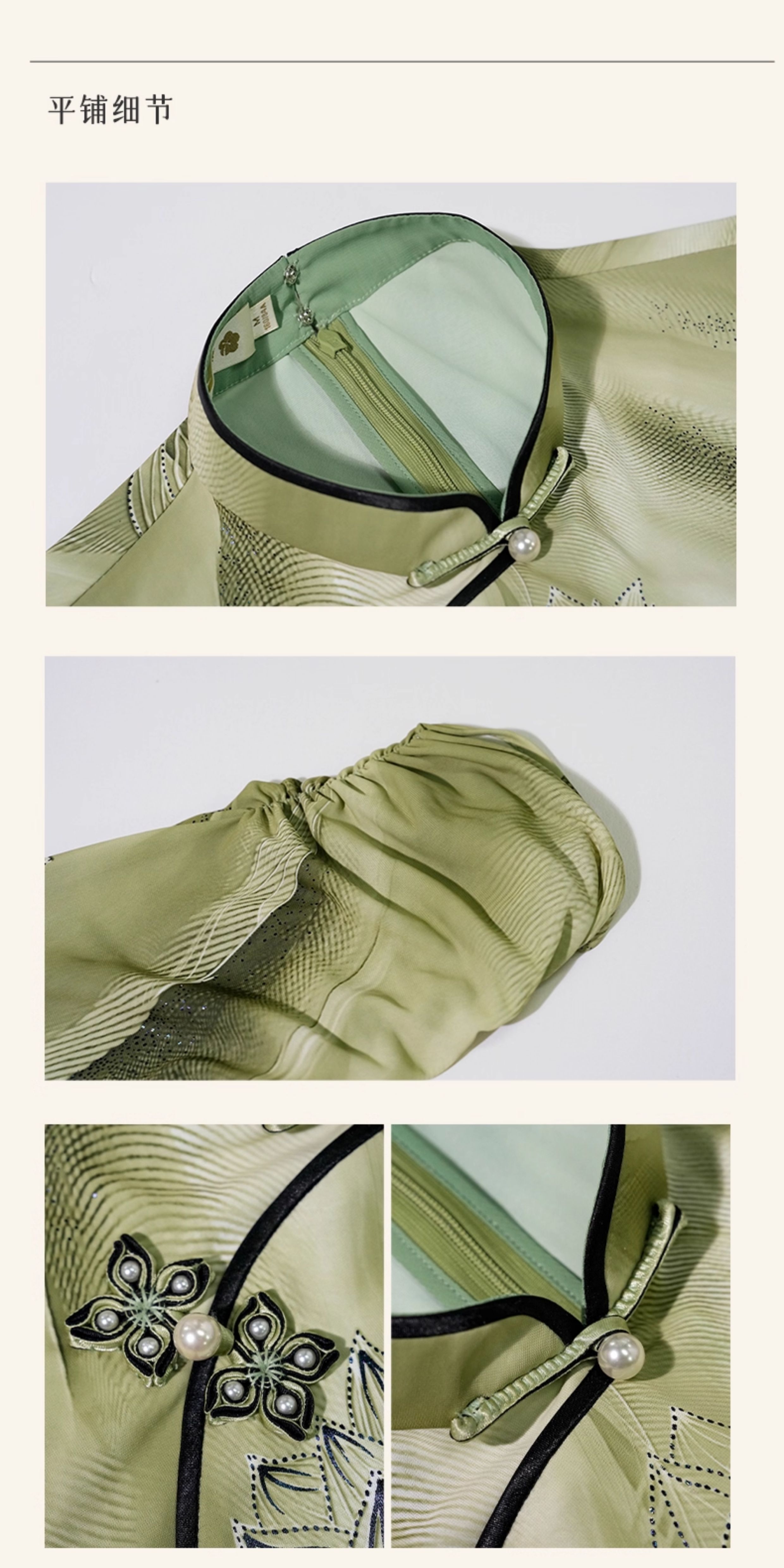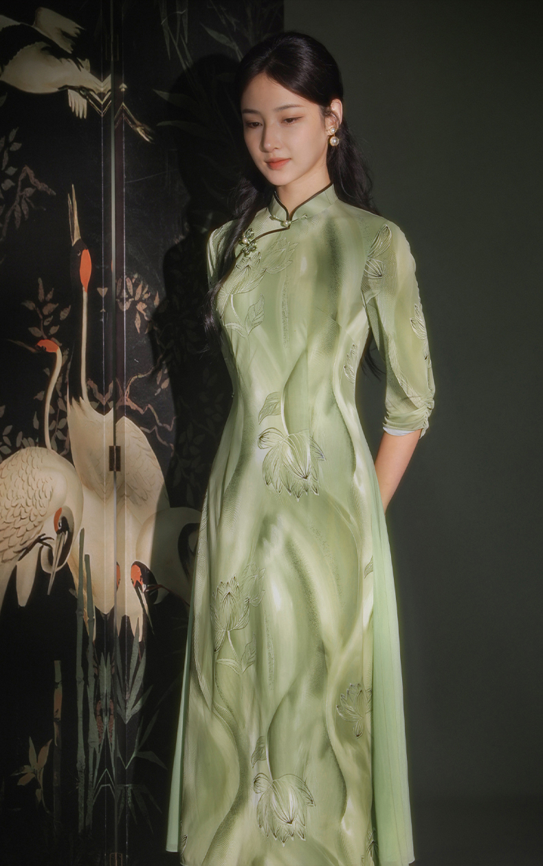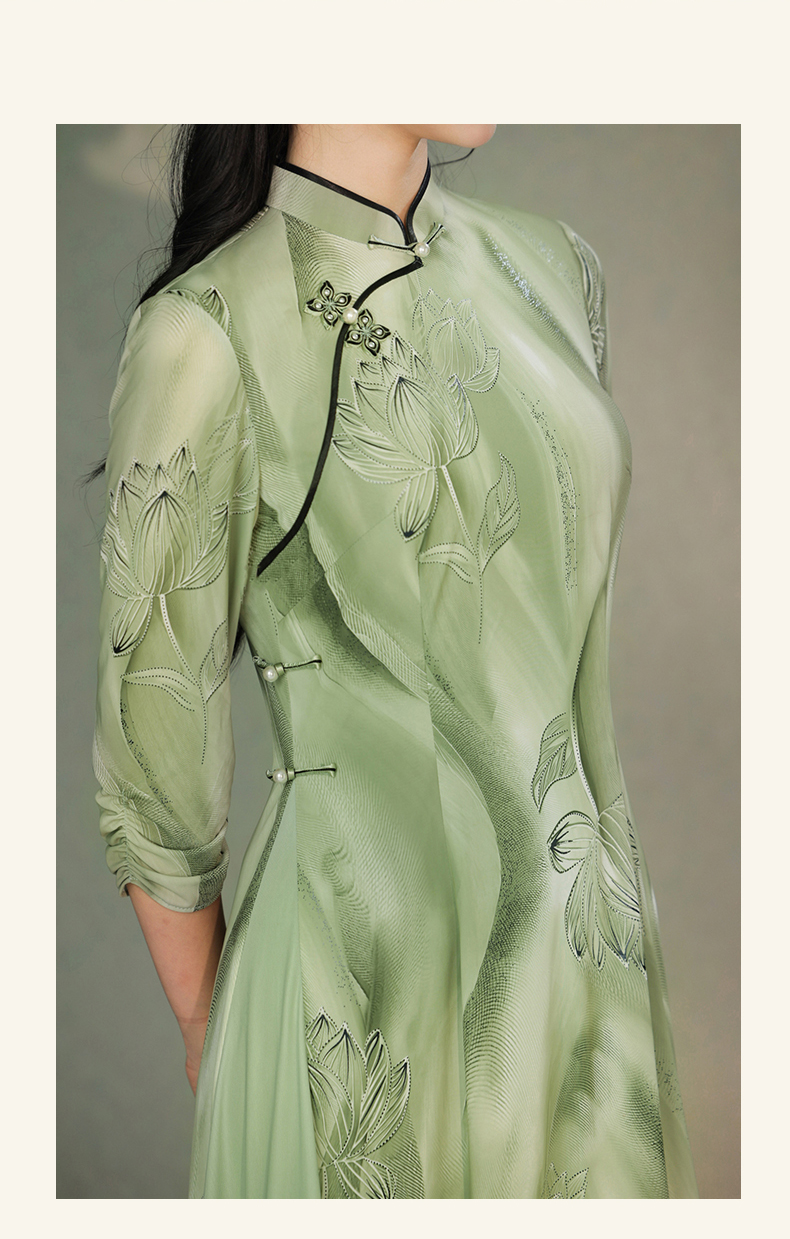 逸红颜秋荷2025秋新款高弹新中式奥黛改良中袖不开叉旗袍连衣裙女