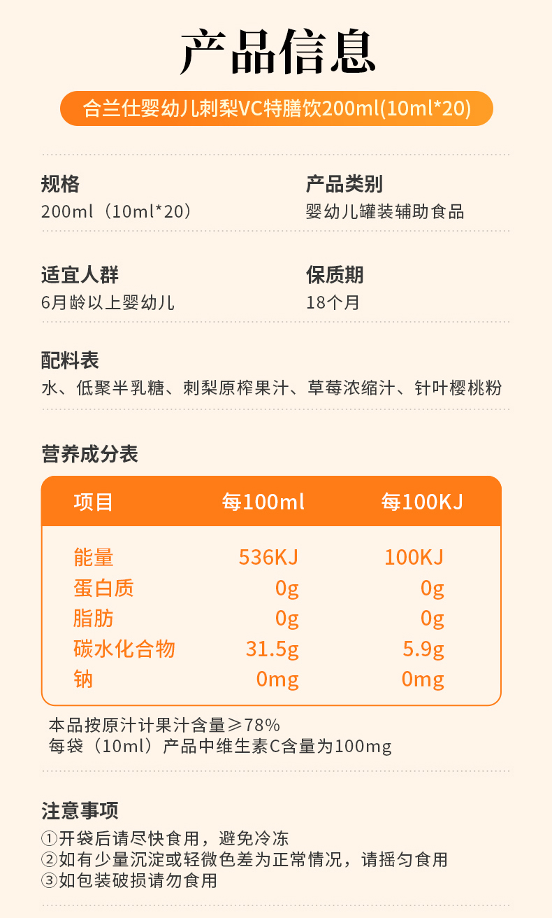 合兰仕婴幼儿刺梨VC特膳饮200ml(10ml×20)