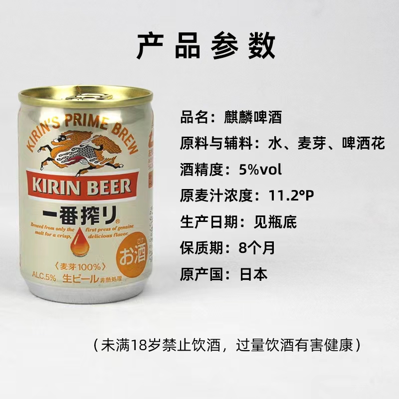 日本进口 麒麟一番榨全麦啤酒 迷你罐 5.0%vol 135ml*30罐