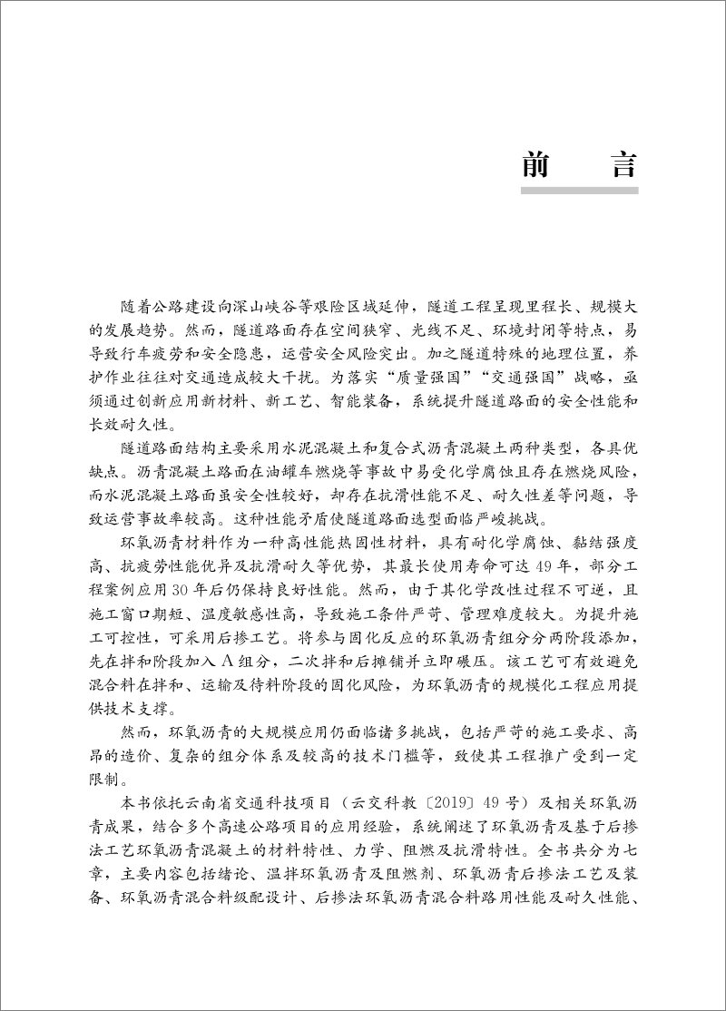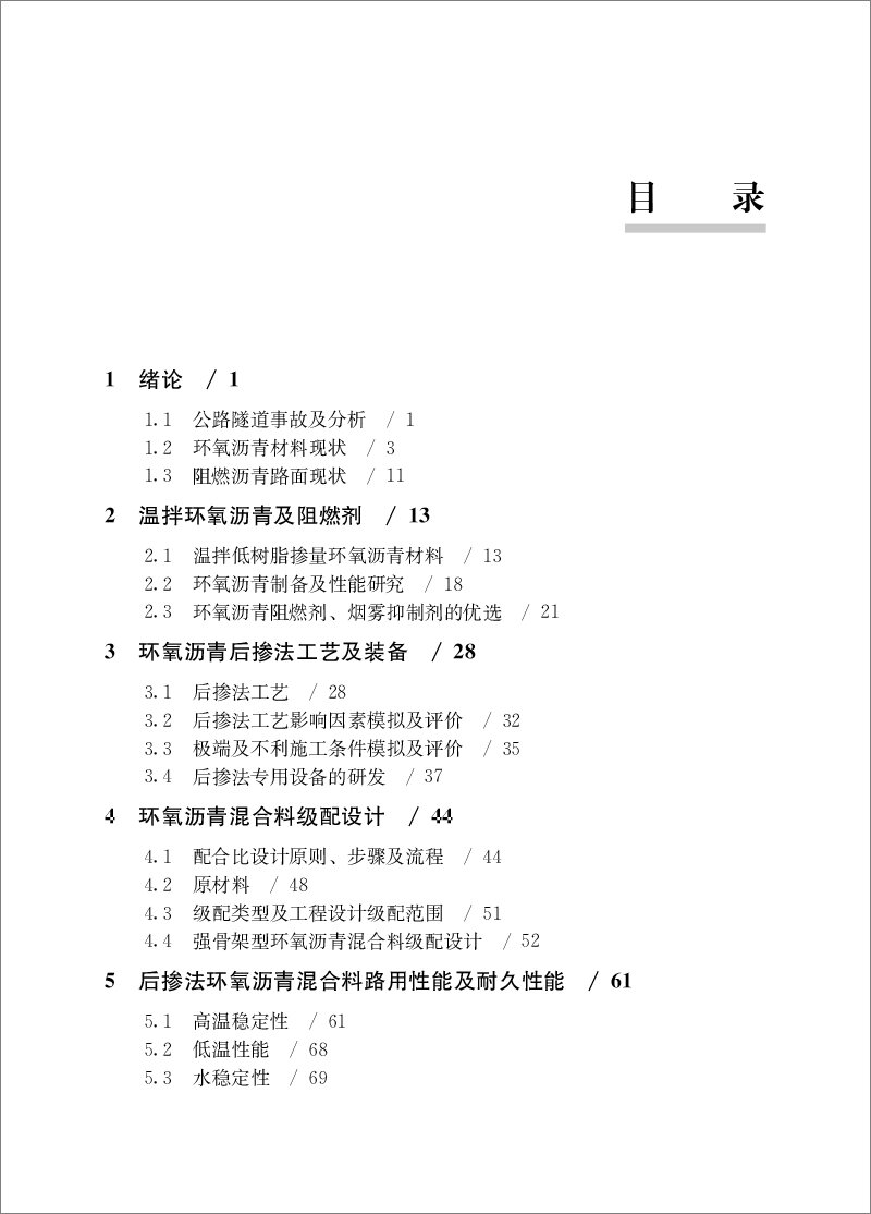 本书系 统 阐 述 了 环 氧 沥 青 及 基 于 后 掺法 工 艺 环 氧 沥 青 混 凝 土 的 材 料 特 性 、 力 学 、 阻 燃 及 抗 滑 特 性 。 全 书 共 分 为 七章 , 主 要 内 容 包 括 绪 论 、 温 拌 环 氧 沥 青 及 阻 燃 剂 、 环 氧 沥 青 后 掺 法 工 艺及 装备 、 环 氧 沥 青 混 合 料 级 配 设 计 、 后 掺 法 环 氧 沥 青 混 合 料 路 用 性 能 及 耐 久 性 能 、层 间 黏 结性 能 、 隧 道 路 面 铺 装 设 计 及 应 用 等 。本 书 总 结 了 作 者 及 相 关 合 作 研 究 者 多 年 的 研 究 成 果 及 应用 经 验 , 并 突 出 了其 在 道 路 工 程 中 的 实 际 应 用 价 值 。