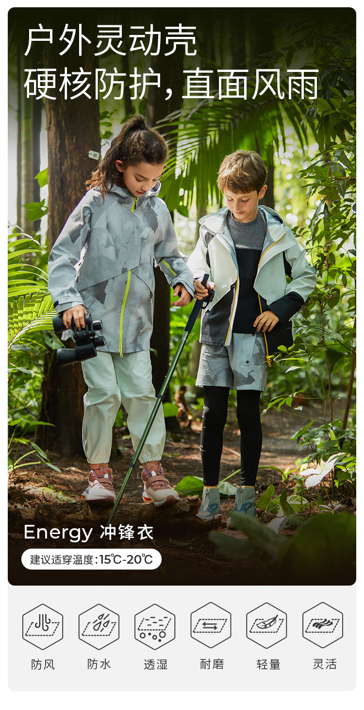 【爆款专属】moodytiger儿童硬核冲锋衣防风防水23秋季新品男女童运动户外服M33214001