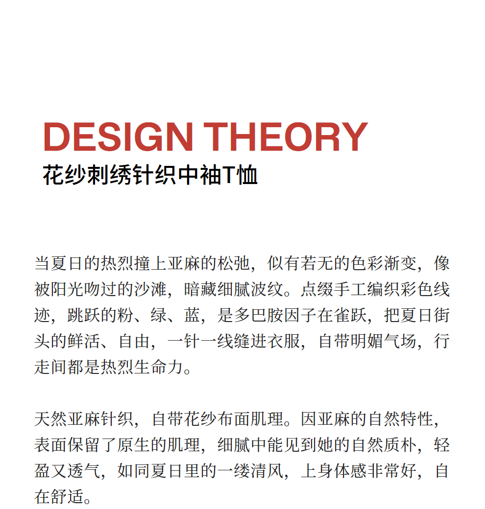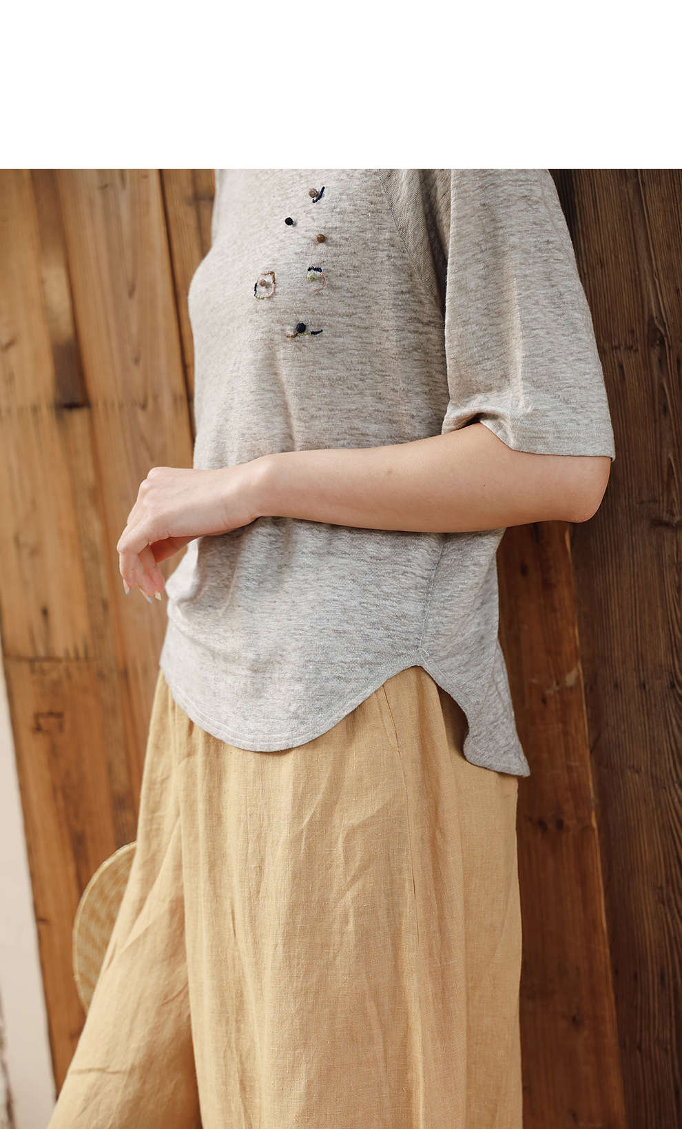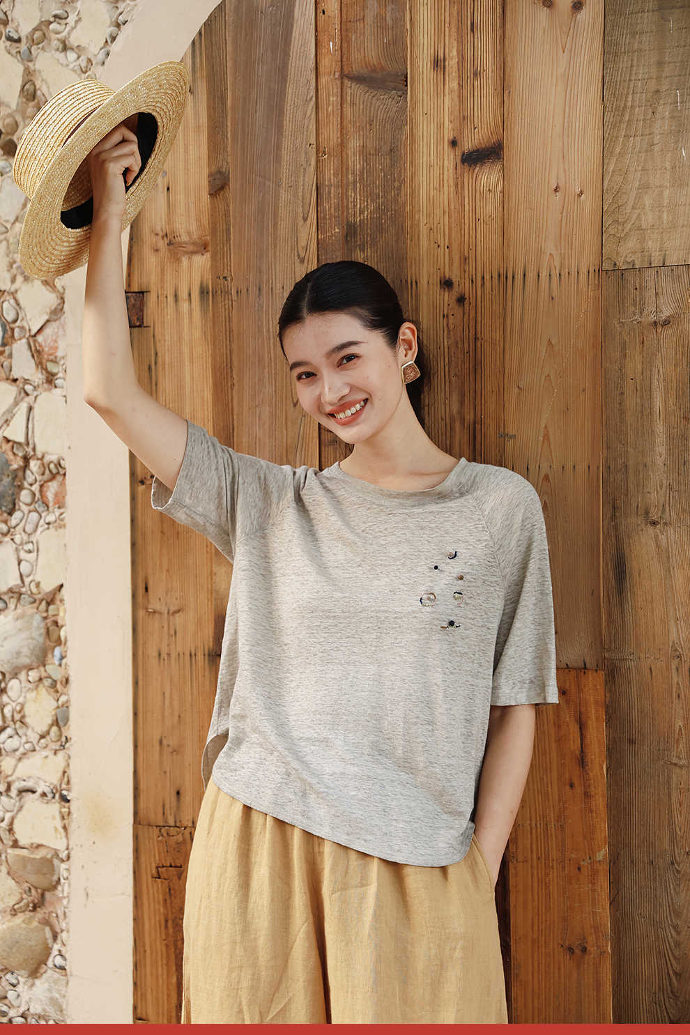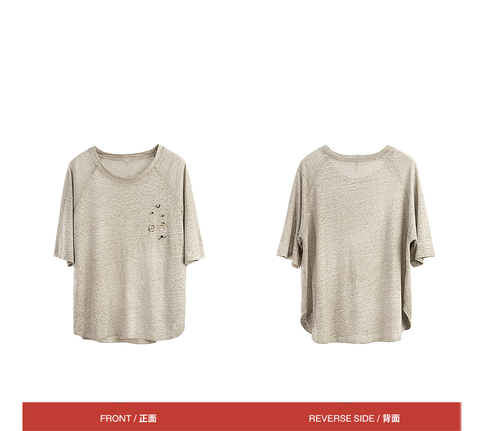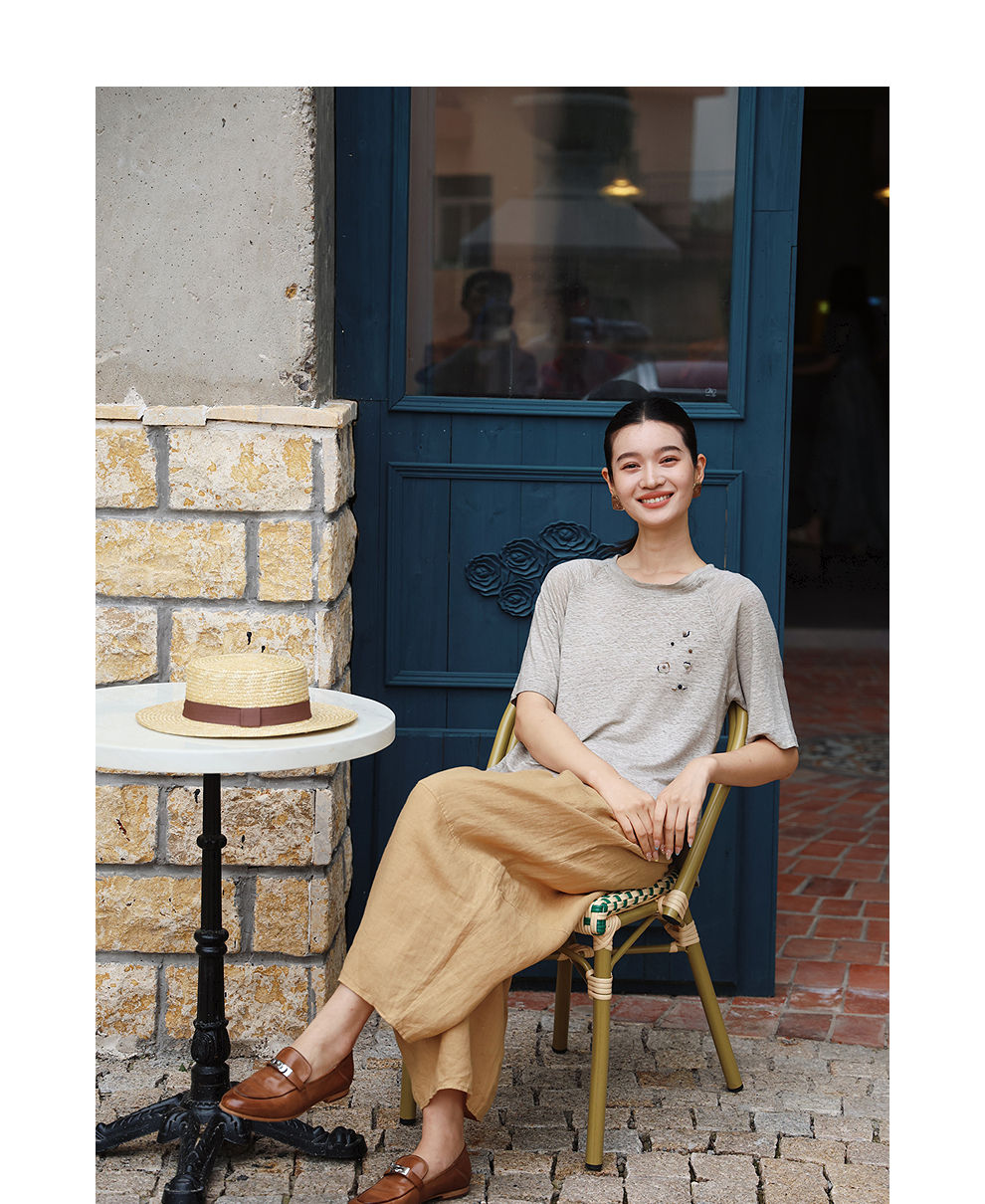 绽放449朵/【多巴胺系列】亚麻花纱刺绣圆领插肩袖针织中袖T恤夏