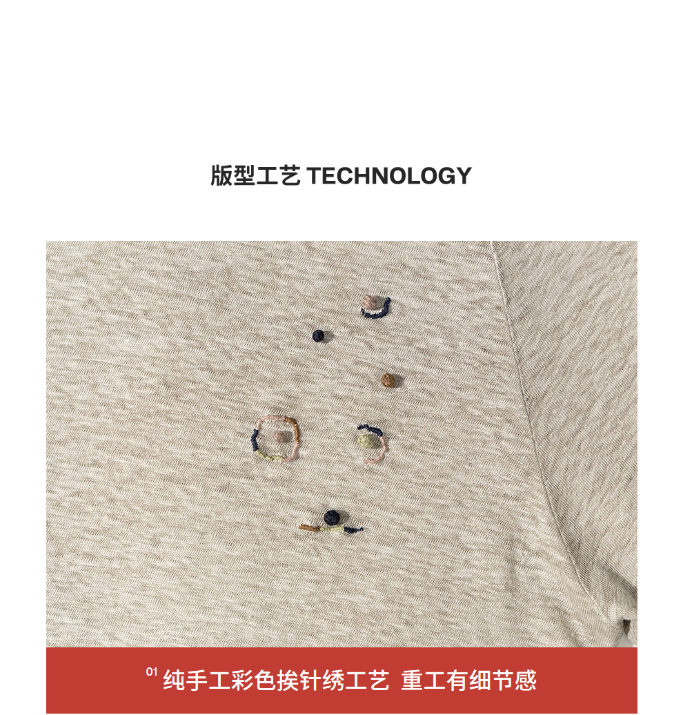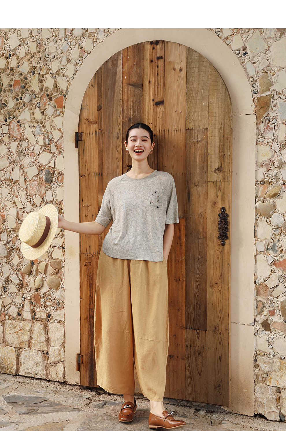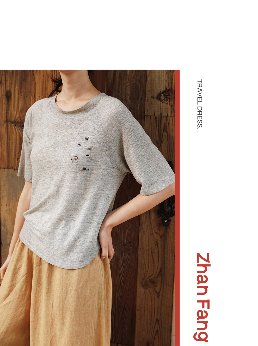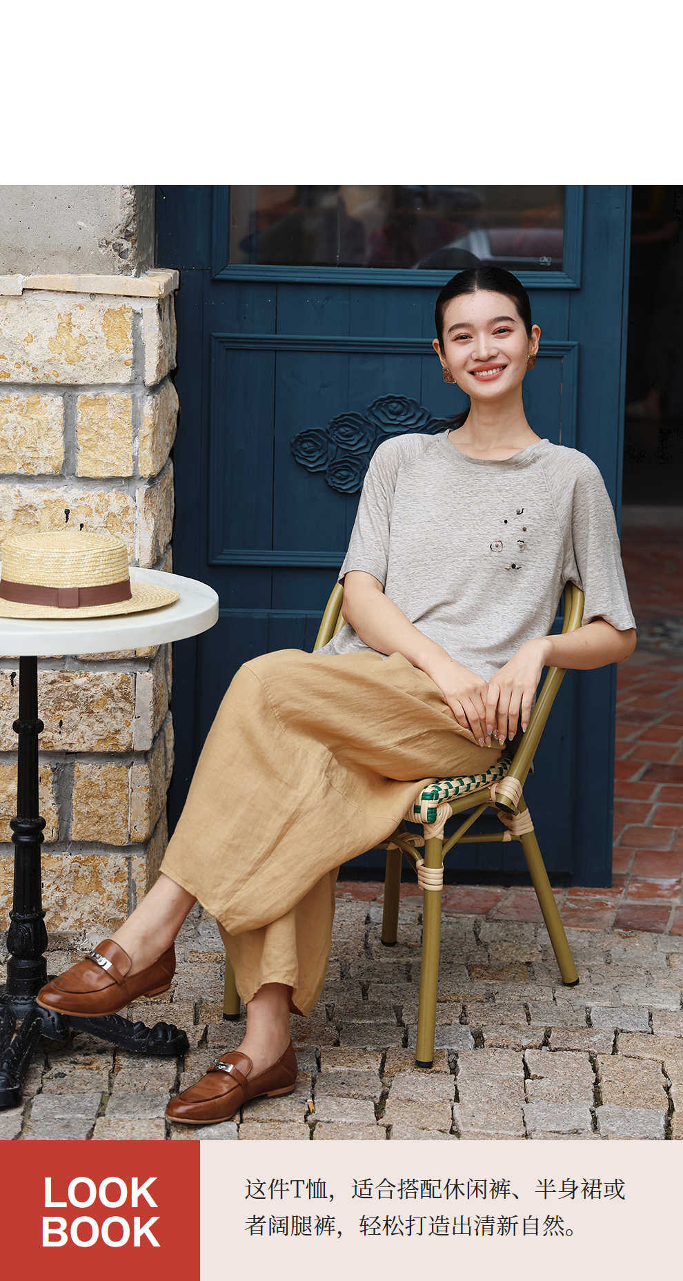 绽放449朵/【多巴胺系列】亚麻花纱刺绣圆领插肩袖针织中袖T恤夏