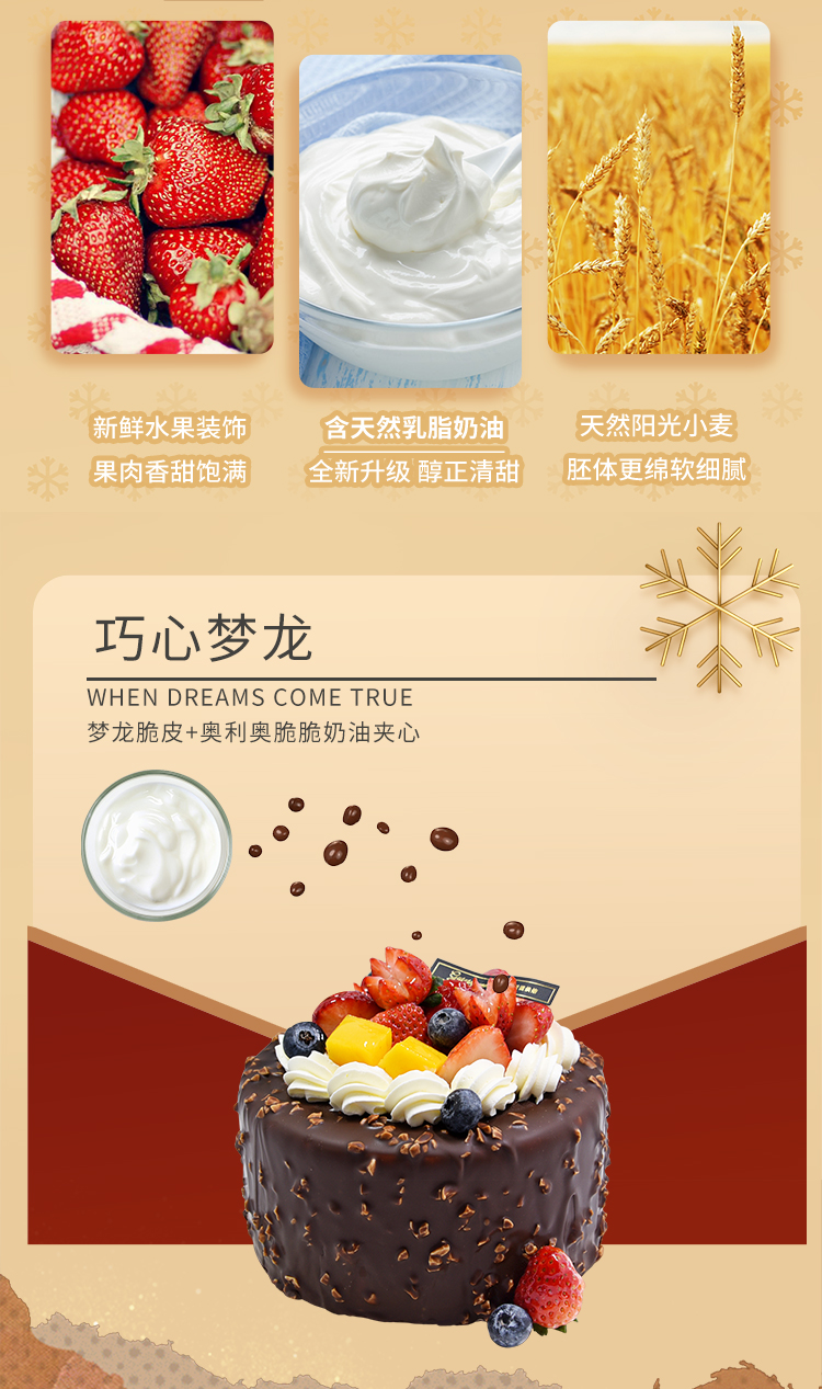 【巧心梦龙 】经典巧克力口味蛋糕——纯乳脂与牛奶奶油混合,口味升级,细腻香甜