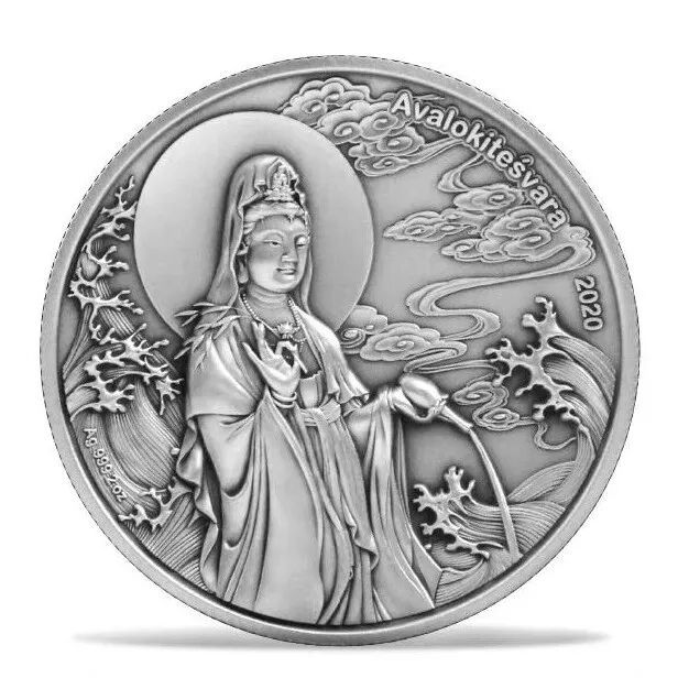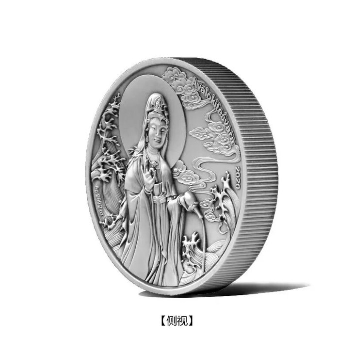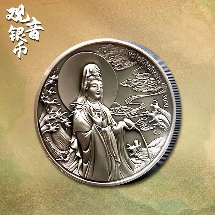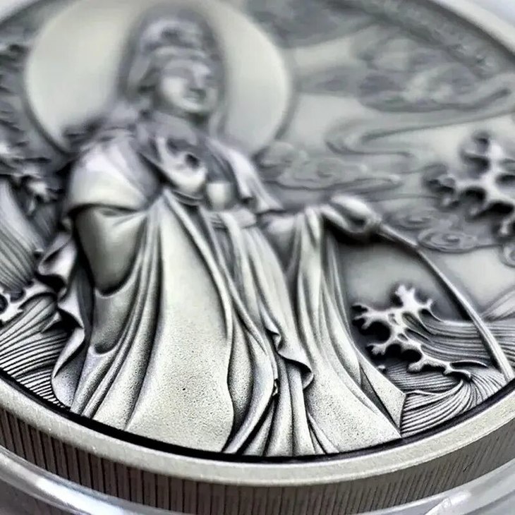今天带来一套非常经典的纪念币,萨摩亚观音纪念币,重达2盎司的加厚银币。这枚观音银币采用罕见双面弧形凹面,超高浮雕工艺打造,立体感强,完美呈现观音的造型: