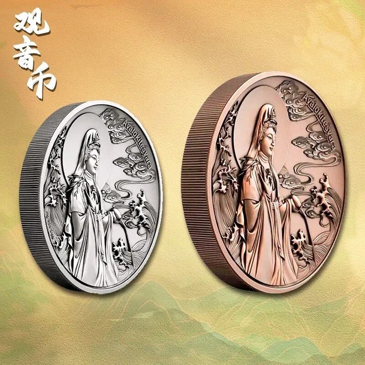 萨摩亚观音银币采用罕见的双面弧形凹面,结合超高浮雕、仿古等工艺打造,完美凸显观音的慈悲与典雅。
