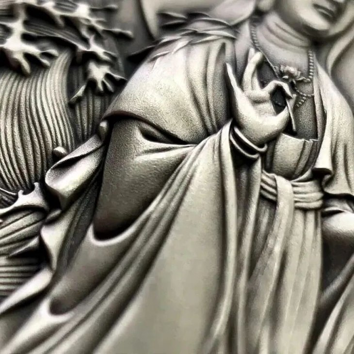 另外,这枚银币拥有远超其他纪念币的浮雕高度,令币面细节表现相当到位,观音的形象栩栩如生。