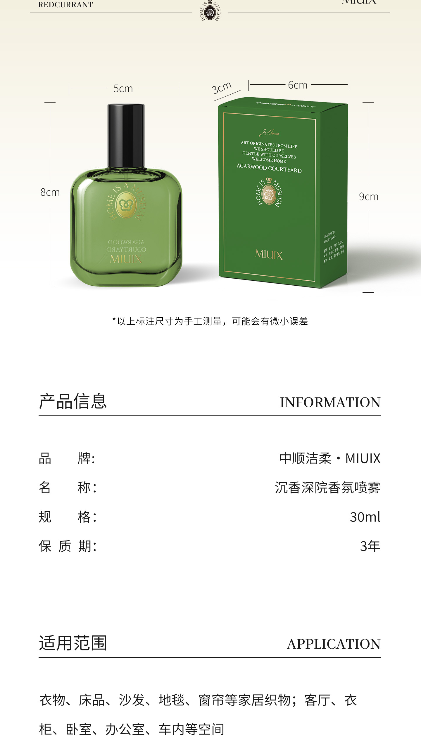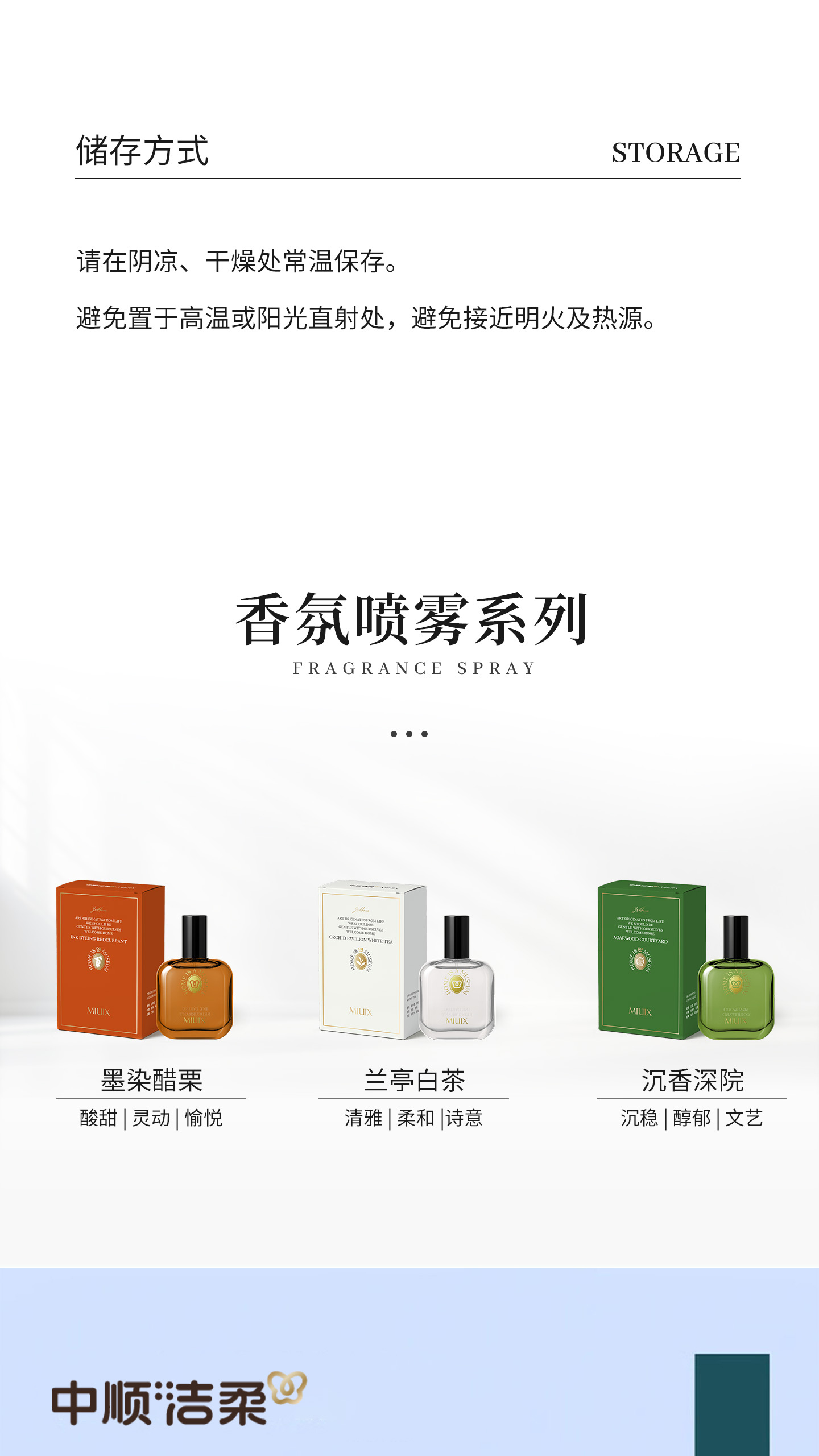 中顺洁柔 MIUIX-沉香深院墨染醋栗兰亭白茶香氛喷雾30ml 送1片香挂