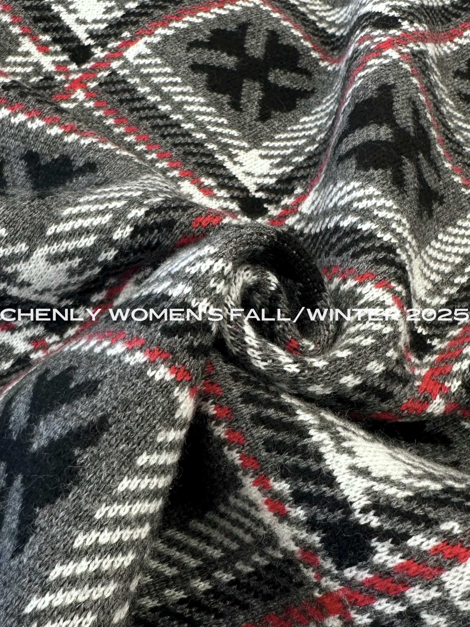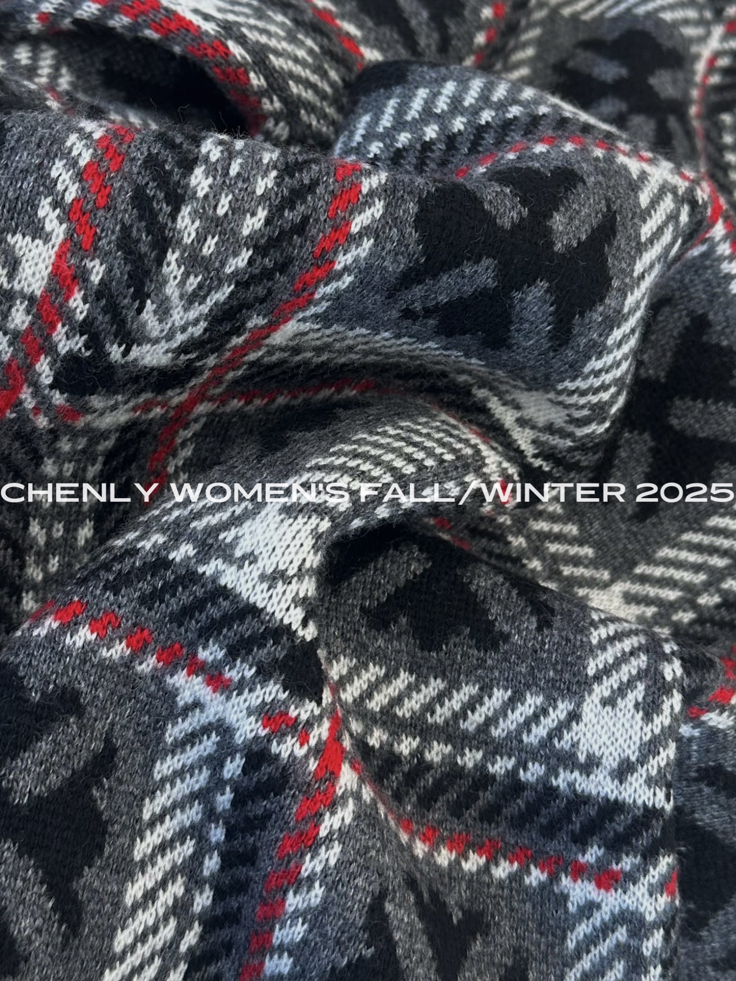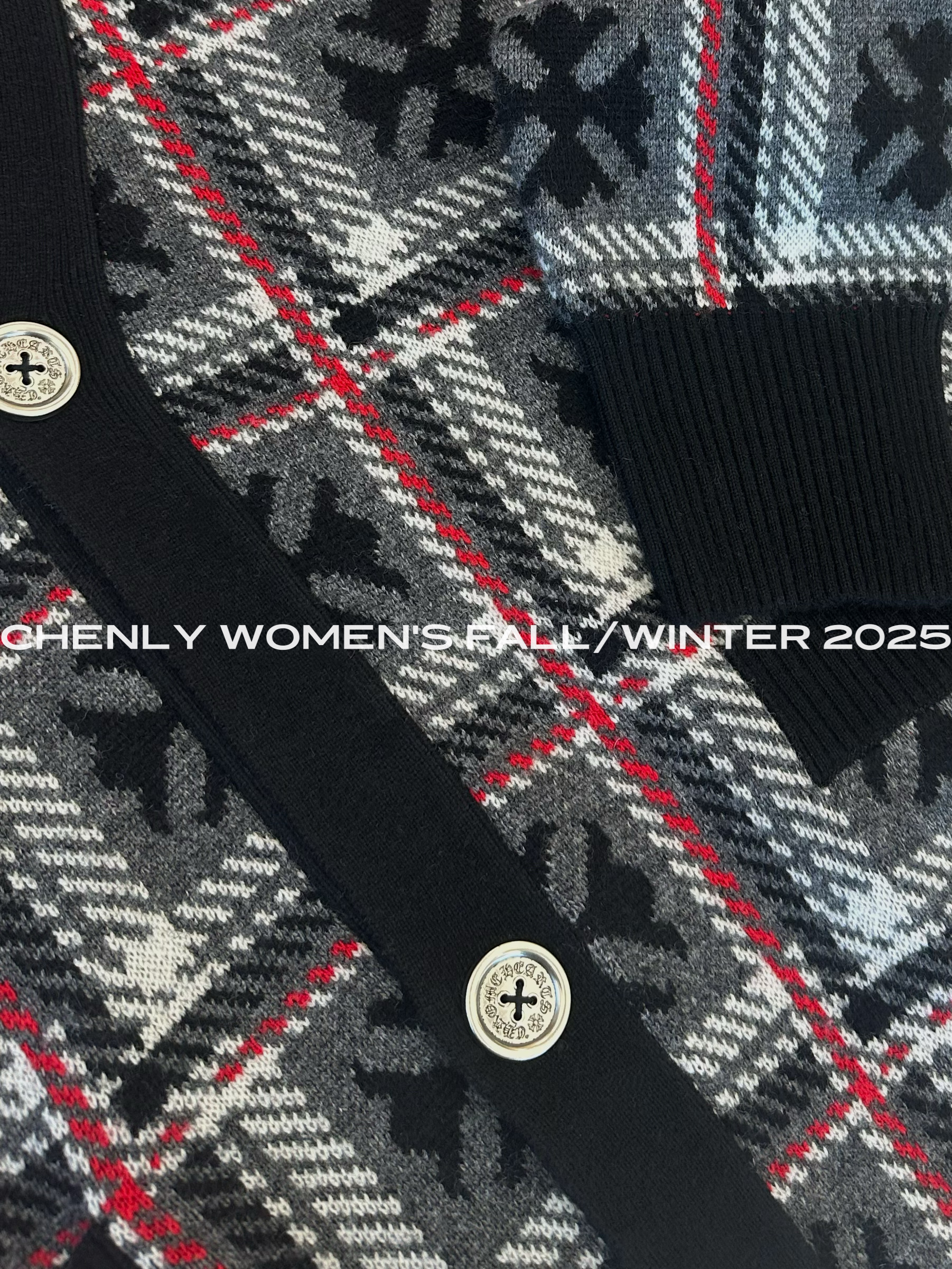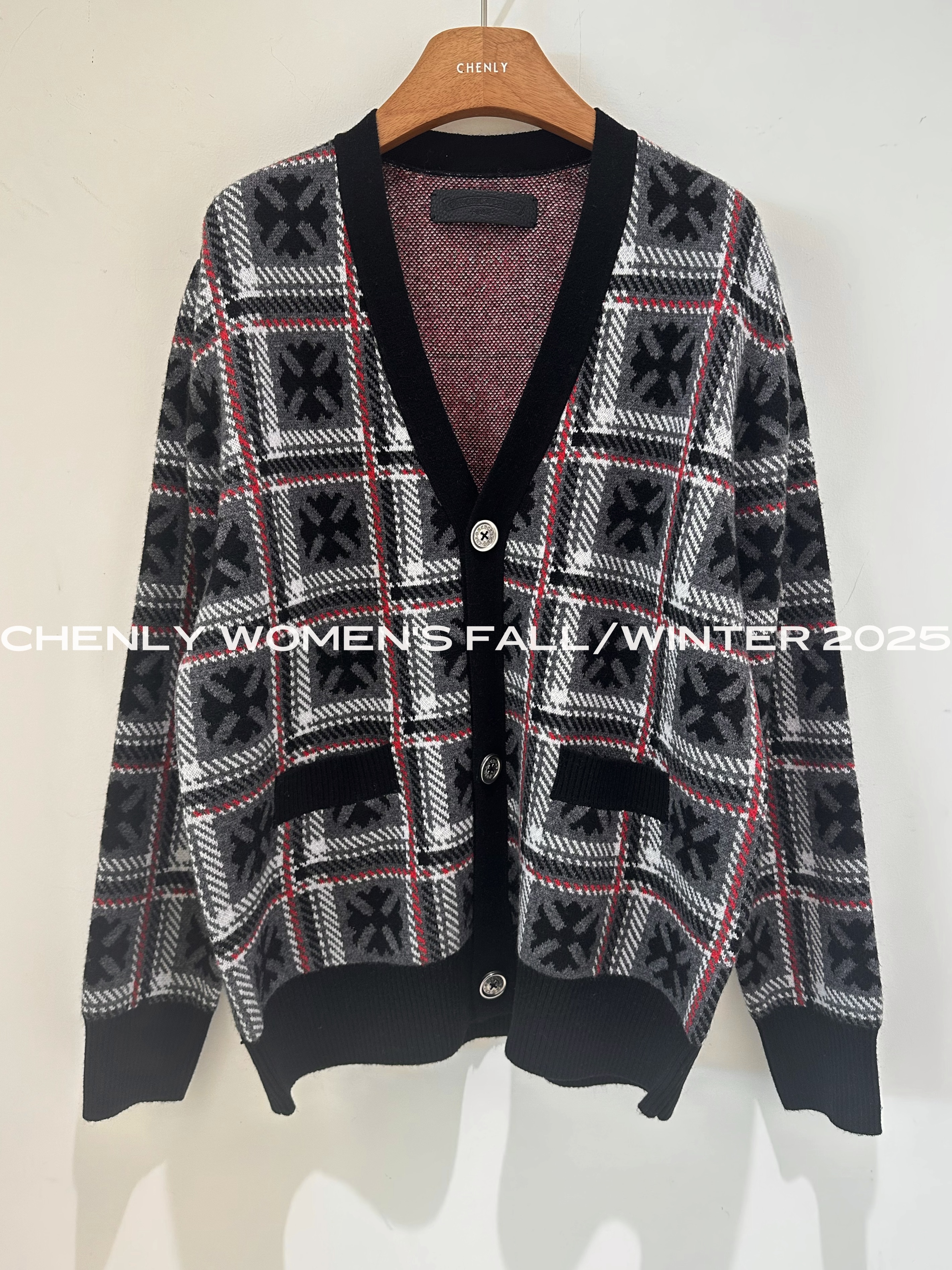 尘衣|25F/W 男女同款十字格纹提花羊毛开衫