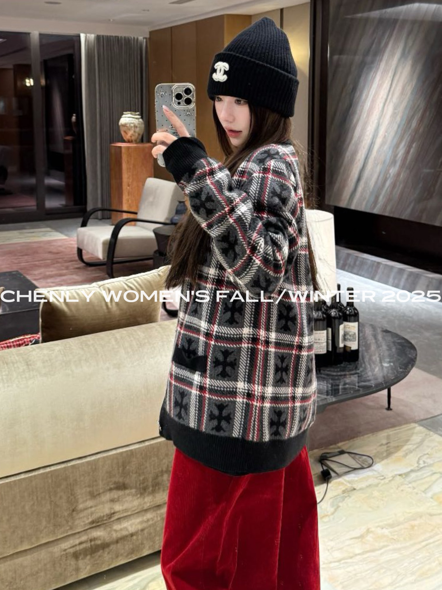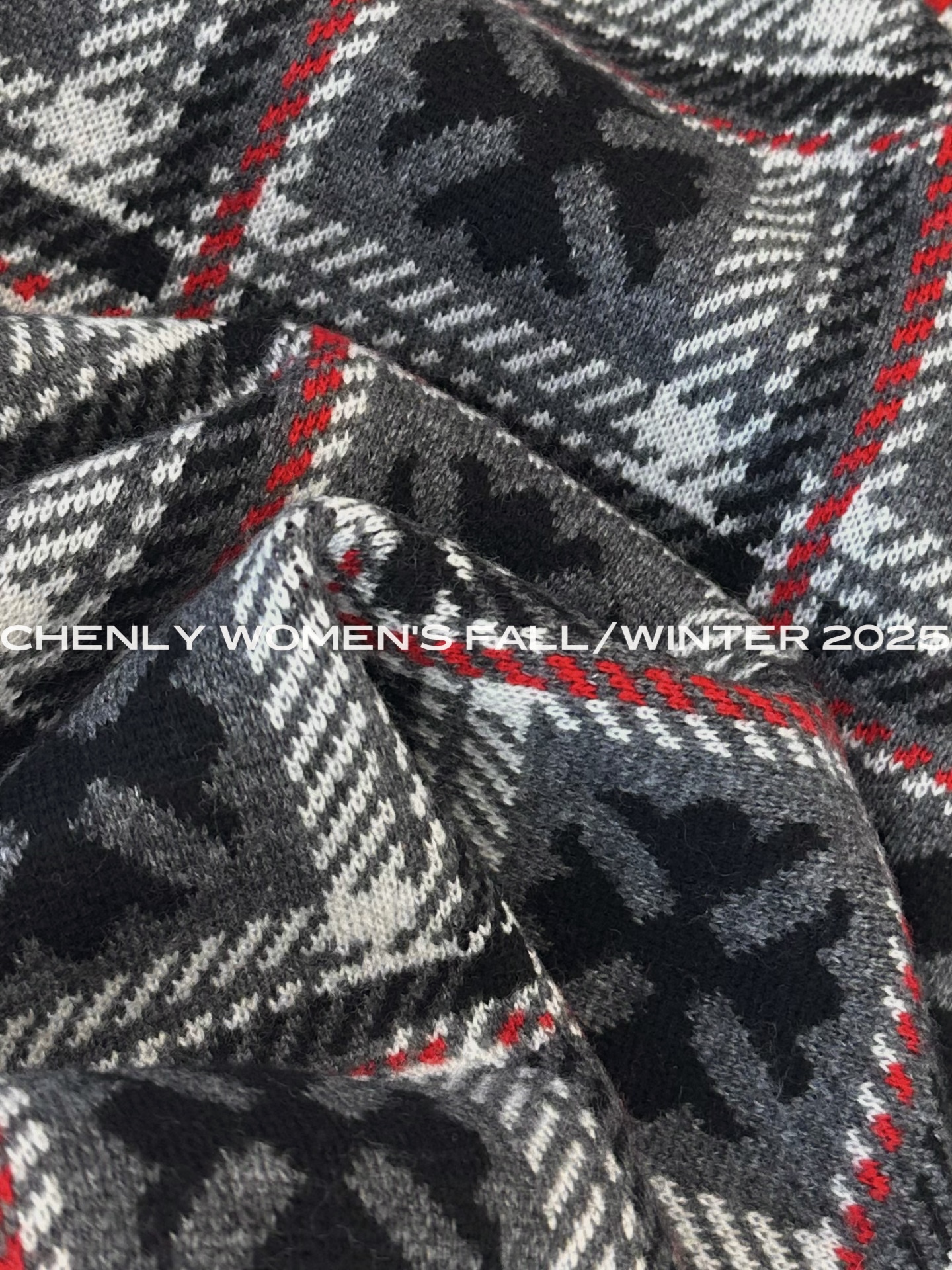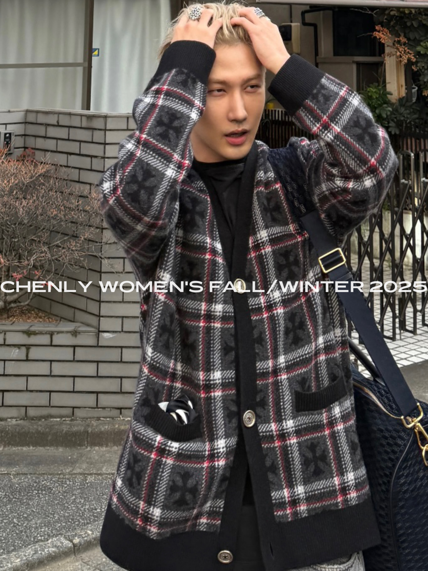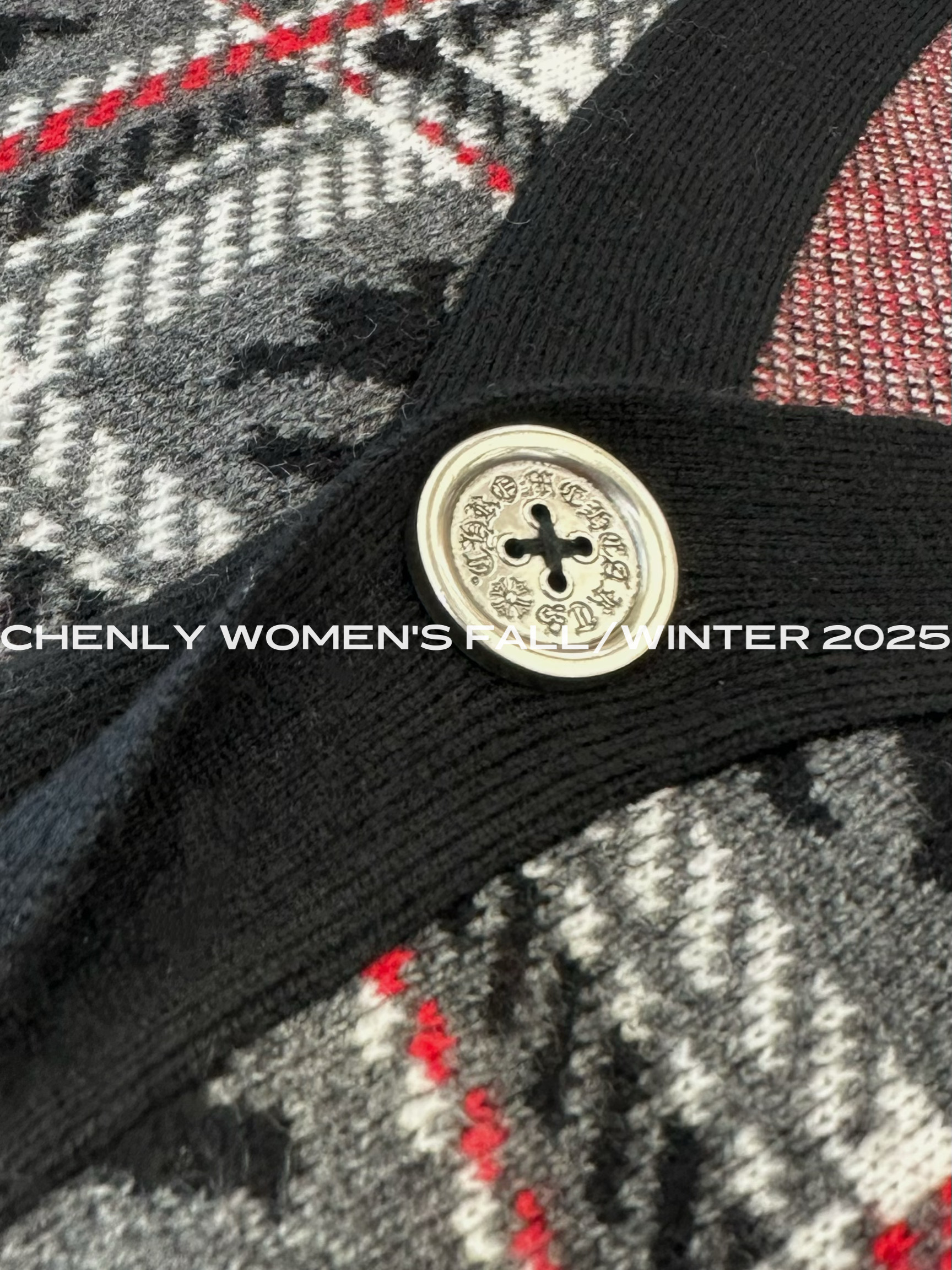 尘衣|25F/W 男女同款十字格纹提花羊毛开衫