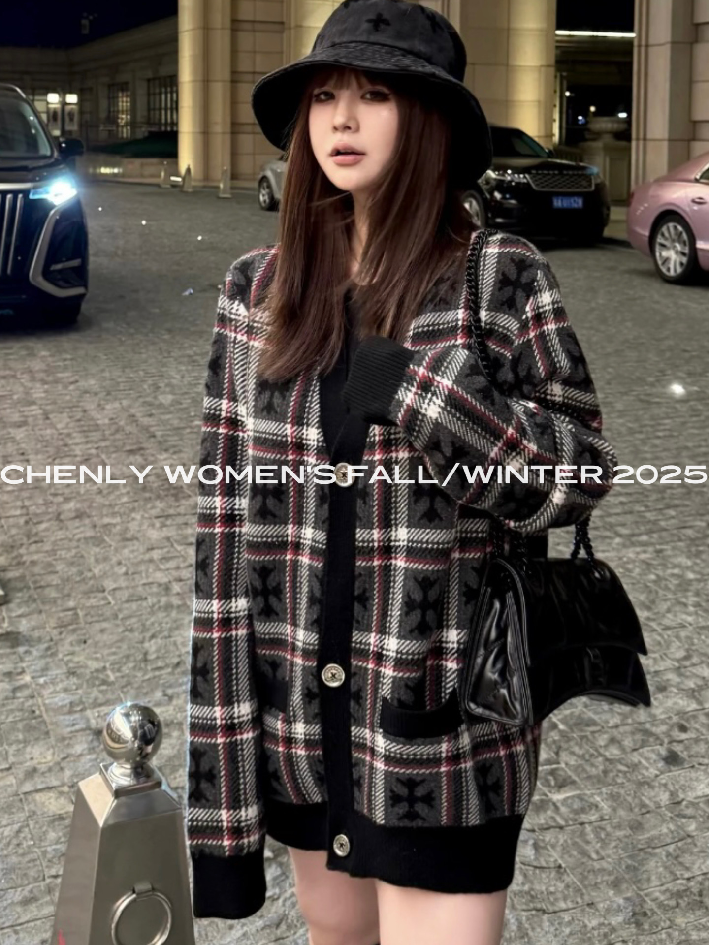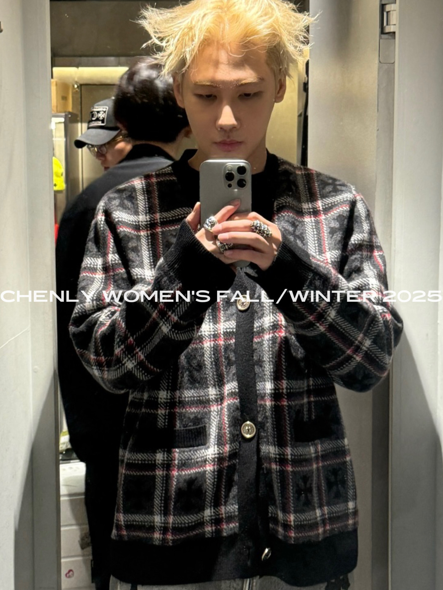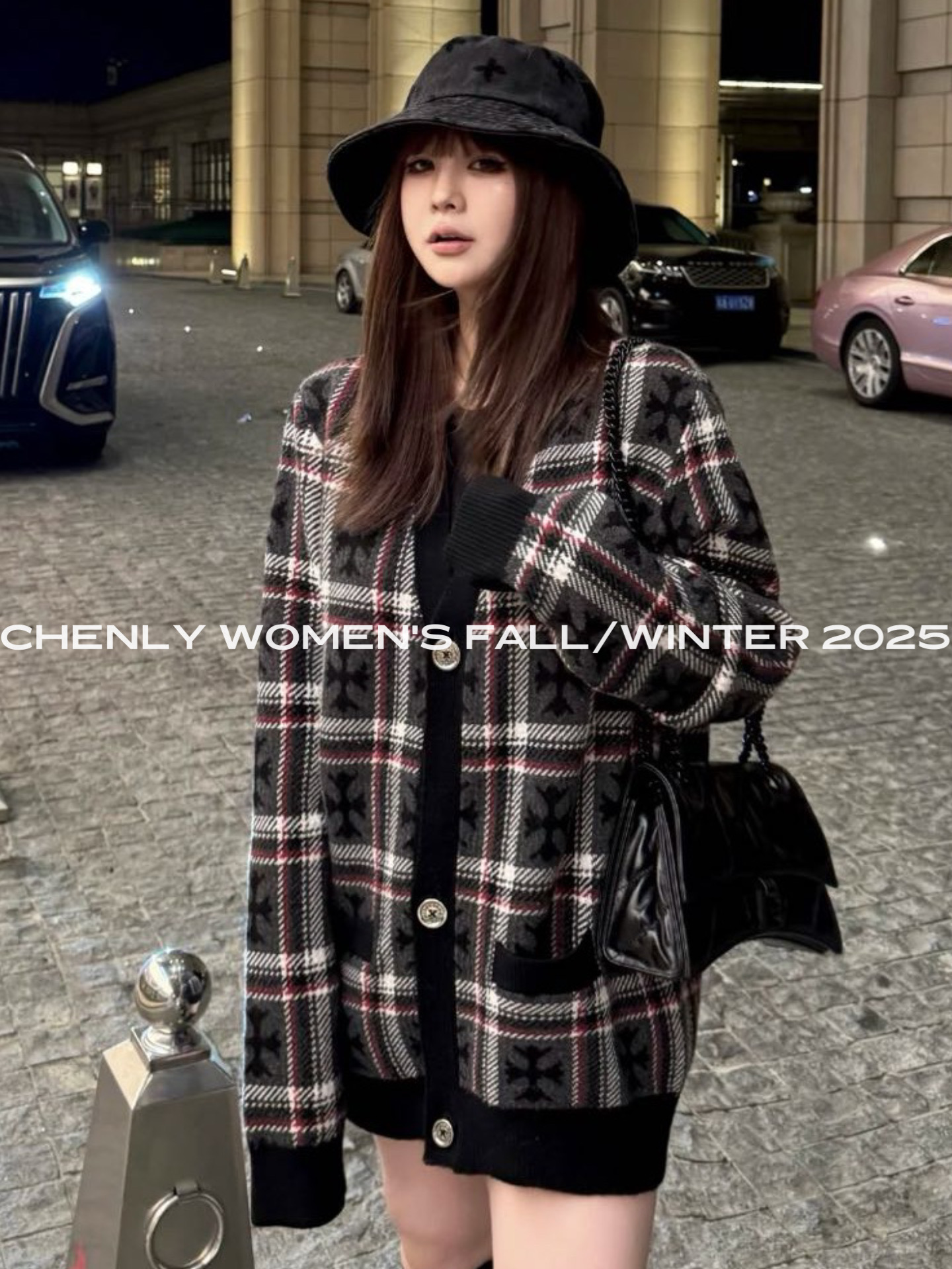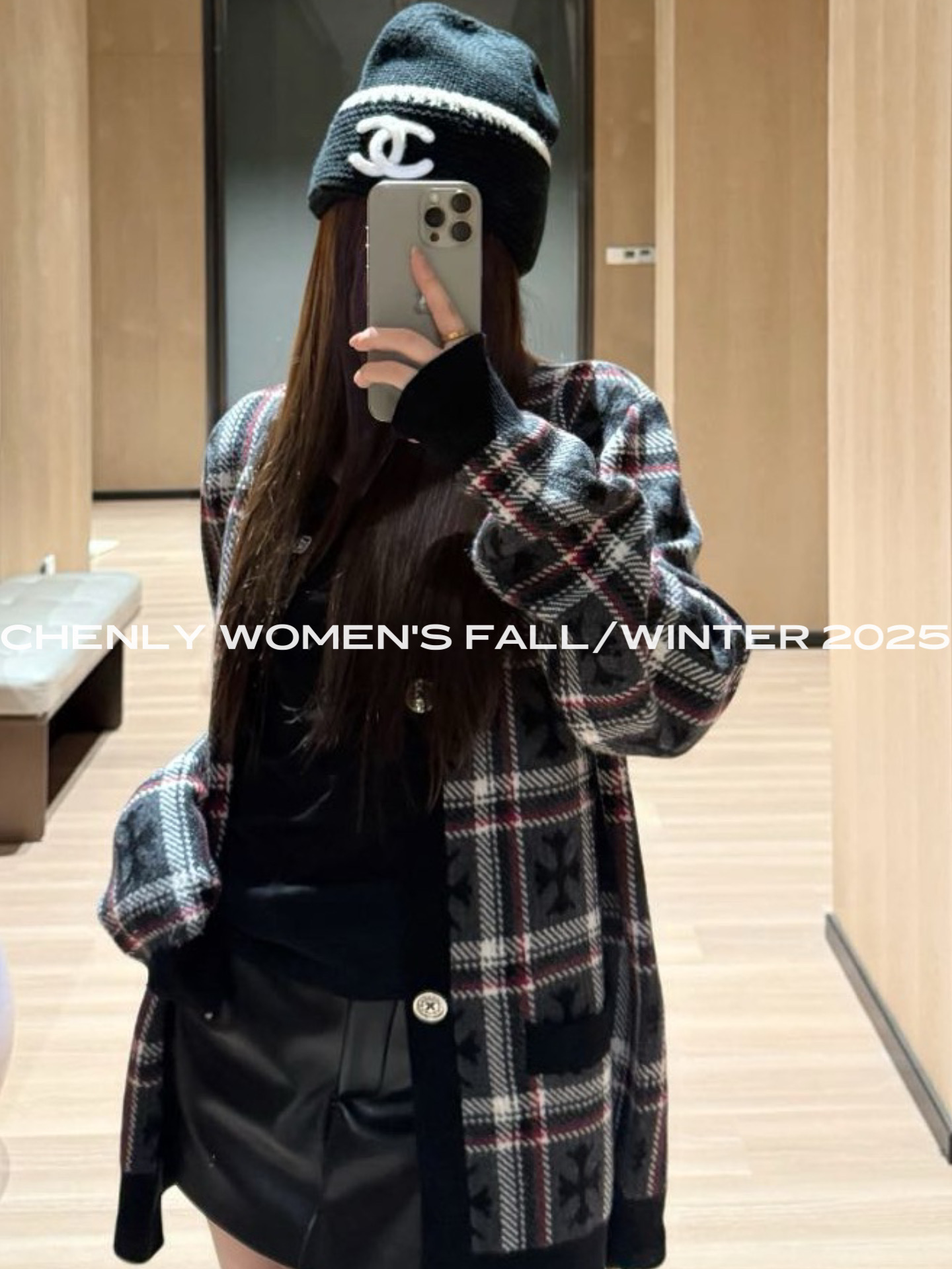 尘衣|25F/W 男女同款十字格纹提花羊毛开衫