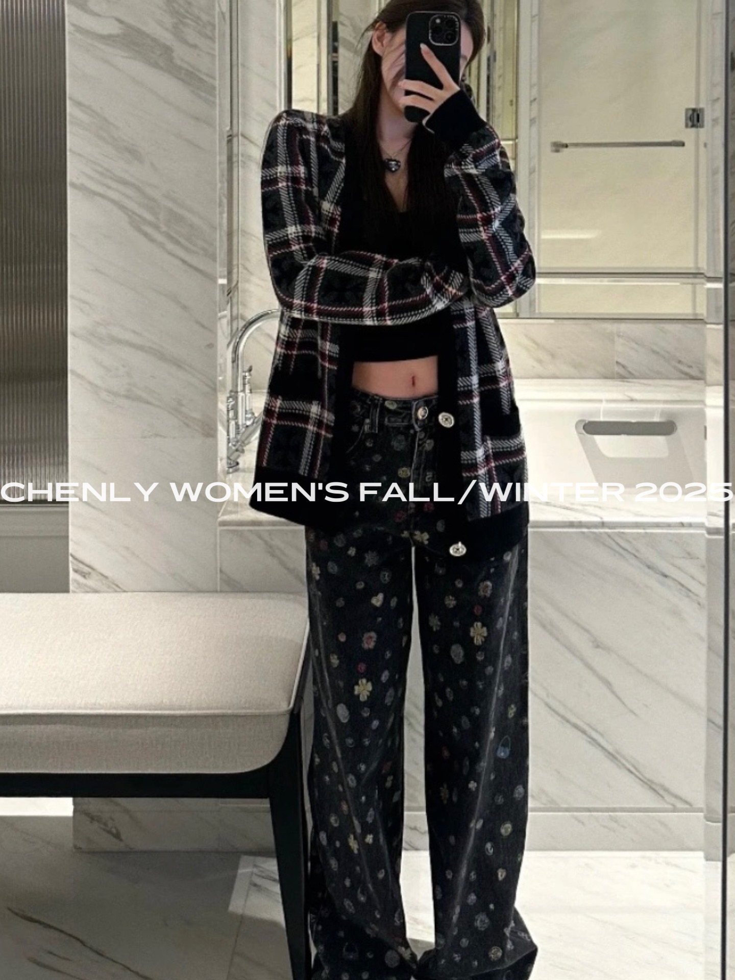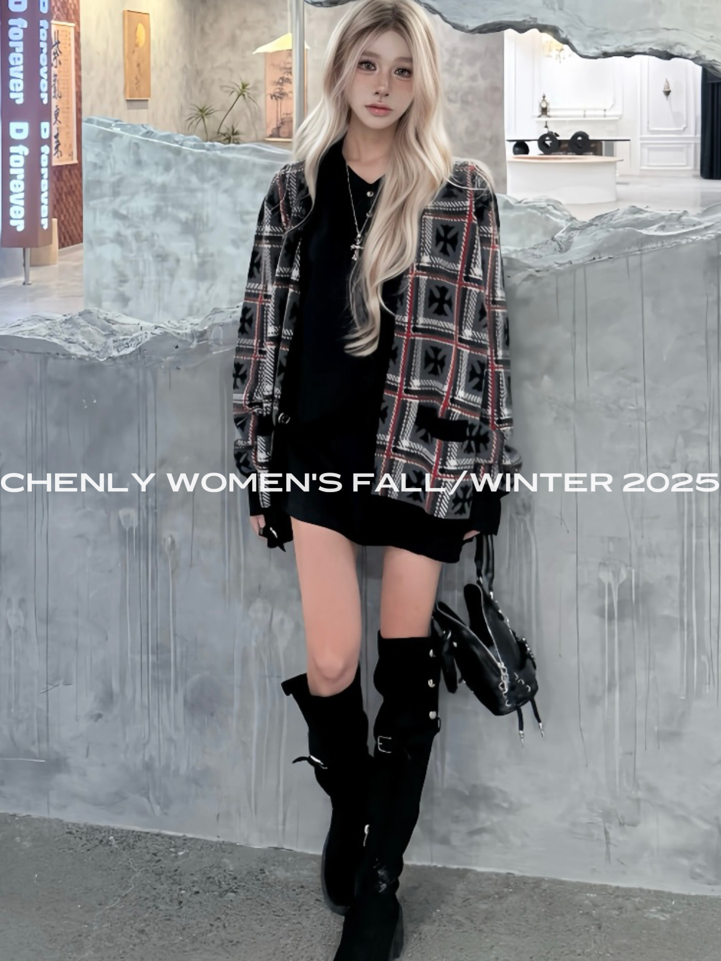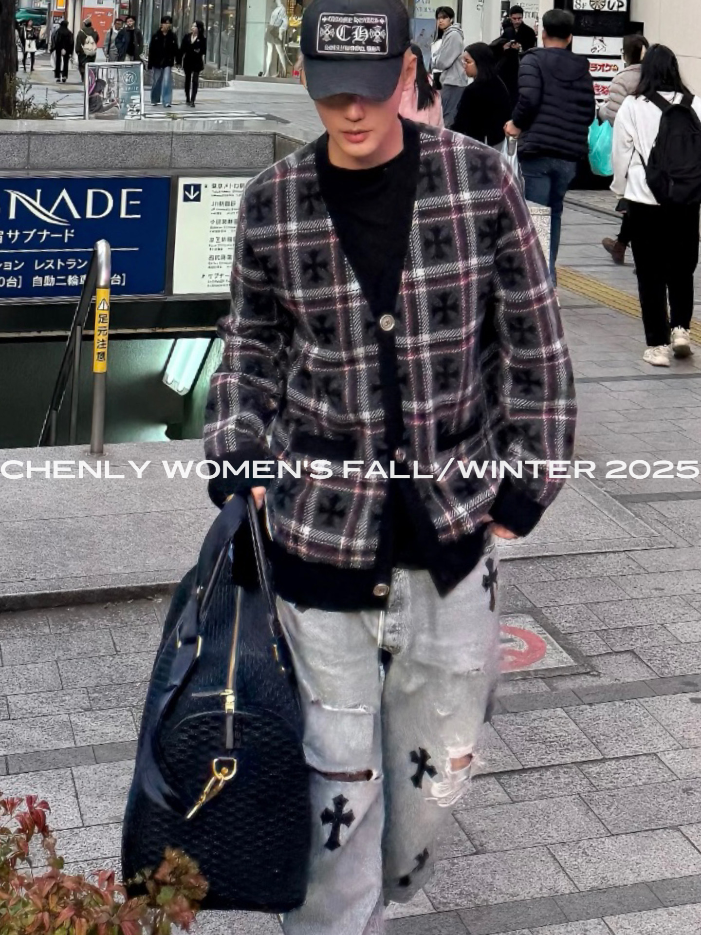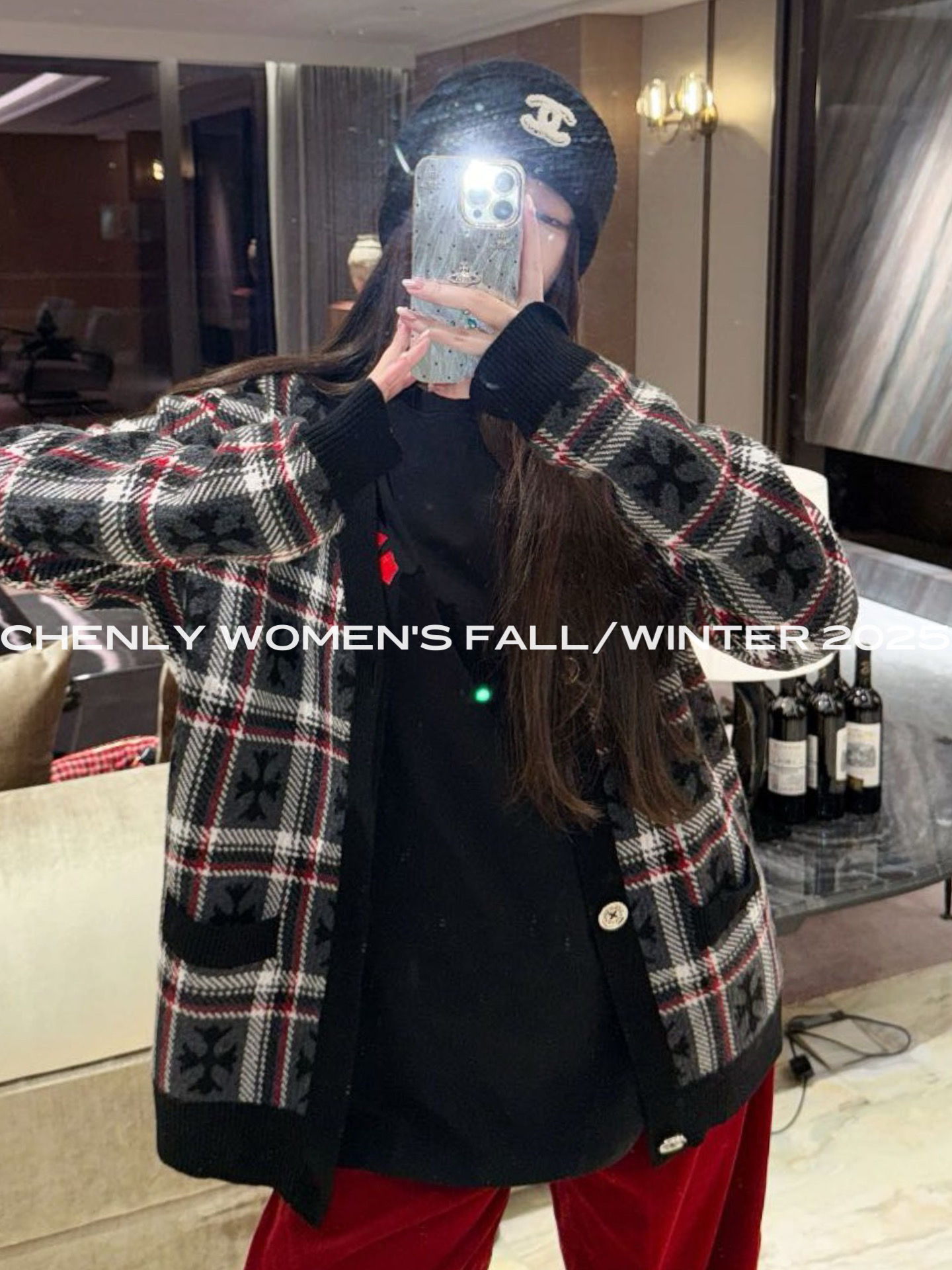 尘衣|25F/W 男女同款十字格纹提花羊毛开衫