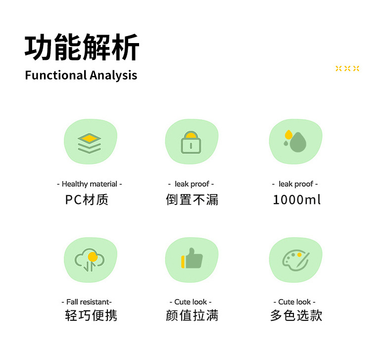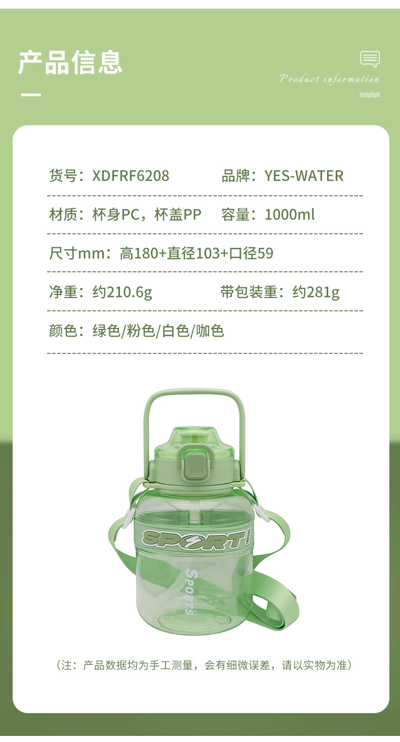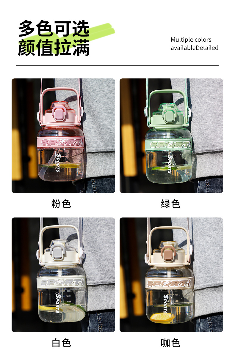 【高颜值大肚杯】新款清新简约户外健身运动水壶 吸管杯可斜跨