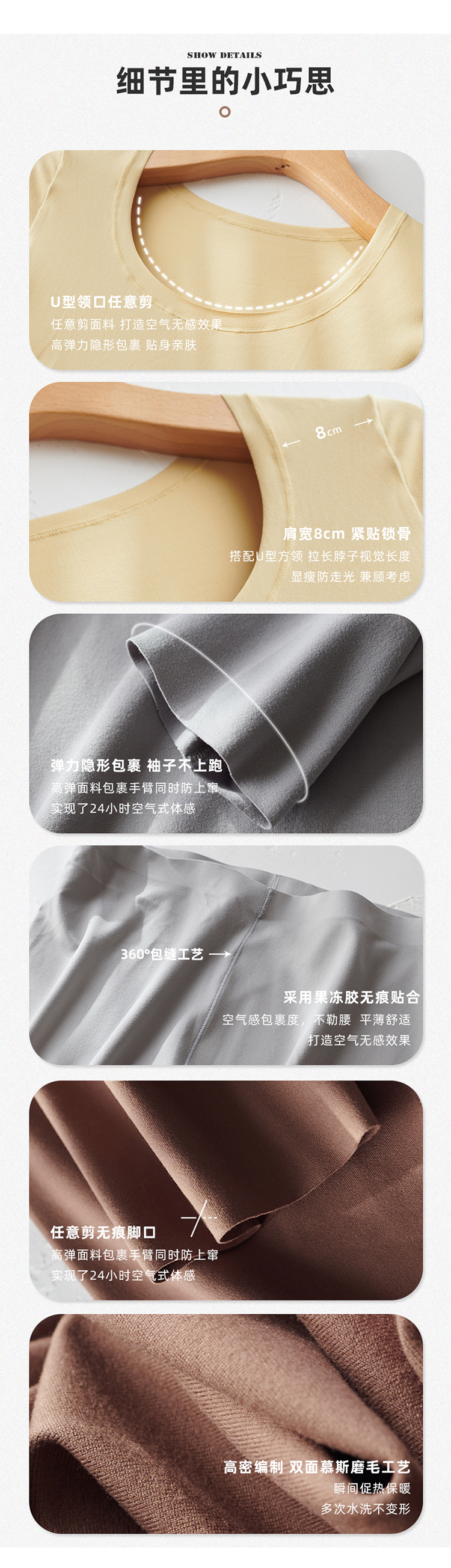 | 【品名】PSQUEEN 保暖套装 双面慕斯绒 高弹恒温 5款可选 【规格】背心、上衣、长裤,背心+长裤,上衣+长裤 【颜色】黑色,奶肤色,黑巧色,芝士色,锡灰色 【尺码】均码(90-140斤) 【产地】国内 【发货包装】独立包装袋 【发货地】广东 【发货快递】中通 【不发货区域】港澳台 【补邮费地区】新疆、西藏、内蒙古+10元 【发货时效】48-72小时,周末节假日顺延 |