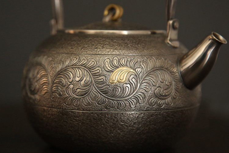 问鼎银壶唐草纹汤沸(银色)(缺货)