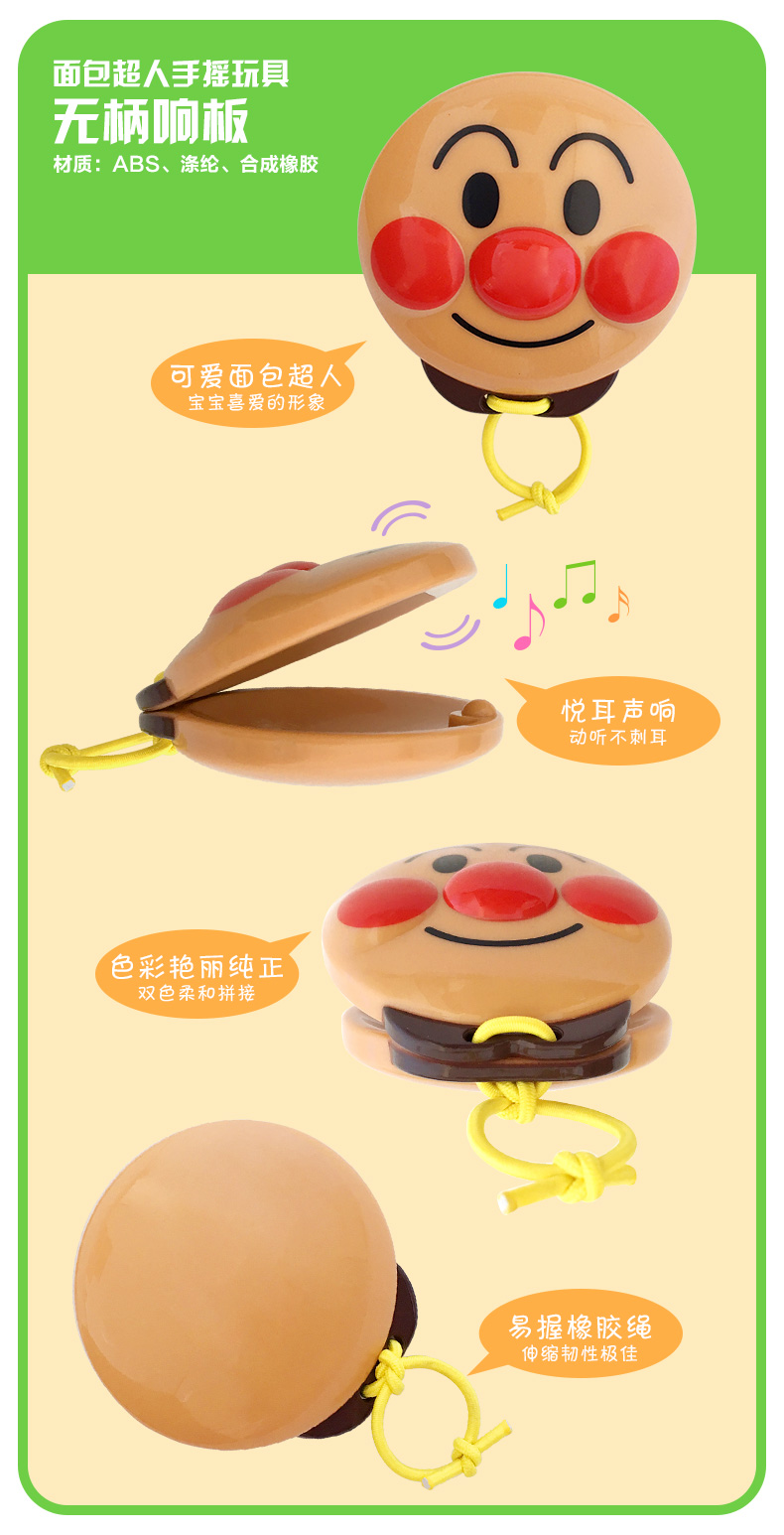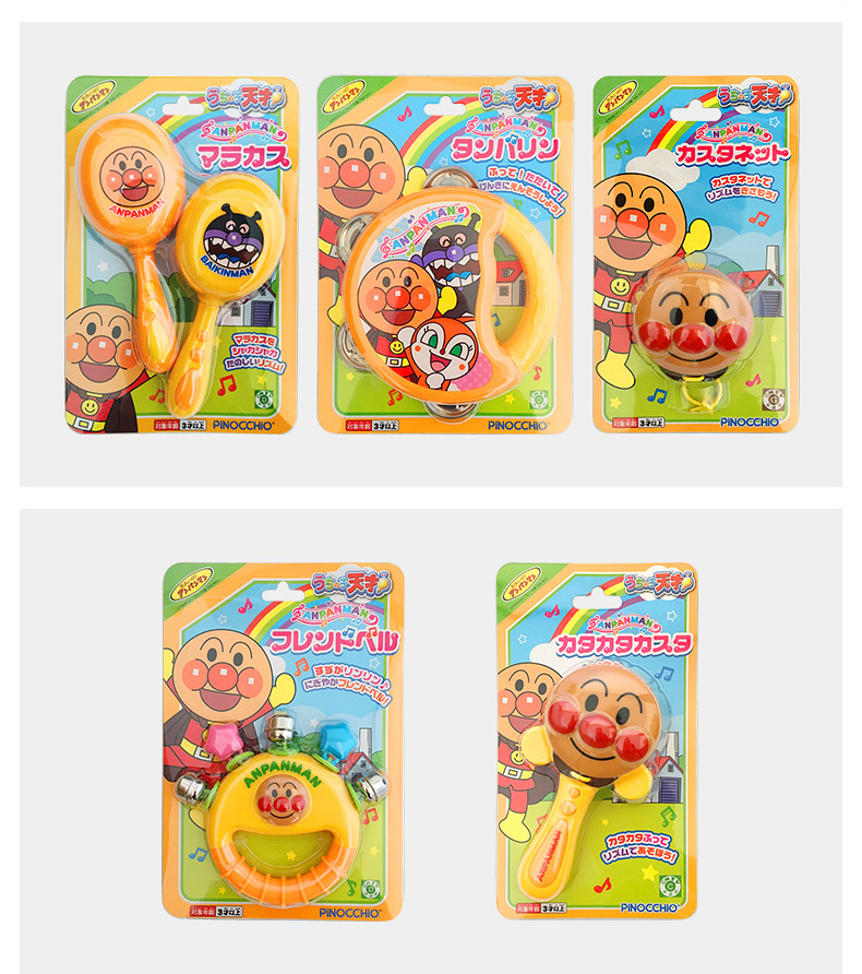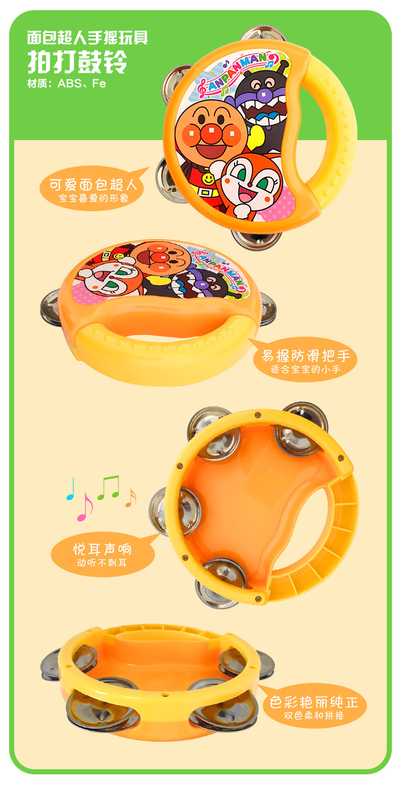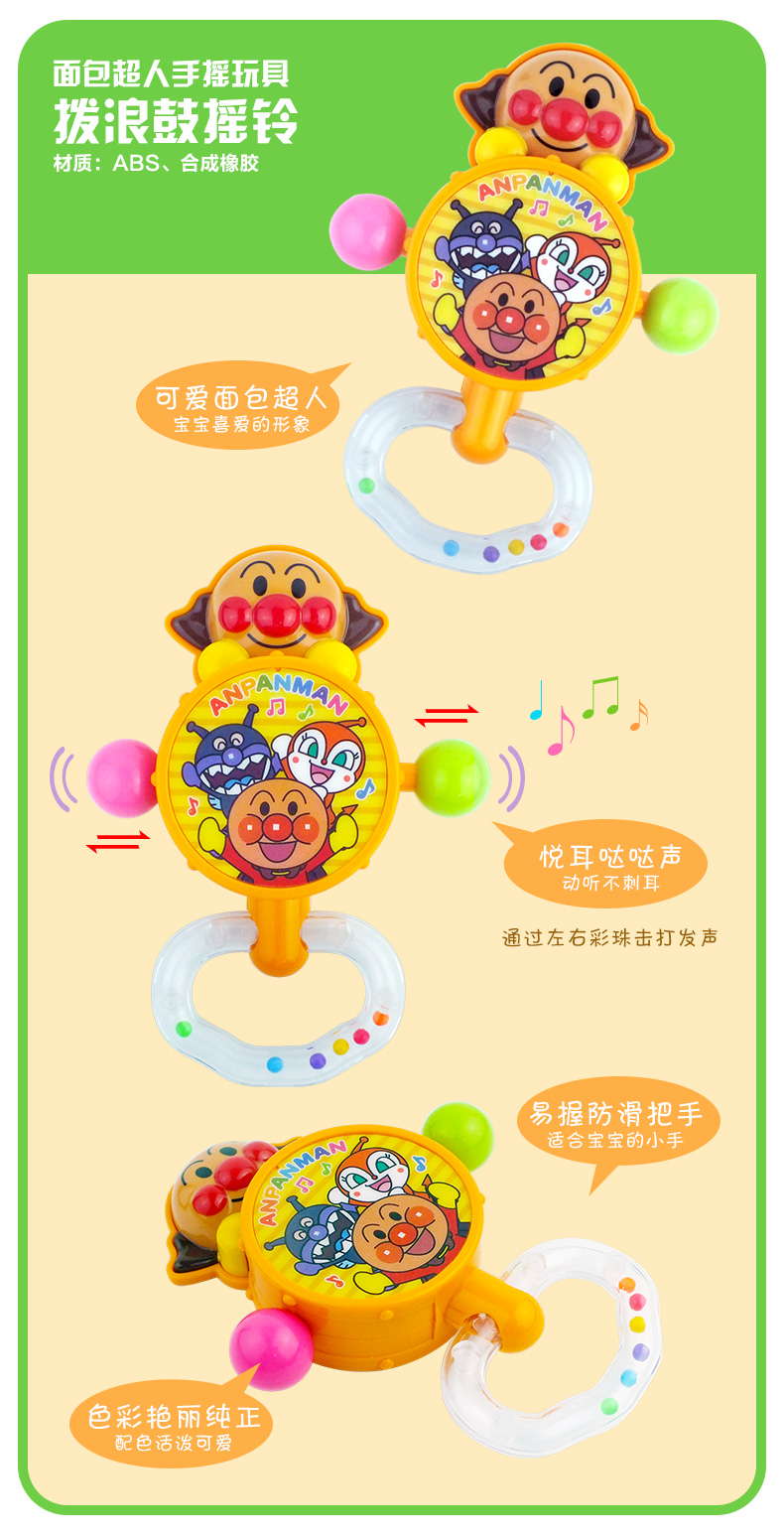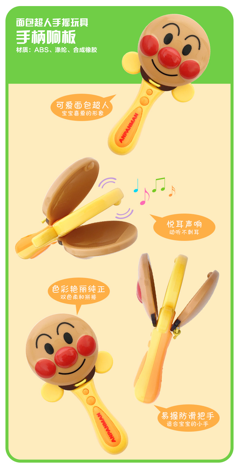 日本面包超人进口婴幼儿摇铃鼓铃沙锤快板响板儿童宝宝手摇玩具