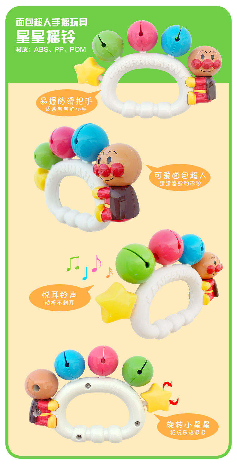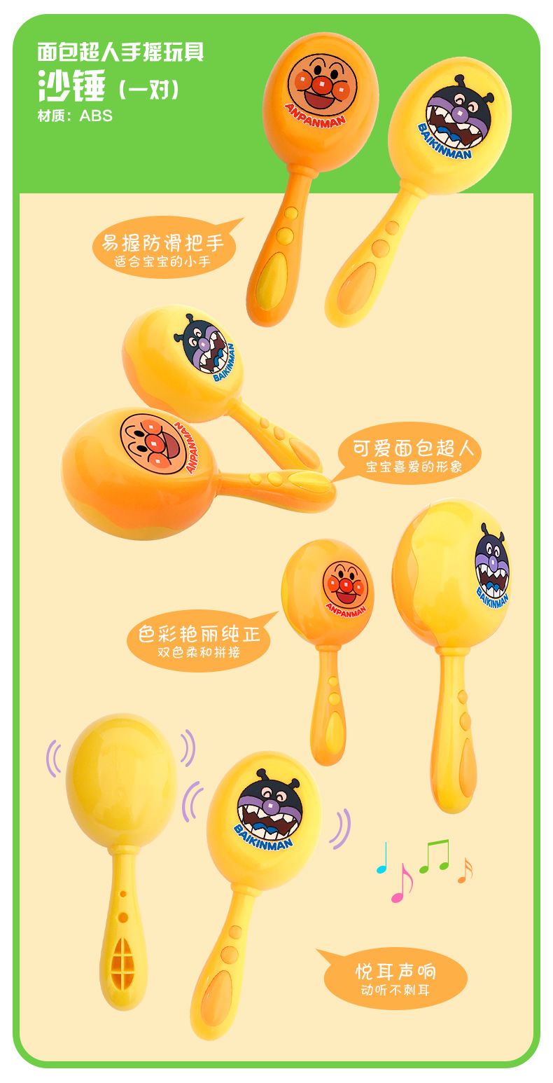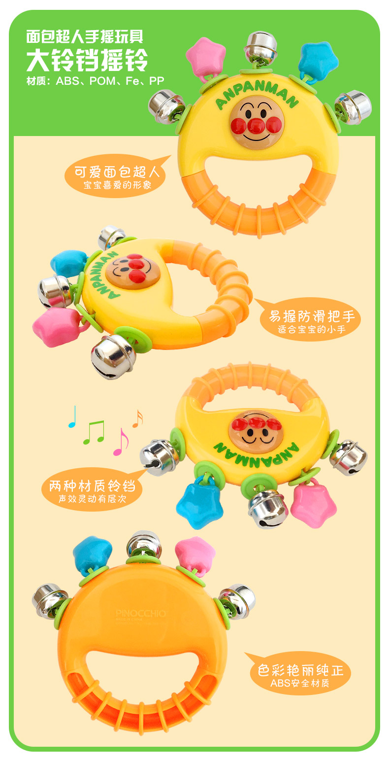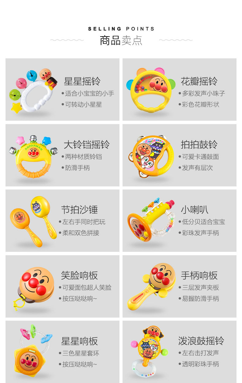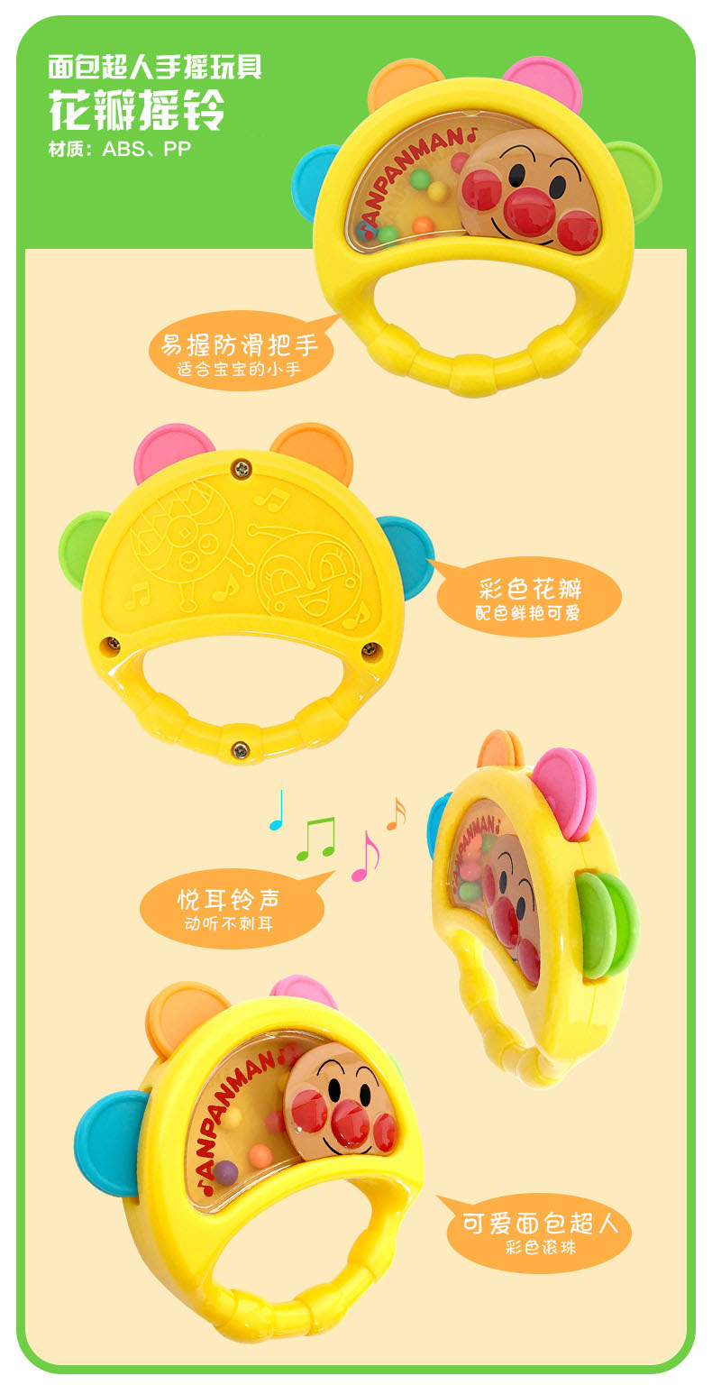 日本面包超人进口婴幼儿摇铃鼓铃沙锤快板响板儿童宝宝手摇玩具