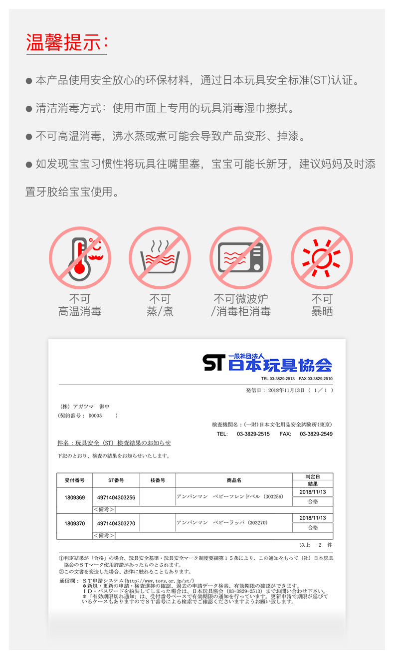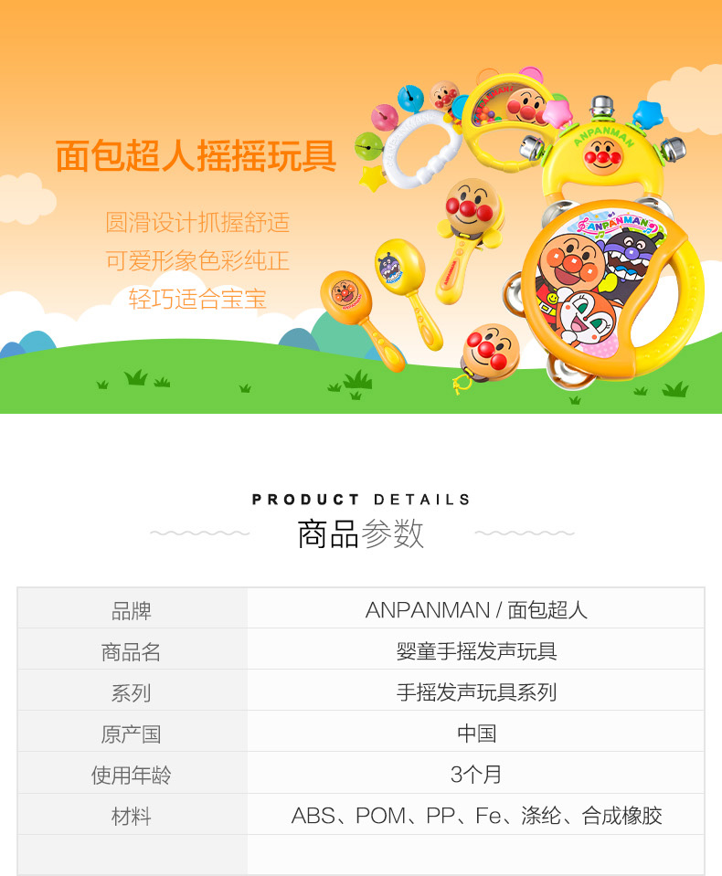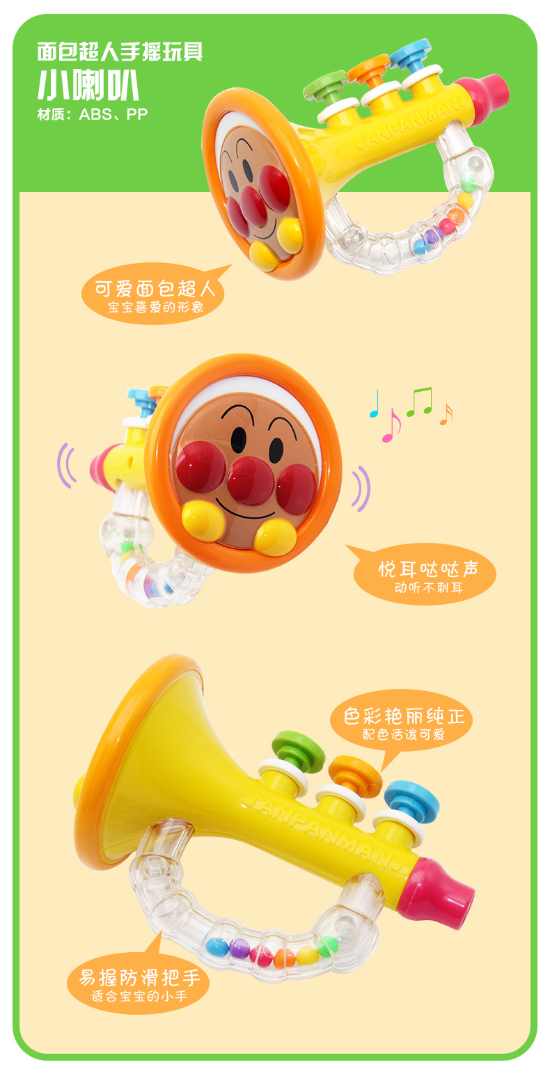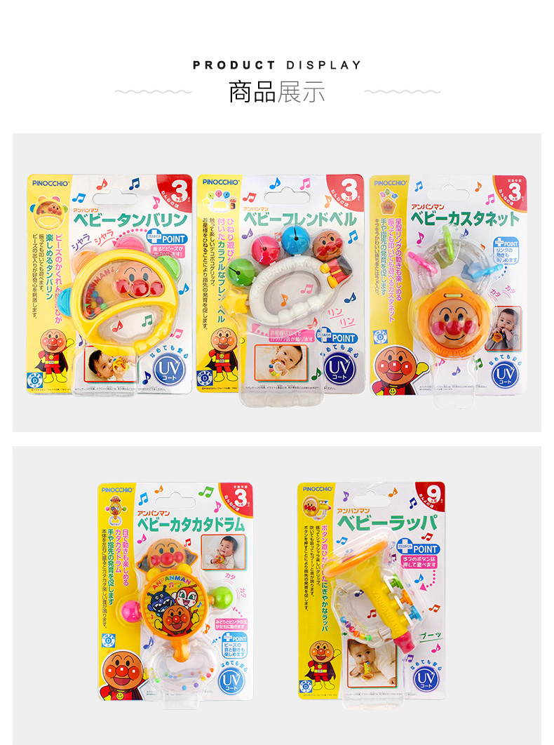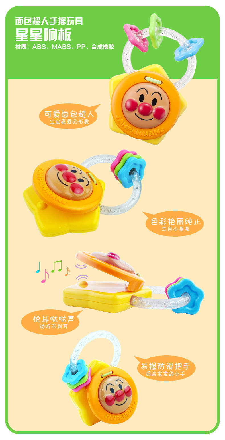日本面包超人进口婴幼儿摇铃鼓铃沙锤快板响板儿童宝宝手摇玩具