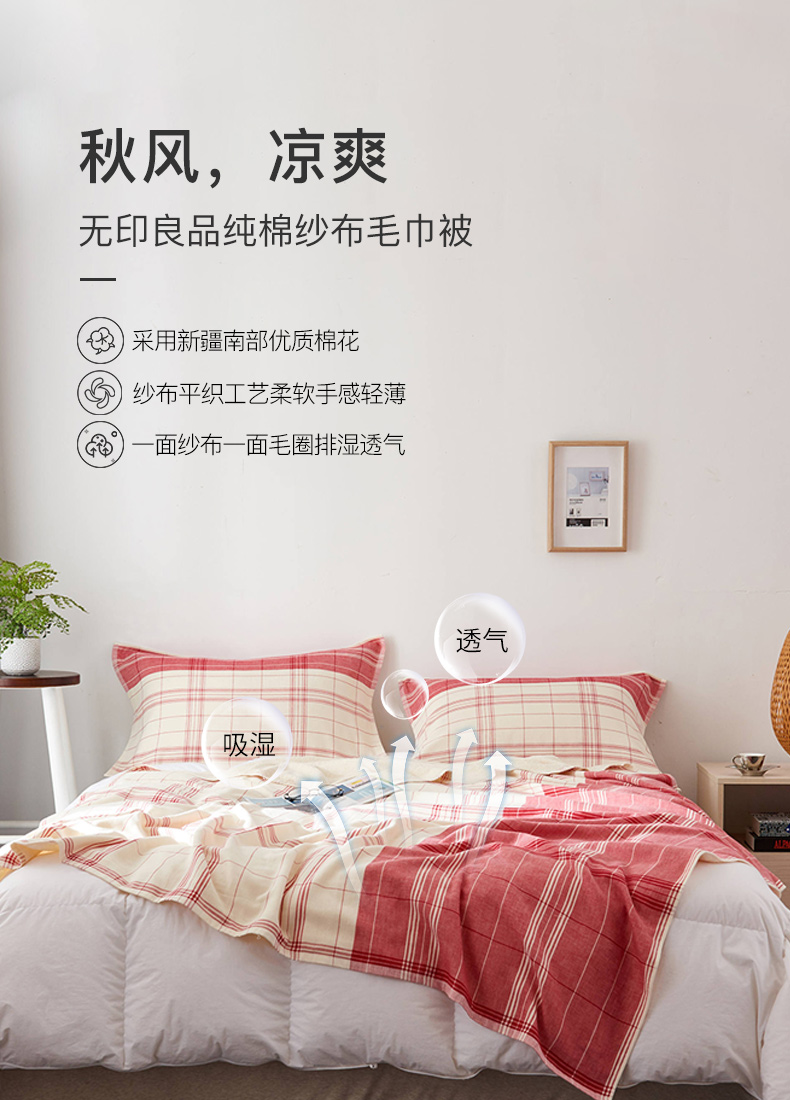 北欧living双人毛巾被套餐 纯棉一面纱布一面毛圈盖毯 180cmX210cm 无印良品