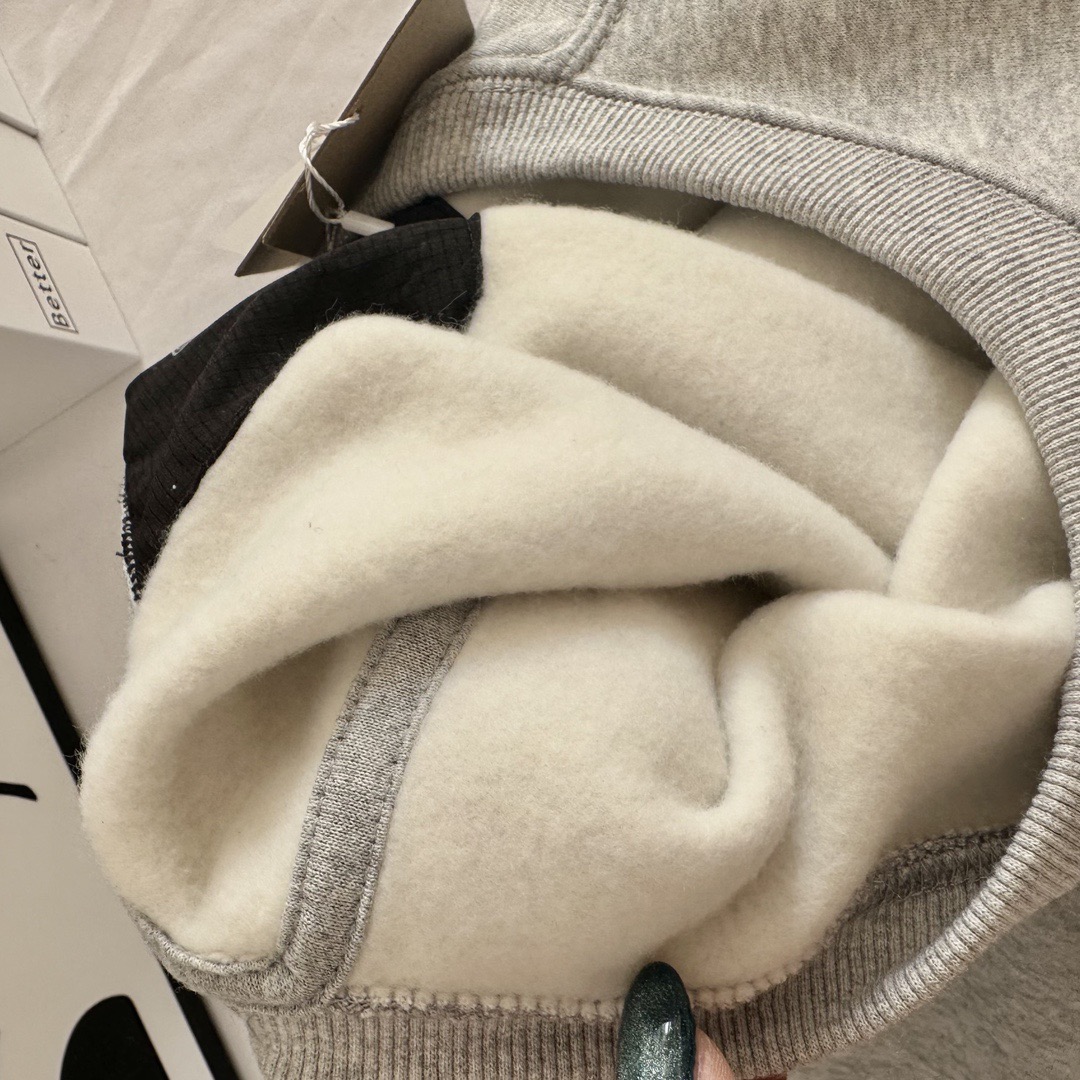 偏大的版型,运动休闲日常灰常ok,内里抓绒,锁温保暖有型不臃肿。