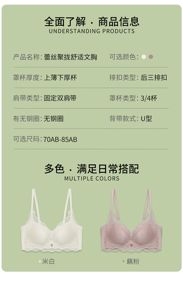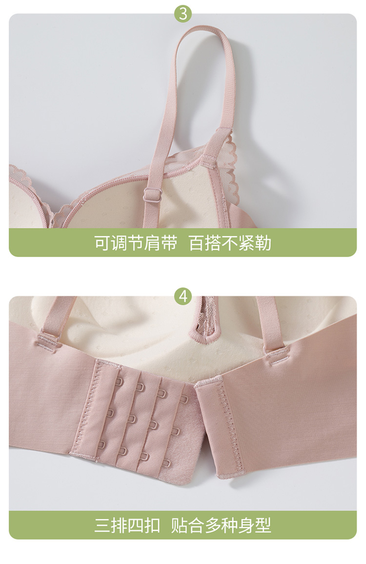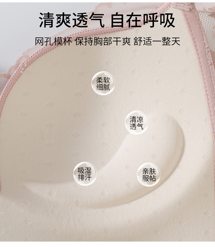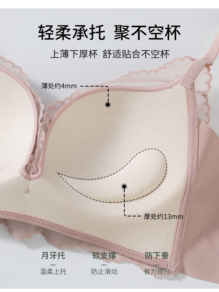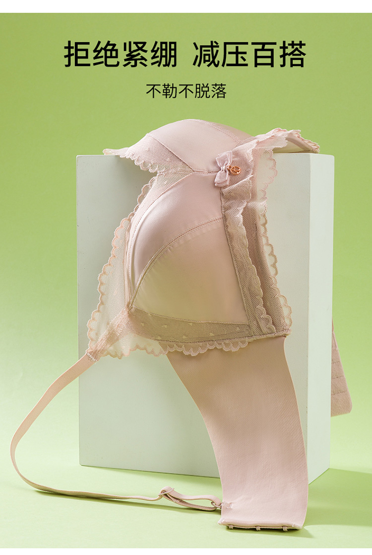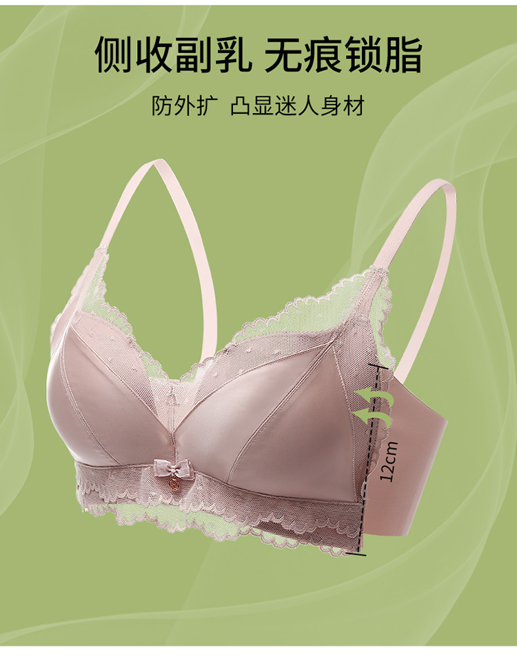 雅黛丽内衣蕾丝杯面大胸显小亲肤舒适聚拢侧收无钢圈胸罩