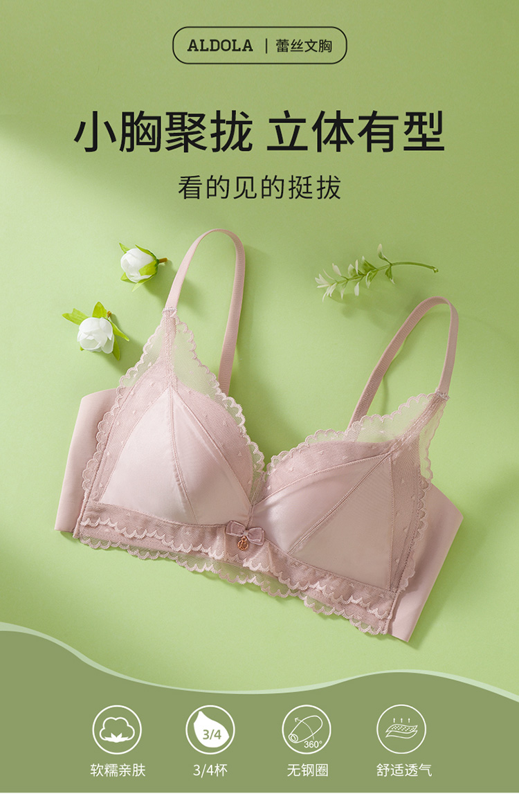 雅黛丽内衣女小胸聚拢刺绣蕾丝甜美上托有型减压文胸