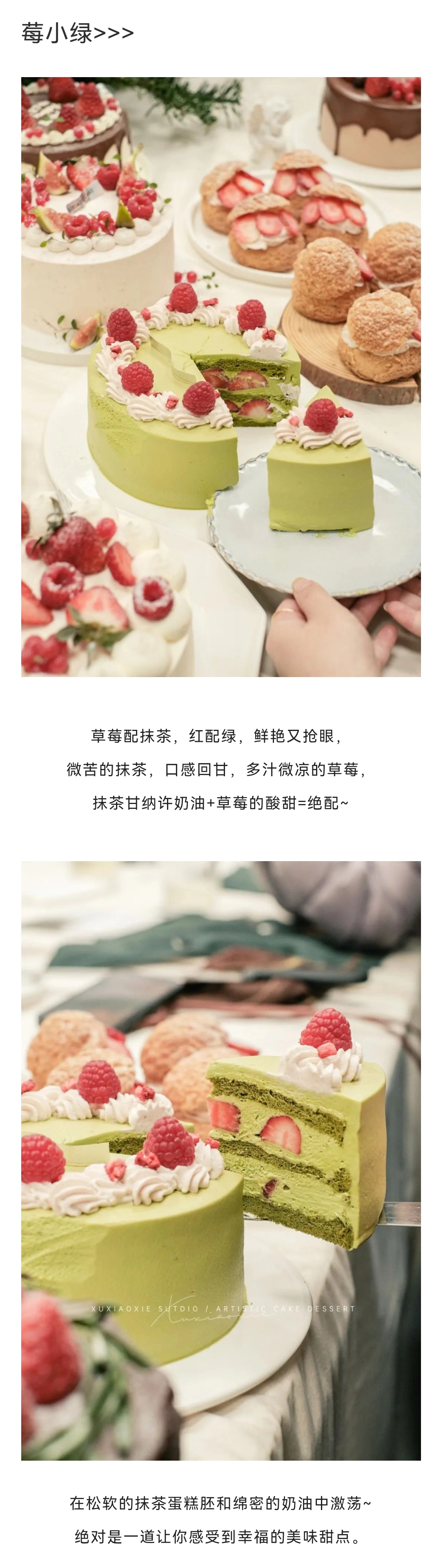 【草莓屋】莓小绿(抹茶戚风胚➕抹茶甘纳许奶油➕新鲜草莓夹心)