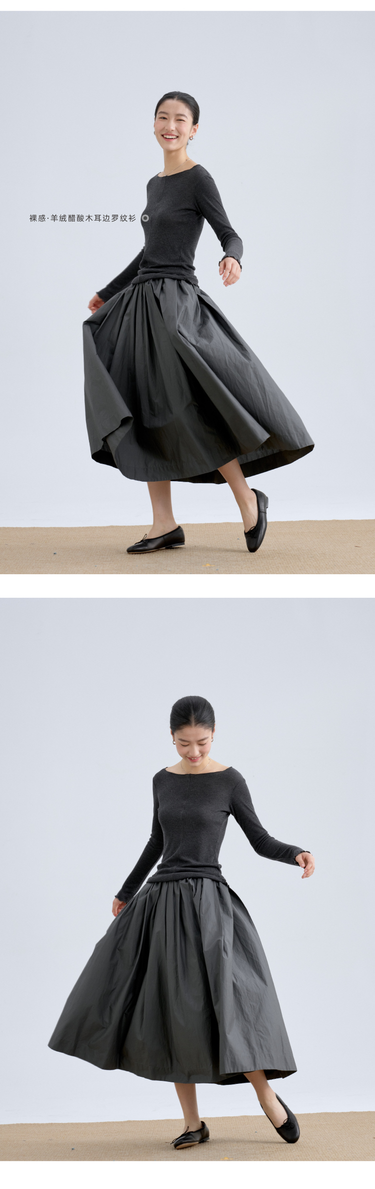 裸感·羊绒醋酸木耳边修身长袖罗纹衫