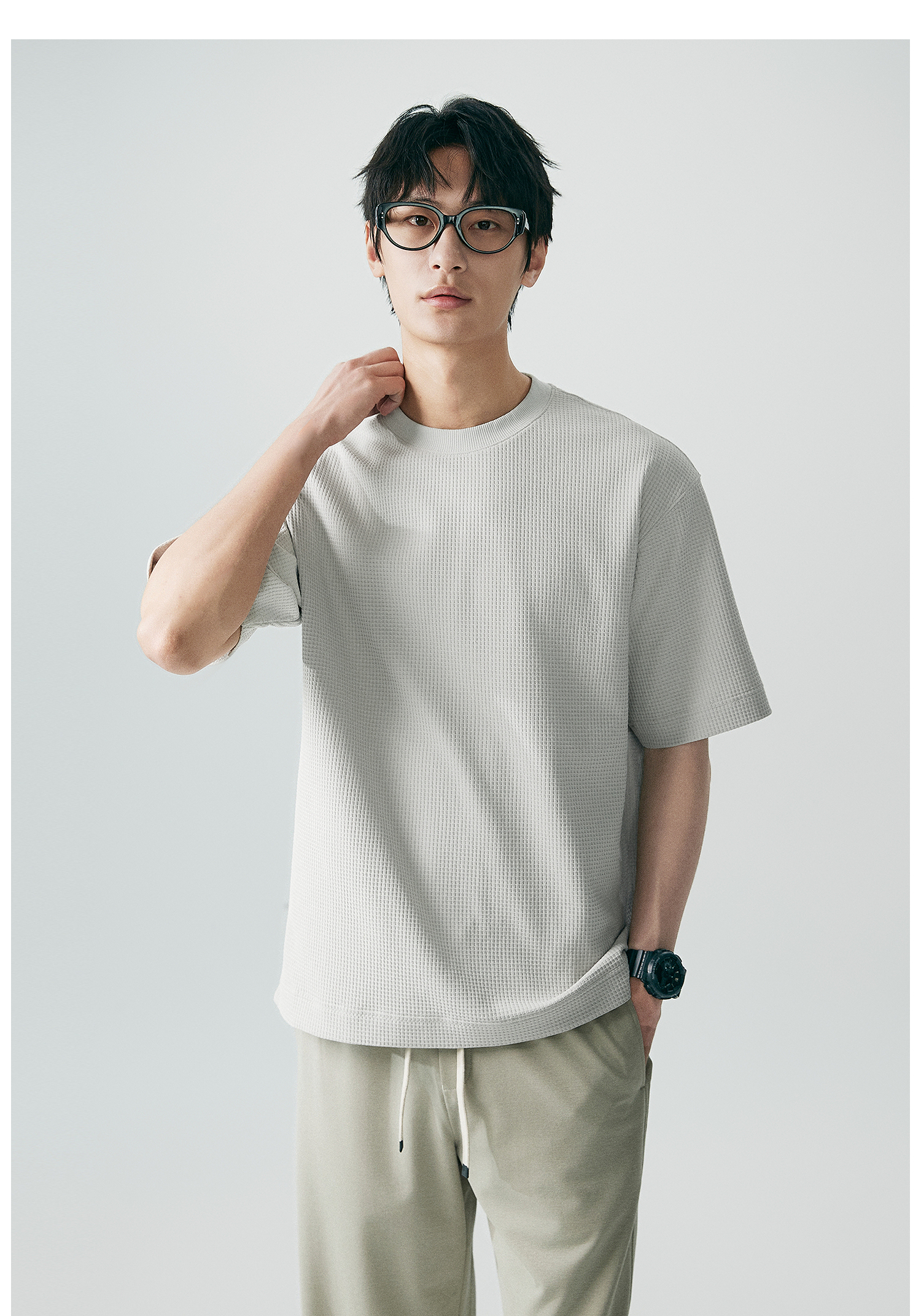 棉仓363801023-高弹柔软速干华夫格微宽松短袖T恤