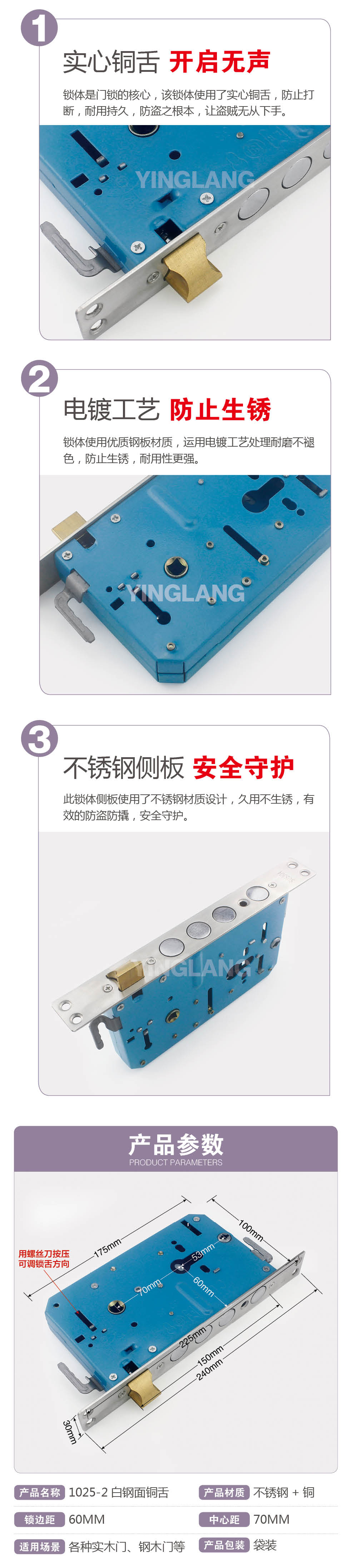 〖B041〗1025-2白钢面铜舌带勾圆锁体