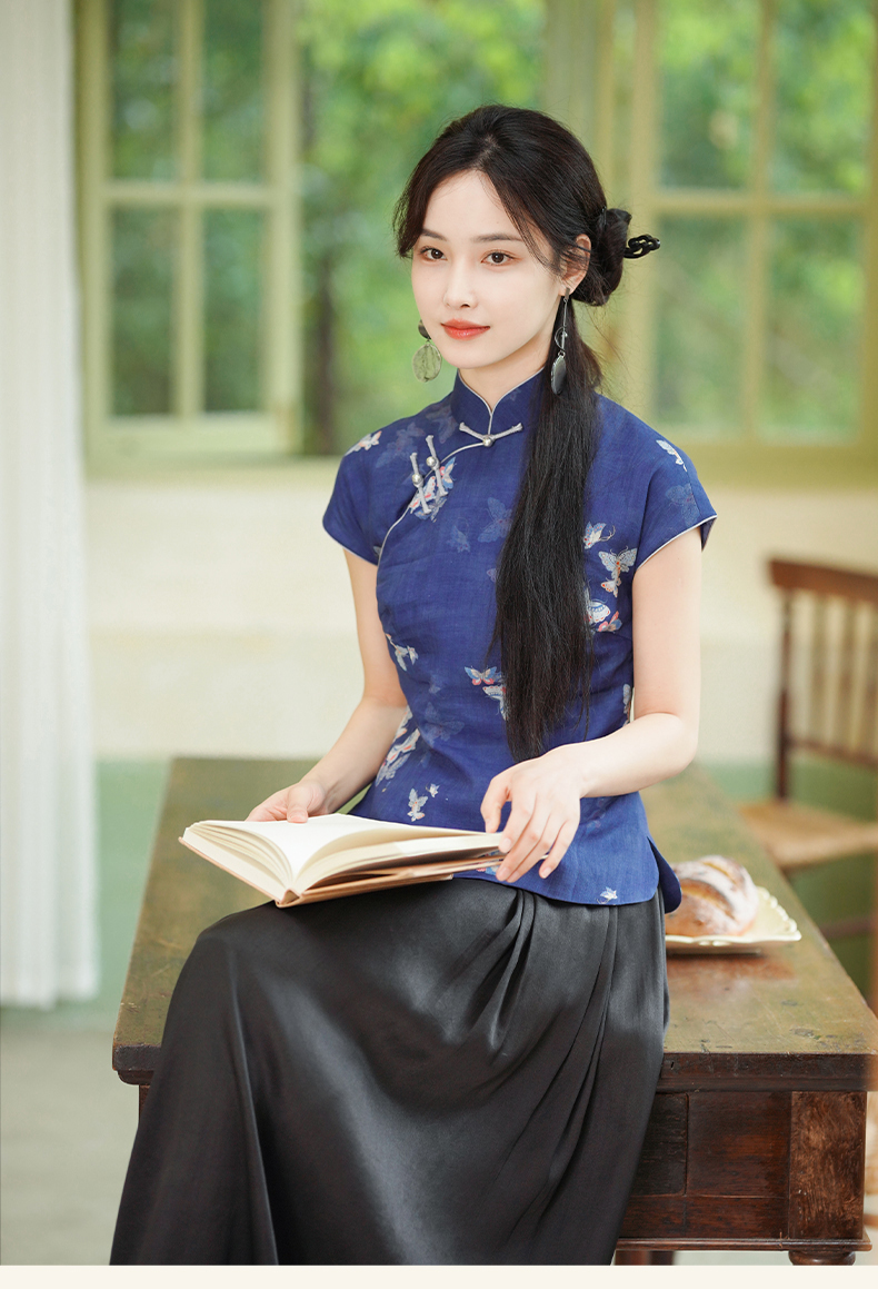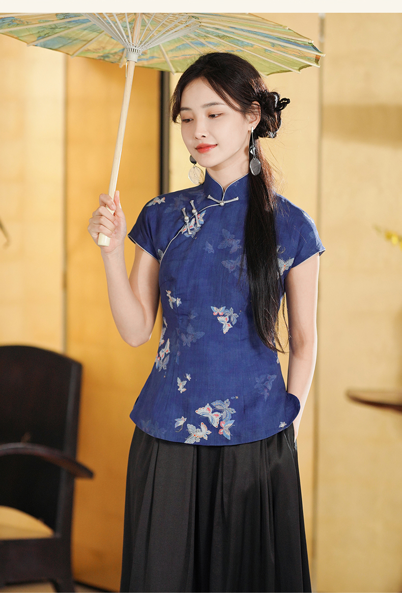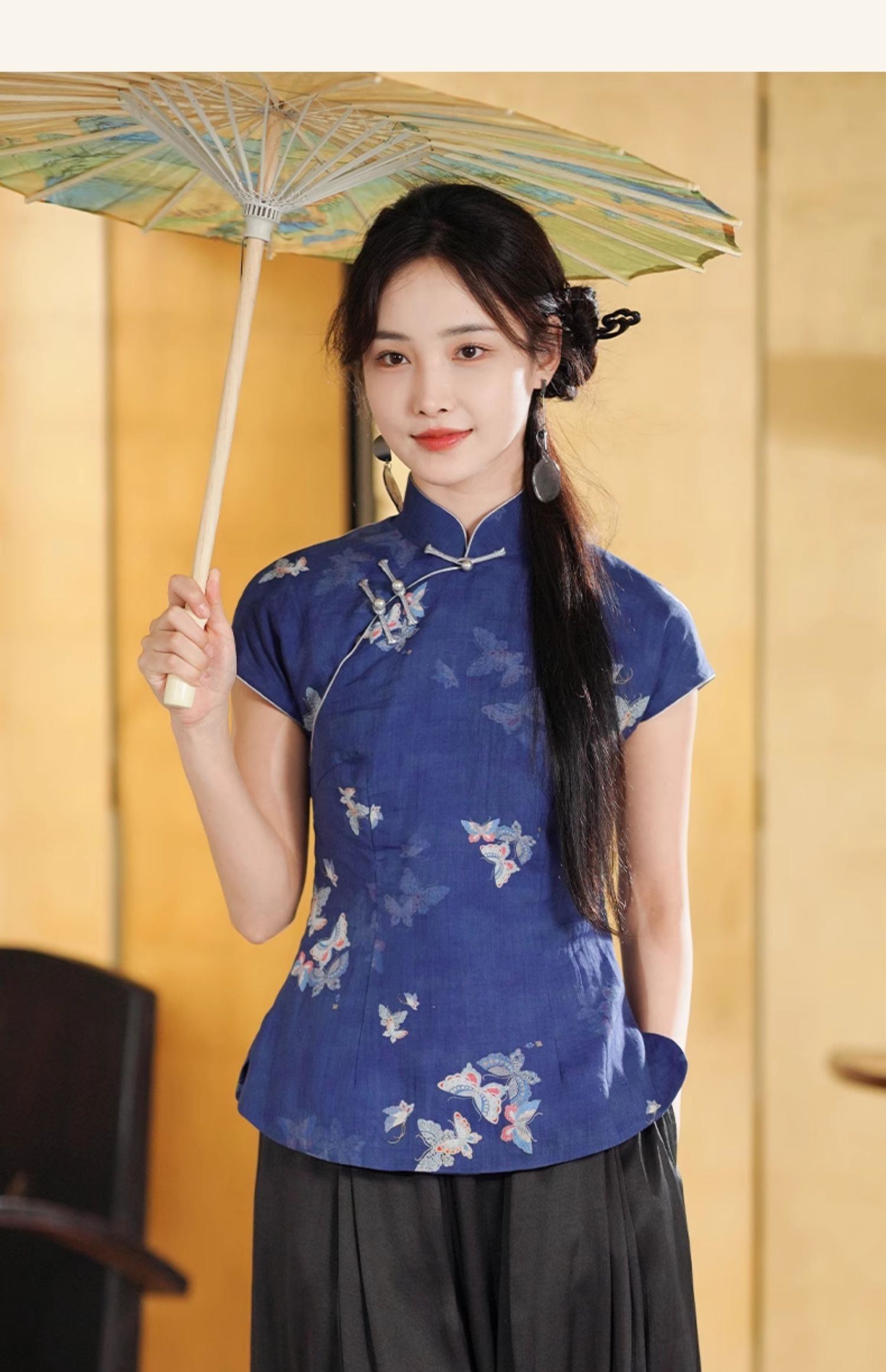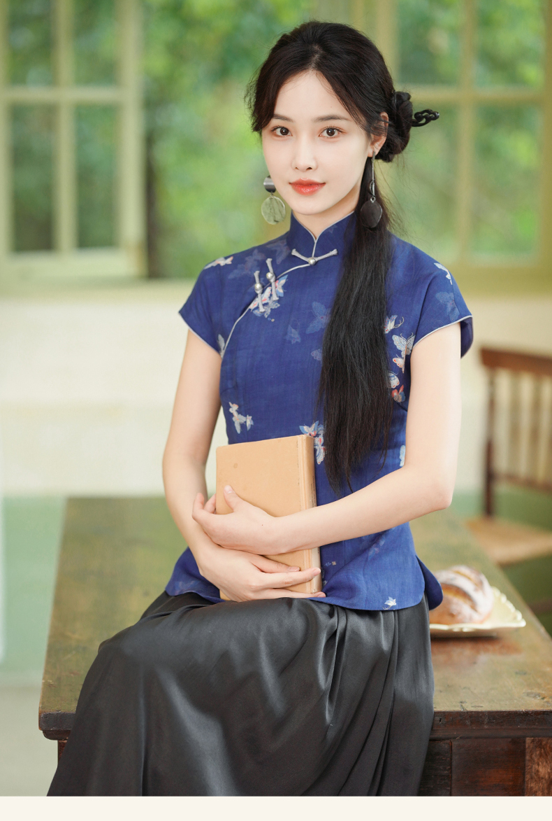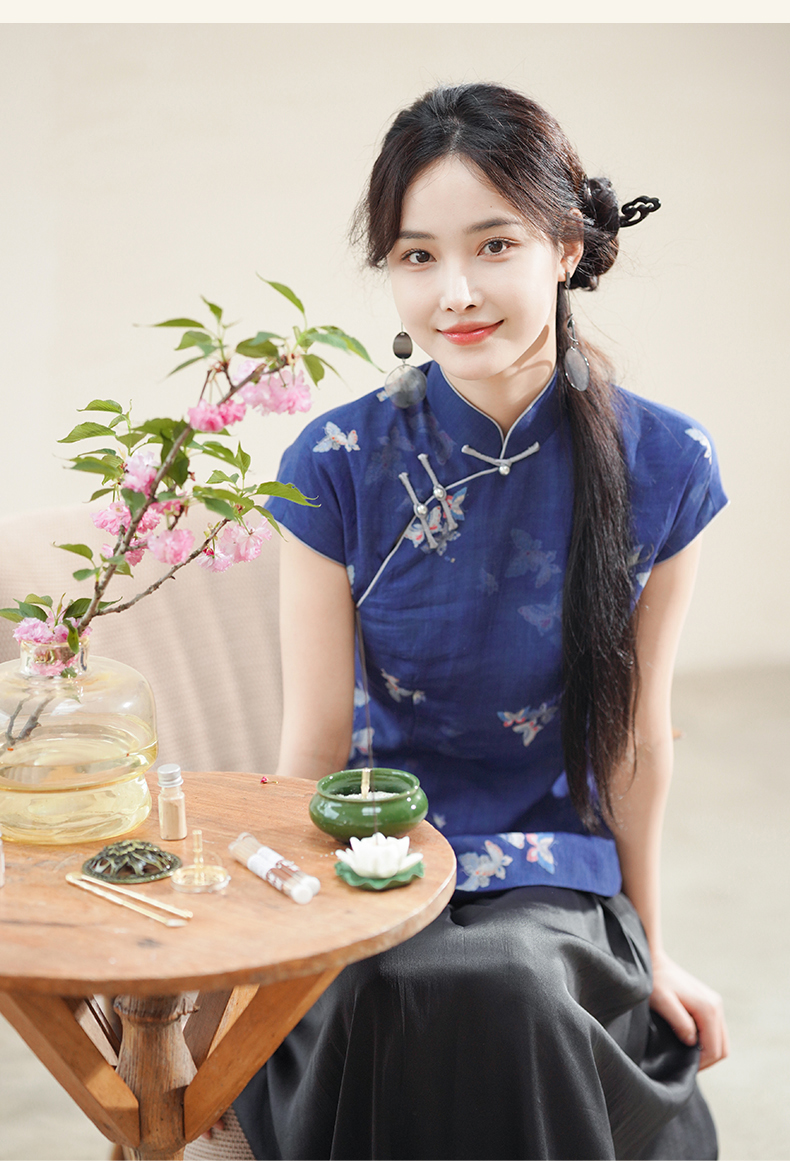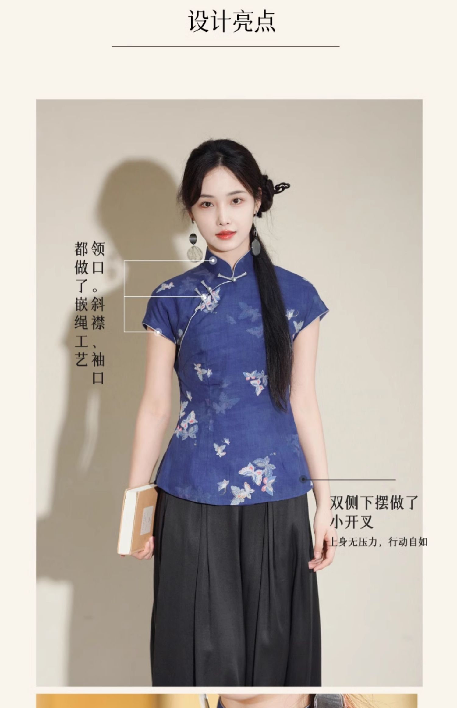 上海逸红颜疏雪2025夏季新款夏日凉爽复古文艺苎麻新中式旗袍上衣