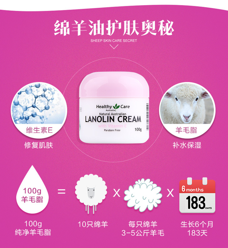 澳洲 HealthyCare VE绵羊油 100g 保税区免邮直发