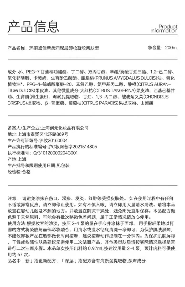 4楼Eubelle欧蓓 【敏感肌适用】玛丽黛佳新柔润深层卸妆凝胶亲肤型200ml 吊牌价:99元 活动价:89元