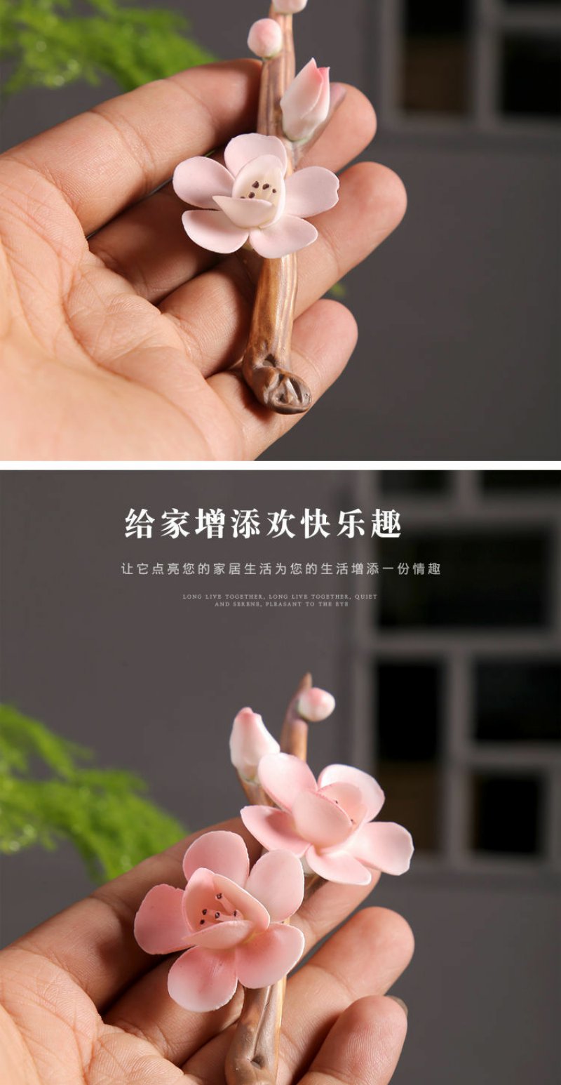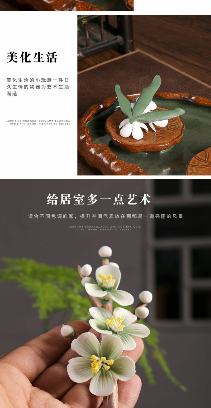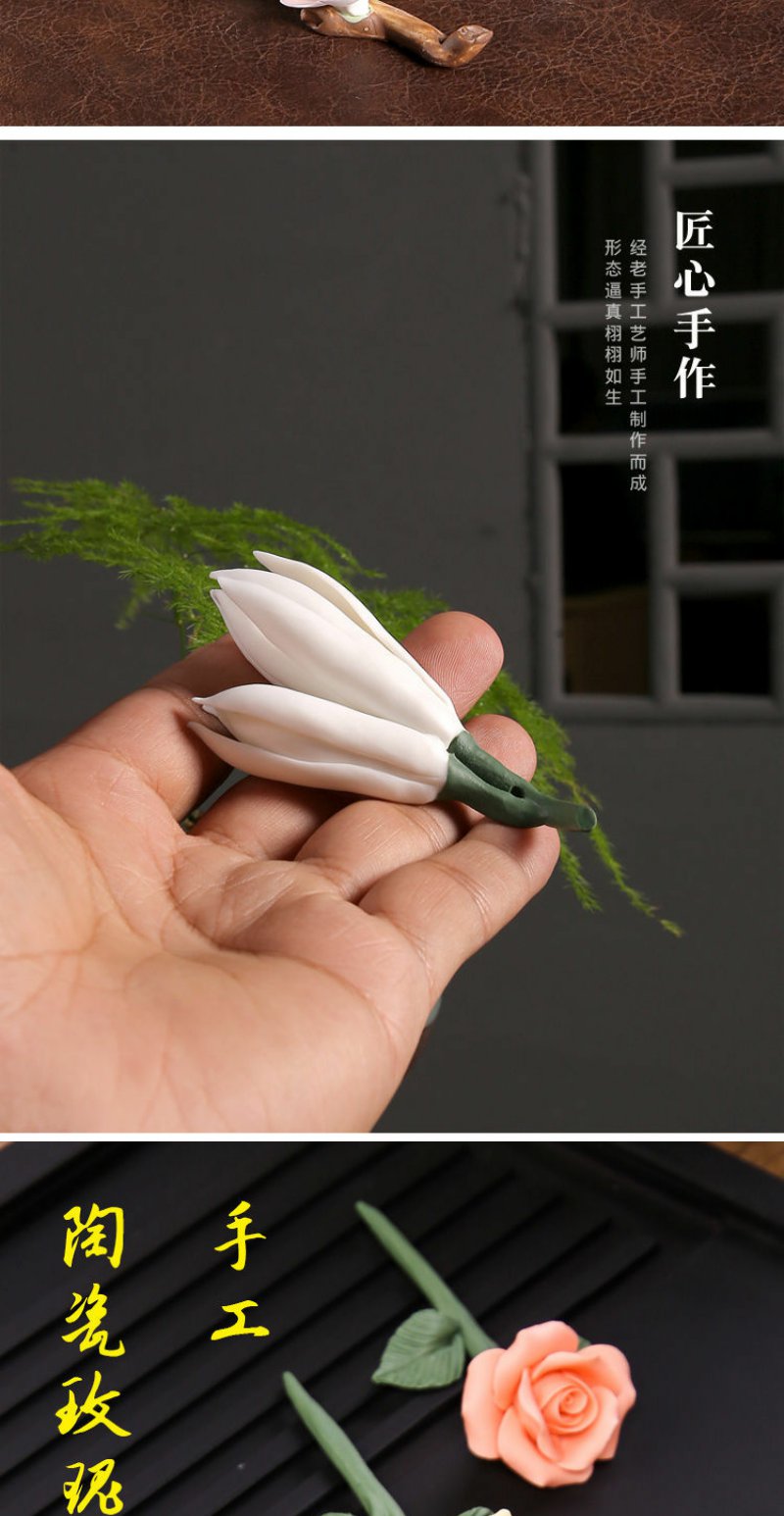 创意陶瓷花朵茶宠梅花玉兰花茶道茶席盆栽配件家居手作饰品