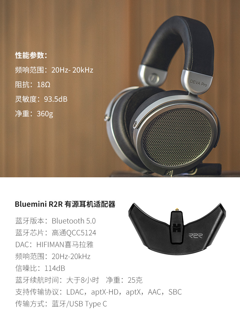 HIFIMAN(海菲曼) DEVA Pro无线蓝牙耳机平板振膜有线头戴式游戏吃鸡耳麦手机电脑通用发烧音乐
