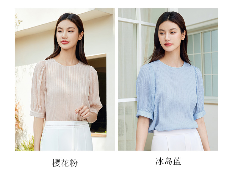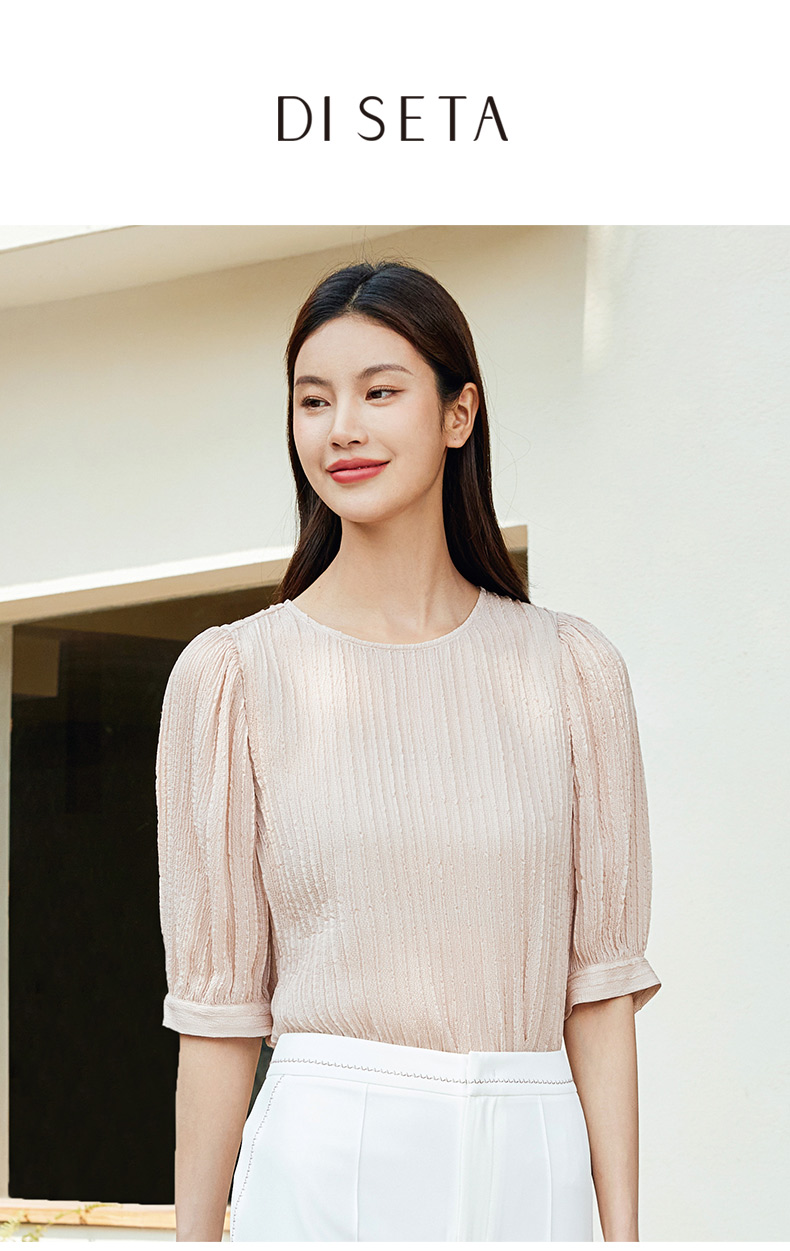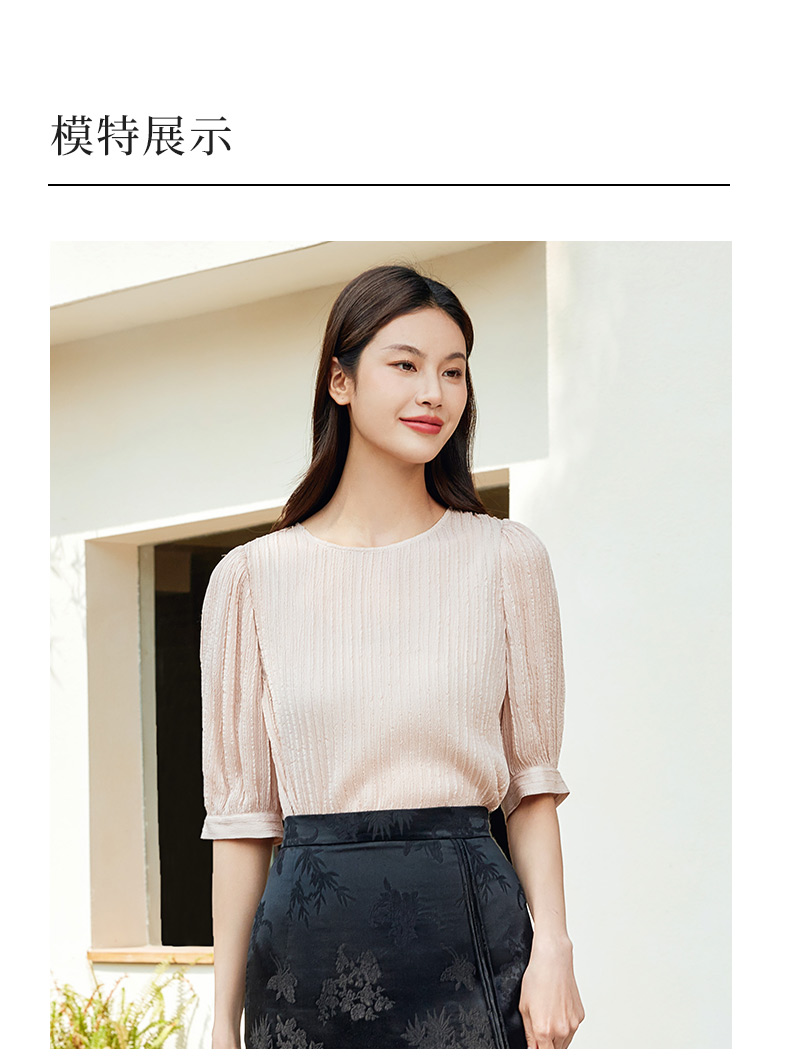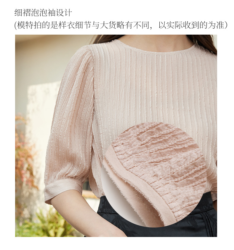 玳莎桑蚕丝五分袖衬衫女2024新款夏季优雅圆领柔叠绉真丝小衫上衣 EB31107