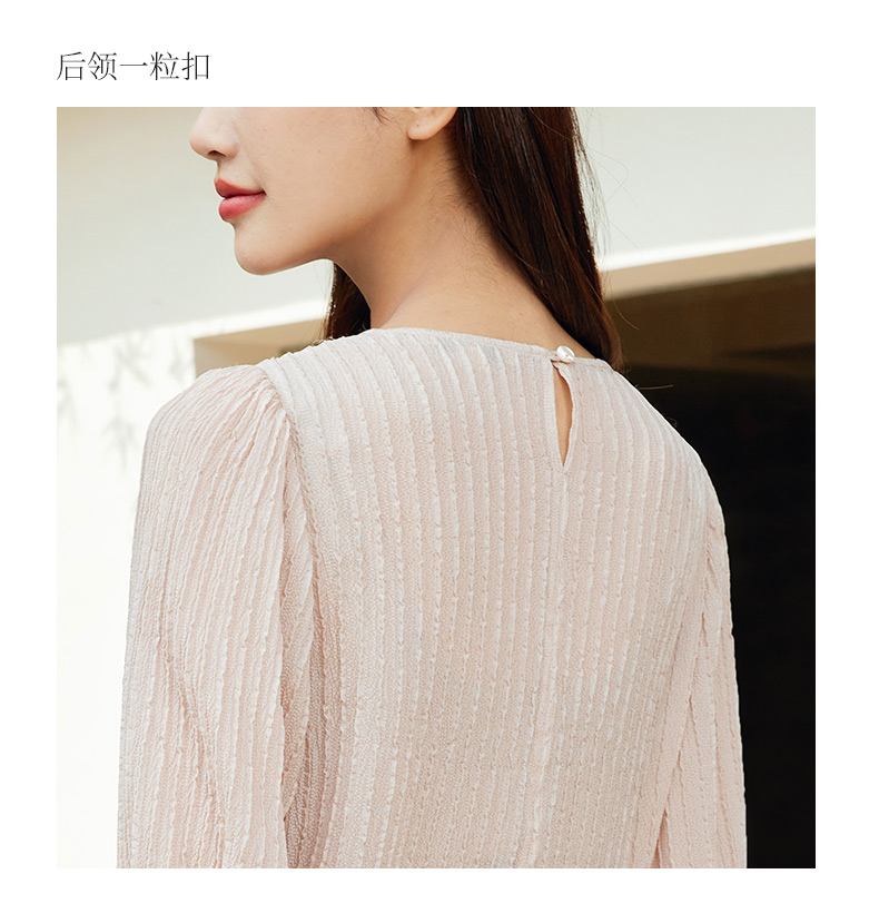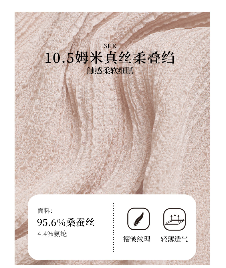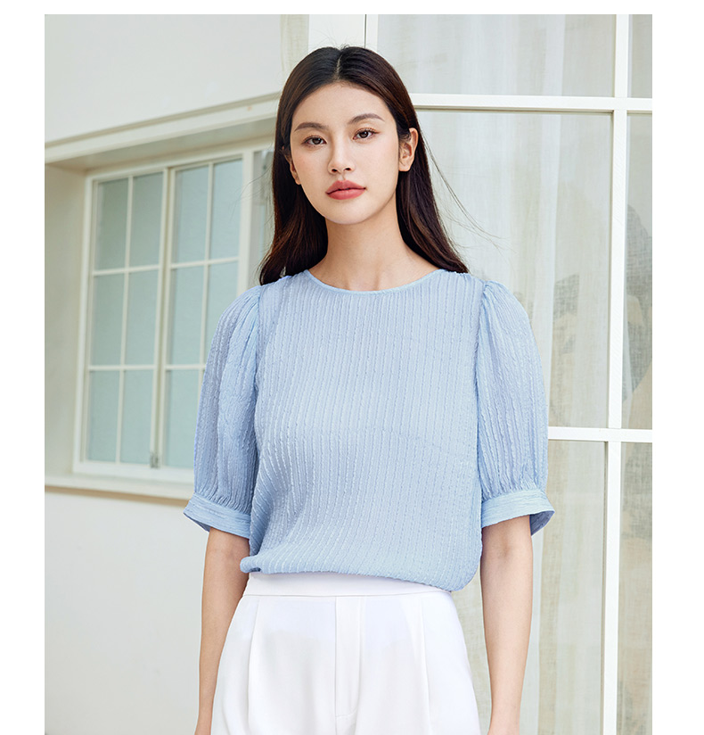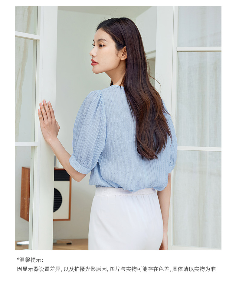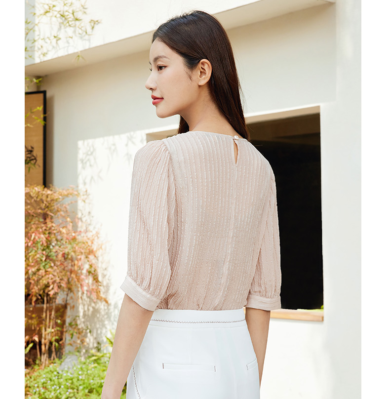 玳莎桑蚕丝五分袖衬衫女2024新款夏季优雅圆领柔叠绉真丝小衫上衣 EB31107