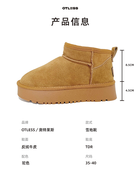 奥特莱斯 增高舒适 复古时尚休闲鞋 简约百搭 经典雪地靴 保暖舒适 防滑鞋底